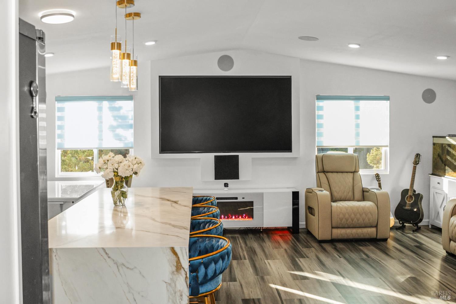 This 3-bedroom, 2-bath with an additional flex room is located in one of Contempo Marin's most sought-after communities. The home features an updated kitchen with updated countertops, modern light fixtures, and refreshed flooring, creating a fresh and inviting feel. The flex room provides versatile space for a home office, hobby room, or extra living area. Step outside to enjoy a private deck and patio, offering a comfortable spot for outdoor dining or summer BBQs. Additional highlights include a detached storage shed and ample parking. The property is situated in a pet-friendly, all-ages community with amenities that include a pool, gym, and playground.