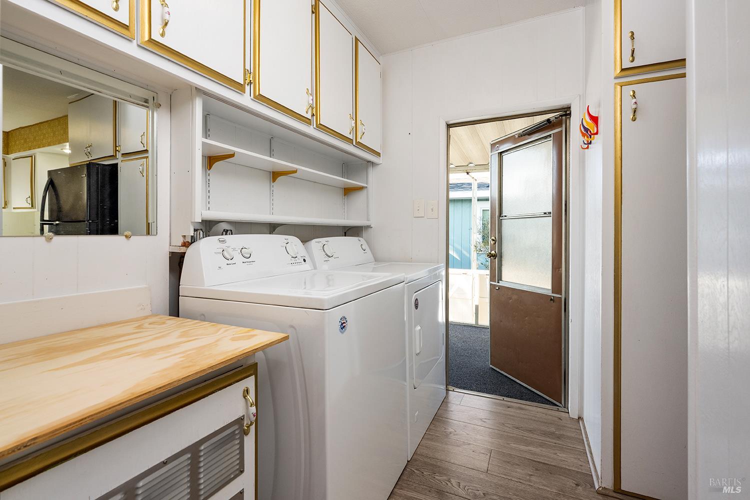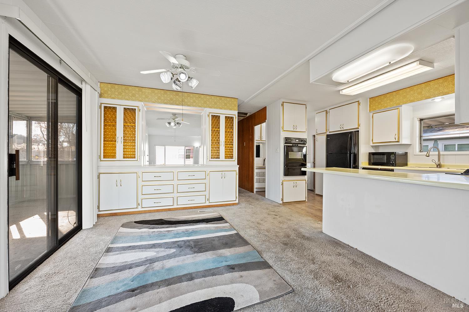 Charming home tucked at the back of the prestigious 55+ manufactured-home community, The Cottages of Petaluma - priced to sell quickly! Set on a corner cul-de-sac with views toward the Sonoma Hills, this light-filled residence offers a peaceful, private setting. Beautiful built-in cabinetry, finishes, and door hardware have a European-inspired aesthetic. Dining area opens to a cozy enclosed porch - ideal as a den, office, or additional living space. The expansive living room features oversized dual-pane windows with a northeast-facing orientation, providing soft, bright natural light throughout the day. Thoughtful updates include renovated bathrooms, upgraded paneling and insulation, carpeting, cabinets, lighting, front dual-pane windows, and water heater. Two decorative fireplaces add charm to the living room and primary bedroom, which opens directly to the backyard patio. A gardener's and hobbyist's dream-space that contains two large sheds with electricity and shelving for projects, storage, or creative pursuits. The low maintenance front and side gardens showcase a producing apple tree, ornamental trees, and flowering plants alongside a patio area with an automatic sprinkler system. Residents enjoy a beautifully maintained clubhouse with a gym, library, game room, pool, hot tub, two parks, and a bocce court, all within landscaped, tree-lined grounds close to shopping, the SMART Train, the farmers market, walking trails, and Highway 101. This is the only park in the region that allows rental - a great investment in your future, or that of your loved ones.
