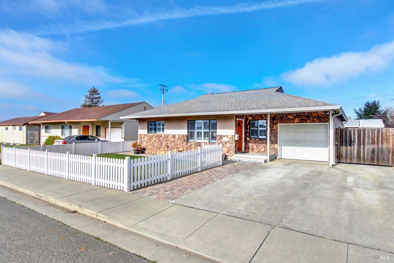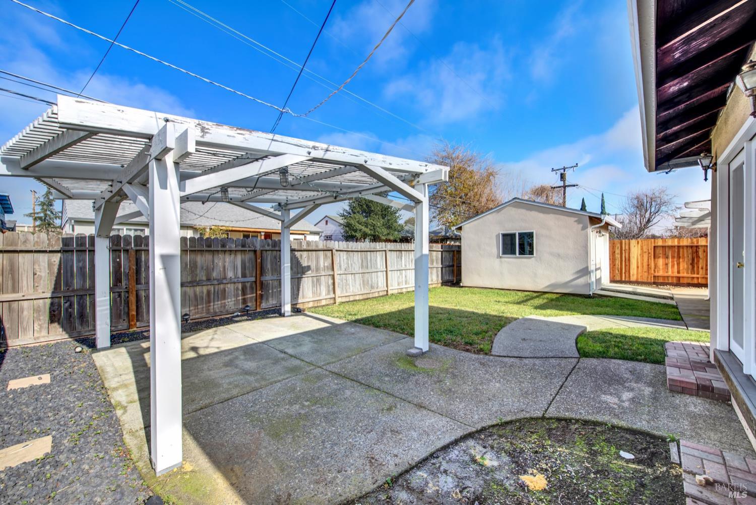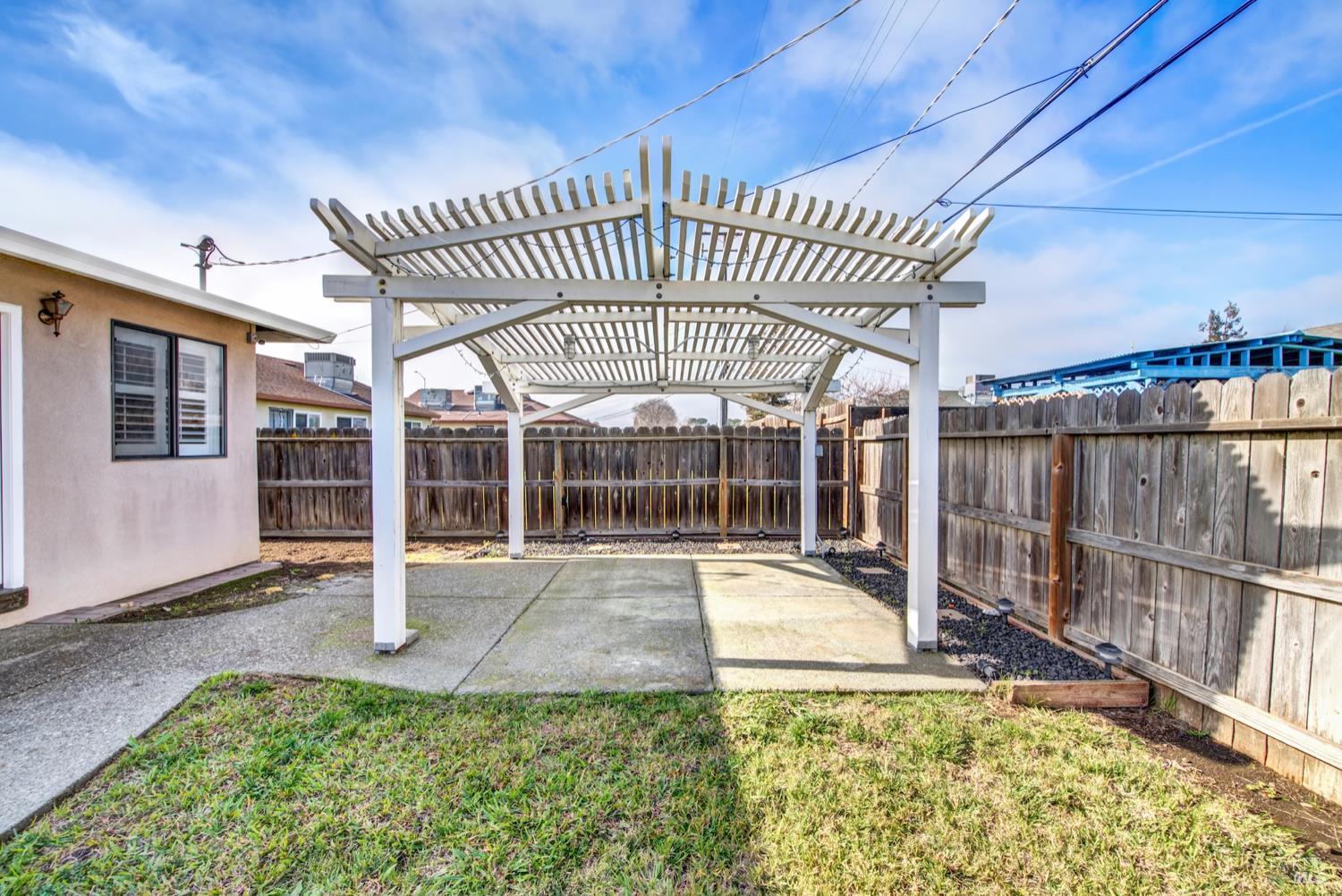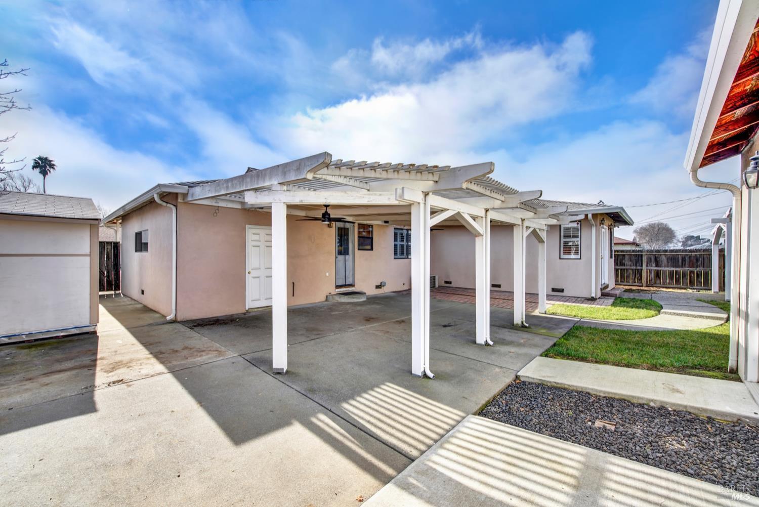 Beautifully updated and ideally located near Downtown Fairfield, this 3-bedroom, 2-bath home offers comfort, functionality, and standout features inside and out. The spacious primary bedroom includes an ensuite bath that was thoughtfully designed as part of the home's addition. The kitchen features granite counters, a gas range, pantry, and abundant storage, while new luxury vinyl plank flooring adds a fresh, modern feel throughout. Natural light fills the home, enhanced by window shutters on many of the windows. Step outside to an entertainer's dream backyard with a covered patio, ceiling fans, electrical setup, and plenty of room to gather. The fenced front yard adds privacy, and the property includes both an extra storage shed and a 14x16 workshop complete with roll-up door, lighting, and powerperfect for projects, hobbies, or additional storage. All of this just moments from seasonal farmers markets, dining, shopping, and local events in Downtown Fairfield.