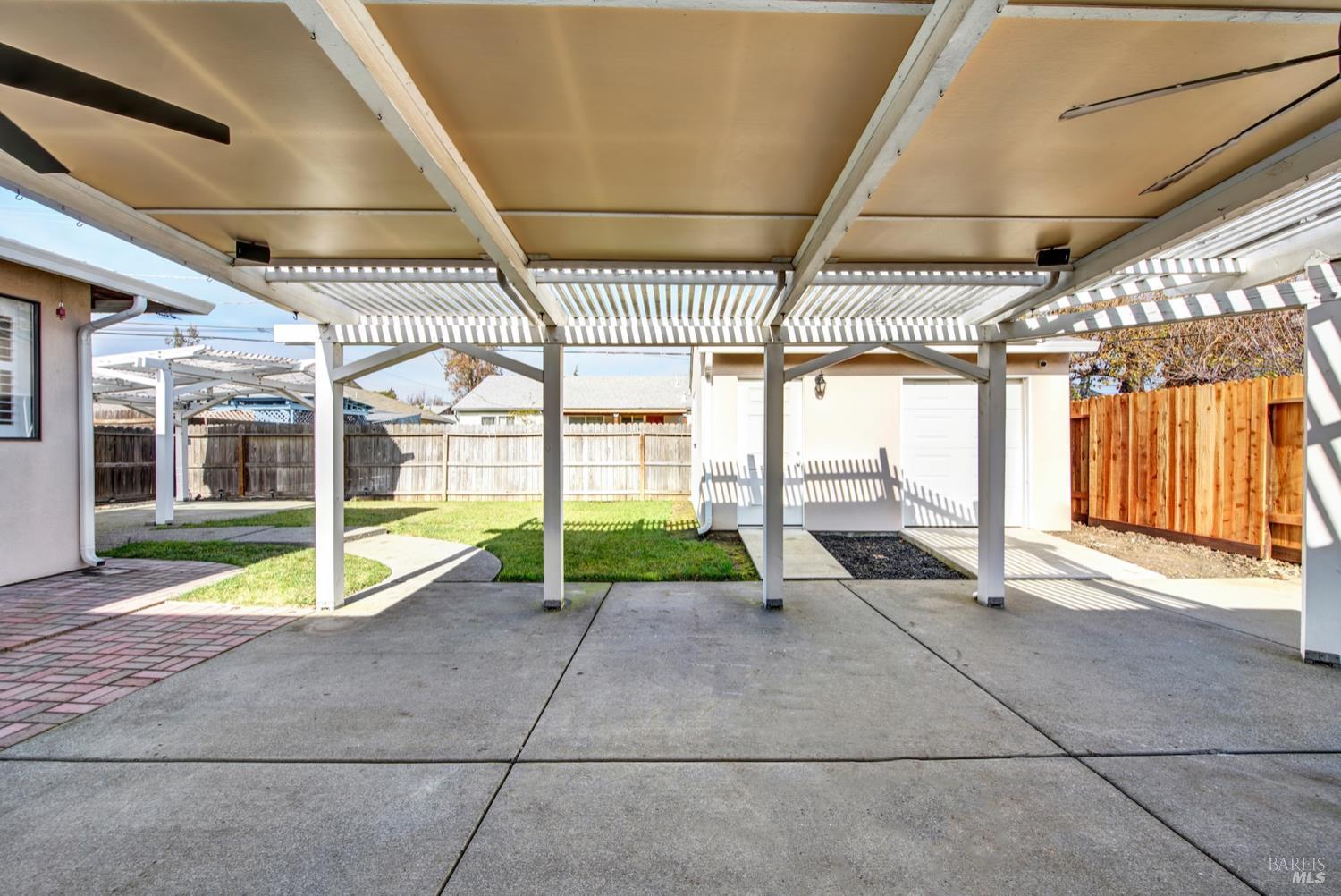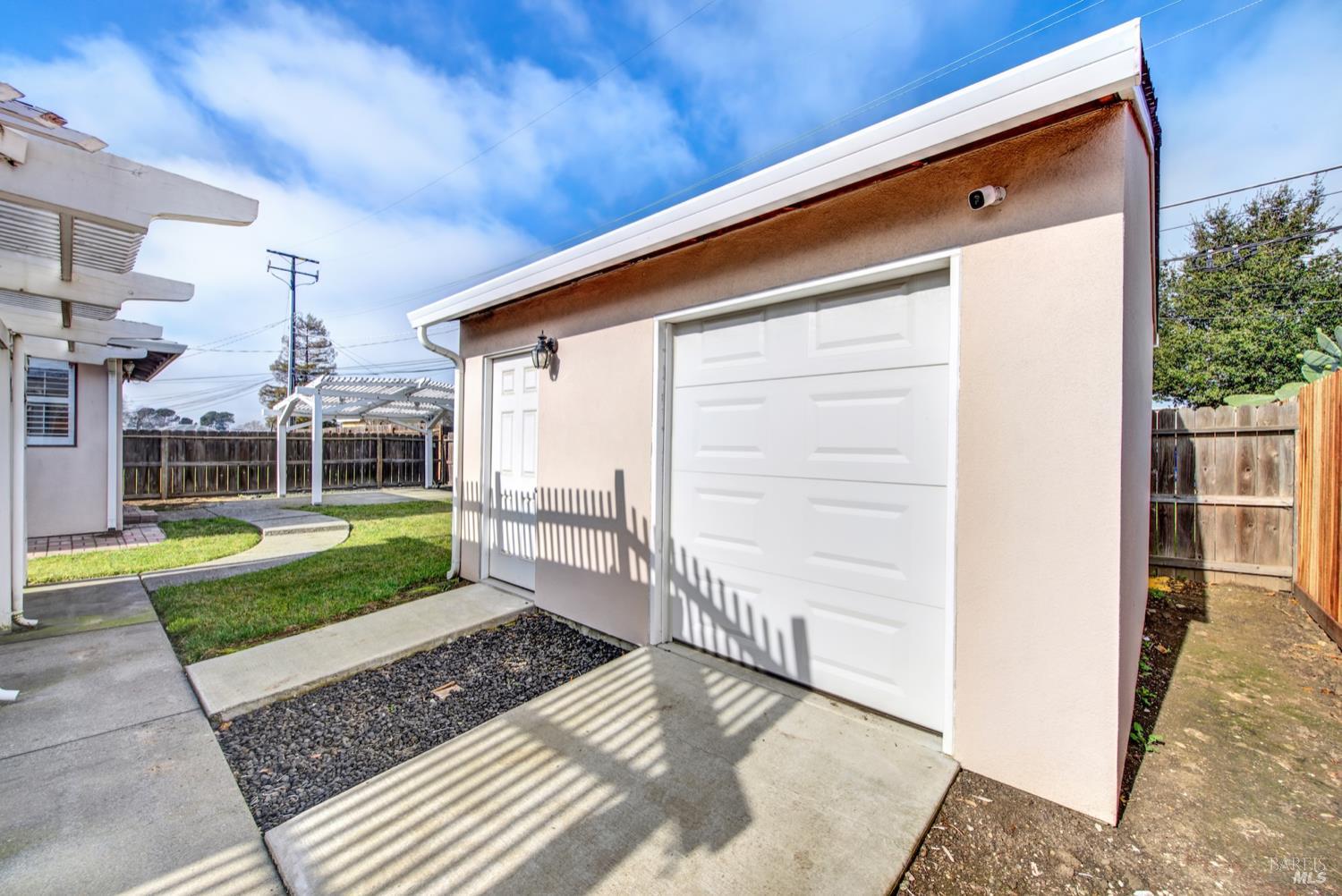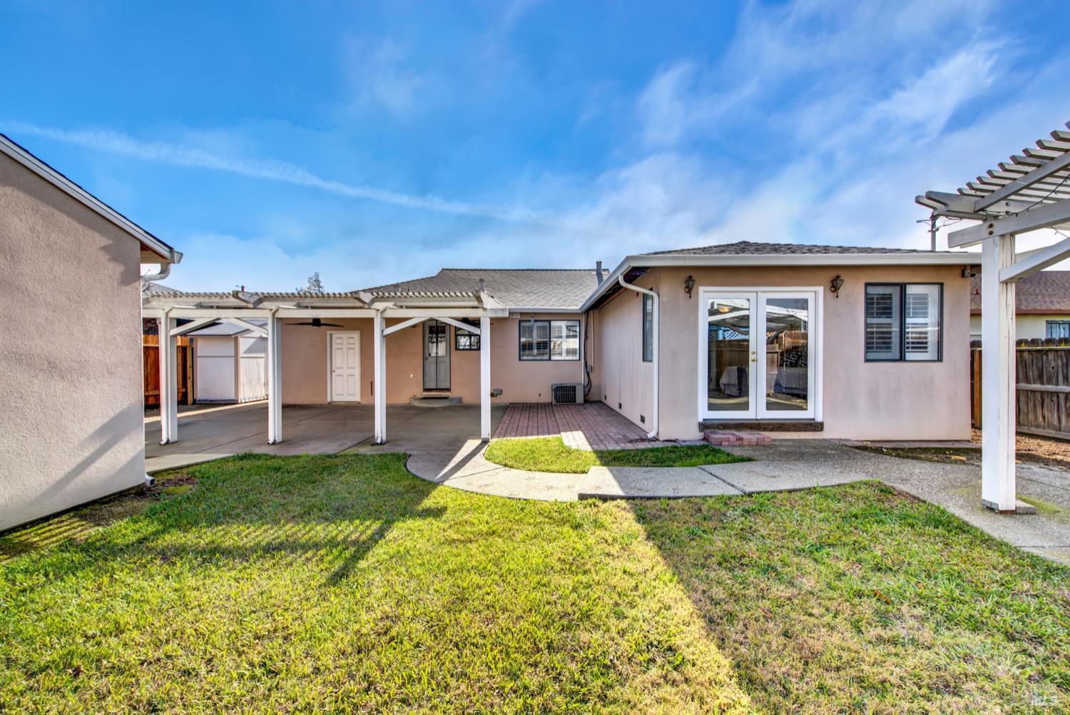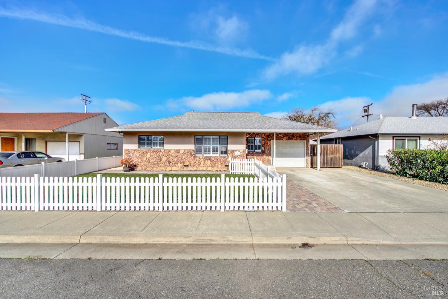 Beautifully updated and ideally located near Downtown Fairfield, this 3-bedroom, 2-bath home offers comfort, functionality, and standout features inside and out. The spacious primary bedroom includes an ensuite bath that was thoughtfully designed as part of the home's addition. The kitchen features granite counters, a gas range, pantry, and abundant storage, while new luxury vinyl plank flooring adds a fresh, modern feel throughout. Natural light fills the home, enhanced by window shutters on many of the windows. Step outside to an entertainer's dream backyard with a covered patio, ceiling fans, electrical setup, and plenty of room to gather. The fenced front yard adds privacy, and the property includes both an extra storage shed and a 14x16 workshop complete with roll-up door, lighting, and powerperfect for projects, hobbies, or additional storage. All of this just moments from seasonal farmers markets, dining, shopping, and local events in Downtown Fairfield.