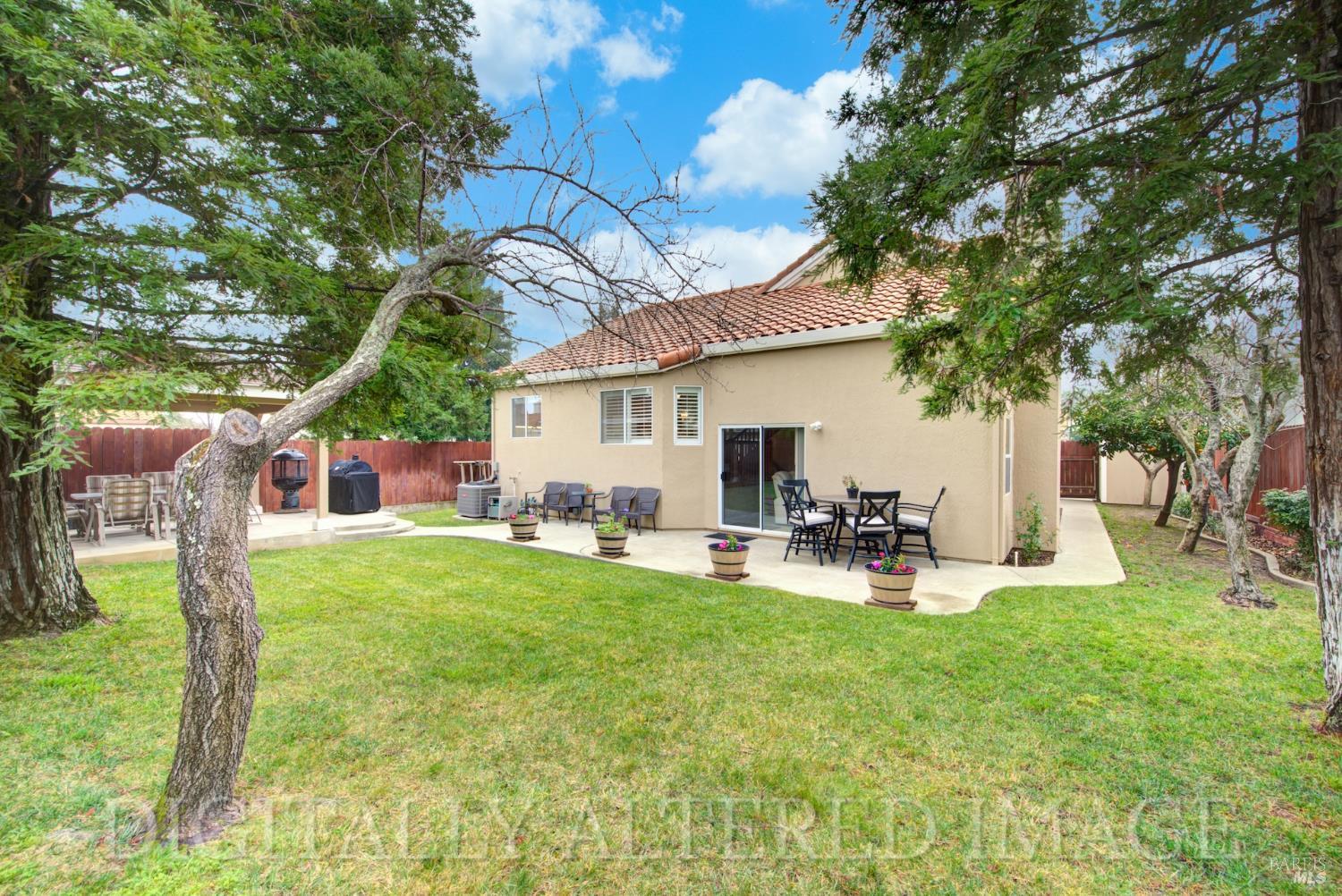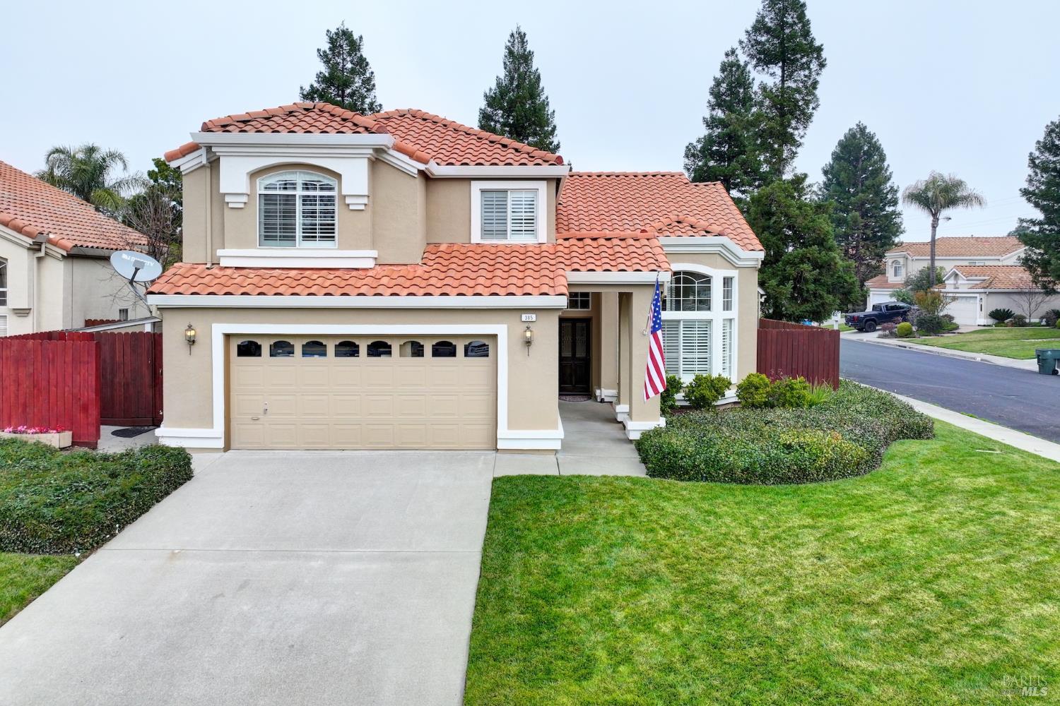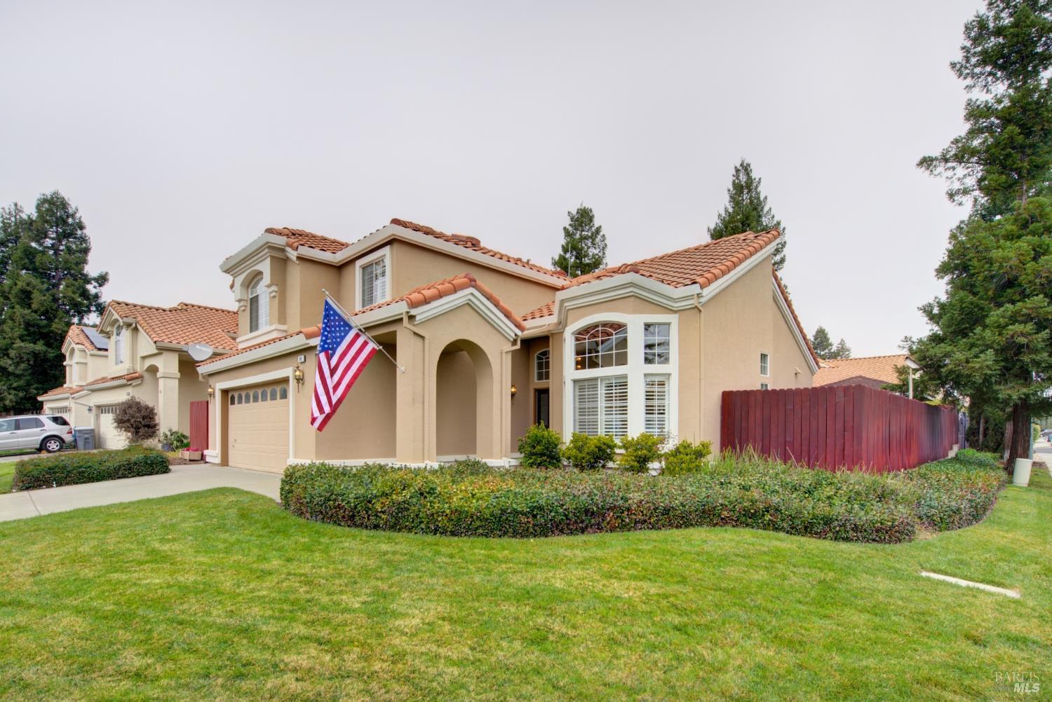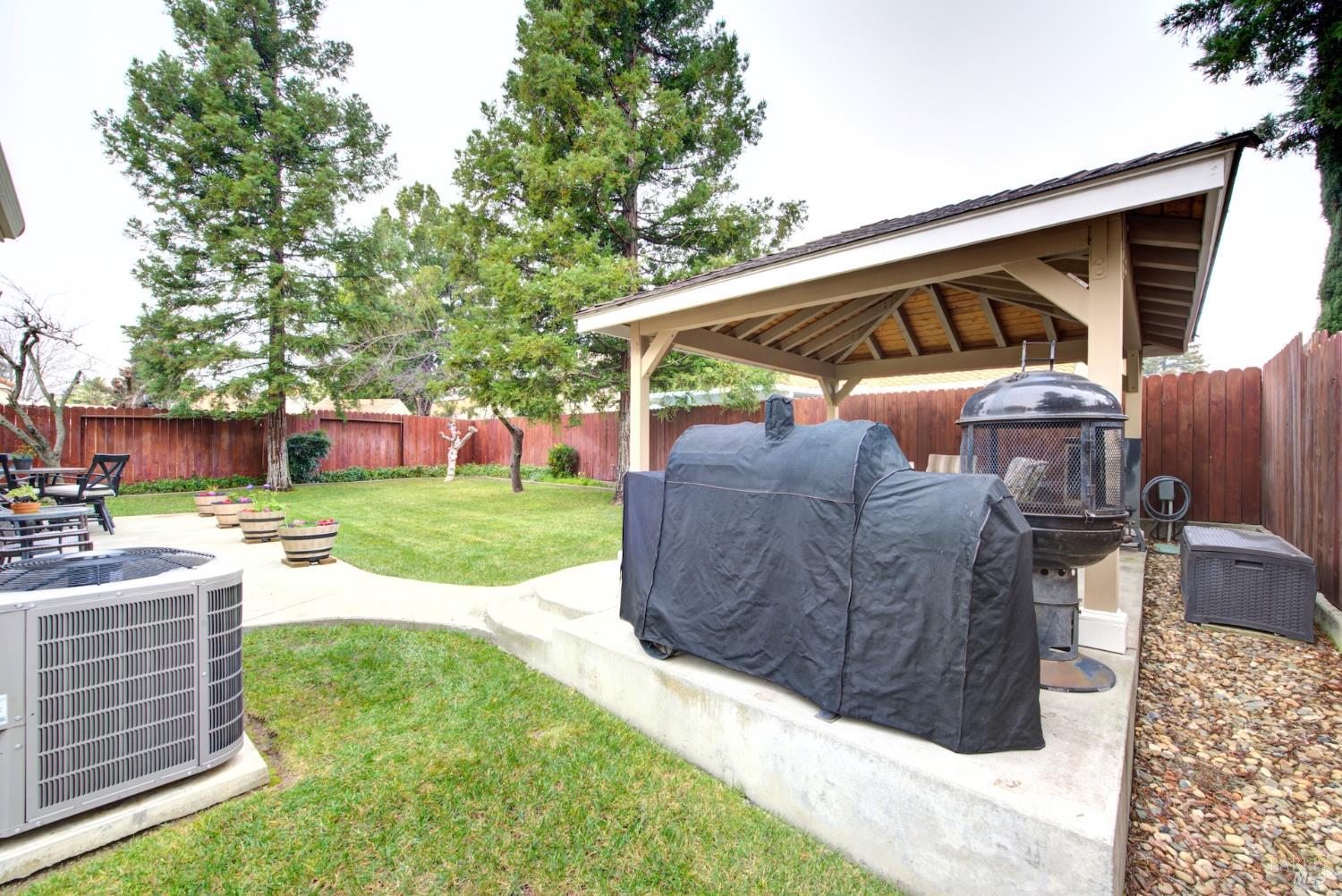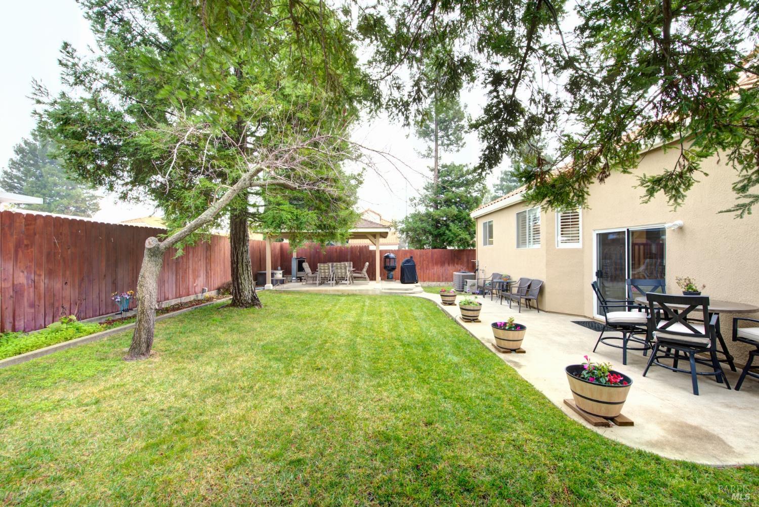 Beautiful, well-maintained home located in the highly desirable Browns Valley neighborhood of Vacaville. Freshly painted on the exterior and positioned on a manicured corner lot, this home offers outstanding curb appeal and pride of ownership throughout. Step inside to dramatic vaulted ceilings that create a warm, inviting, and prestigious atmosphere. There is a Formal dining area for hosting events. The kitchen features lovely quartz countertops, newer appliances, upgraded recessed lighting, and ample cabinetry, making it ideal for both everyday living and entertaining. A separate family room with high ceilings and a cozy fireplace provides another perfect gathering space. A convenient bedroom and full bathroom on the lower level offer flexibility for guests, multi-generational living, or a home office. The garage currently serves as a versatile bonus living space but can easily be converted back to a traditional garage if desired. Major system upgrades include a new HVAC system and a newer water heater. Custom shutters throughout the home add timeless style and functionality. Upstairs you'll find three additional bedrooms, including a spacious primary suite with a walk-in closet, dual sinks with new, classy faucets, a soaking tub, and a separate shower. The backyard is beautifully designed and ideal for entertaining, featuring a large gazebo, raised concrete footers for added privacy, sturdy double fencing, and a convenient side-yard shed. Additional highlights include a 30-amp RV plug and 240-volt electrical already in place for a spa, offering excellent functionality and future flexibility. Enjoy easy access to Centennial Park with exciting new expansion plans, along with nearby walking trails, schools, gym, and more. This is a truly special home! Come see it today!