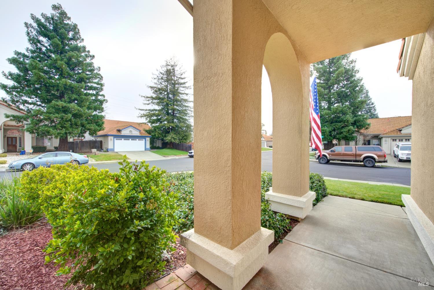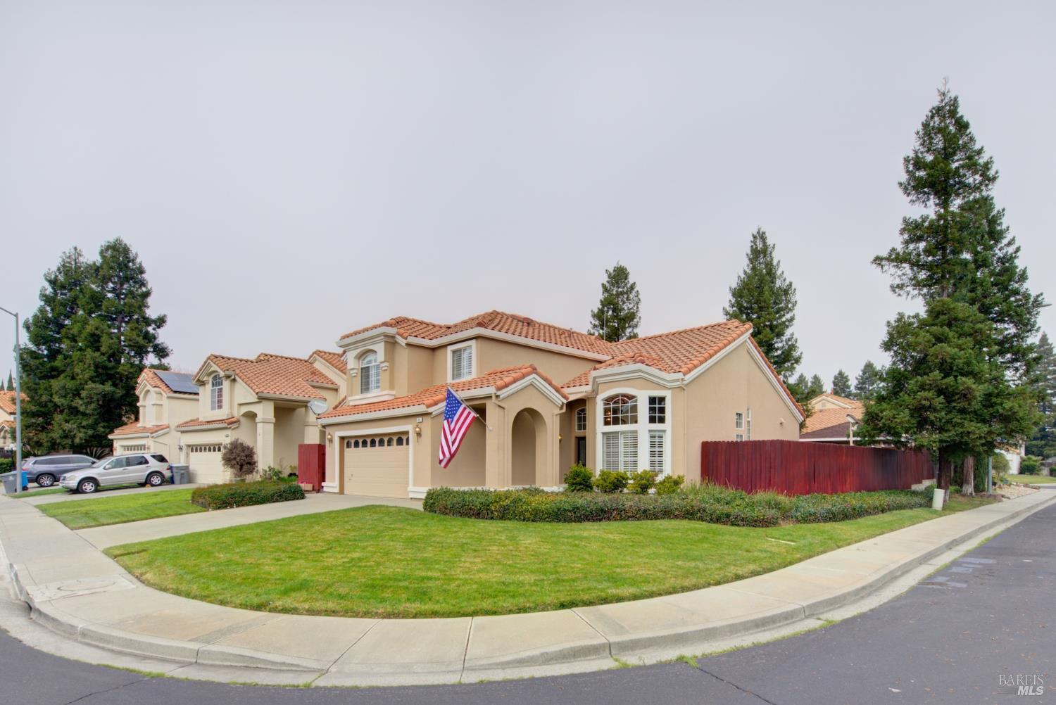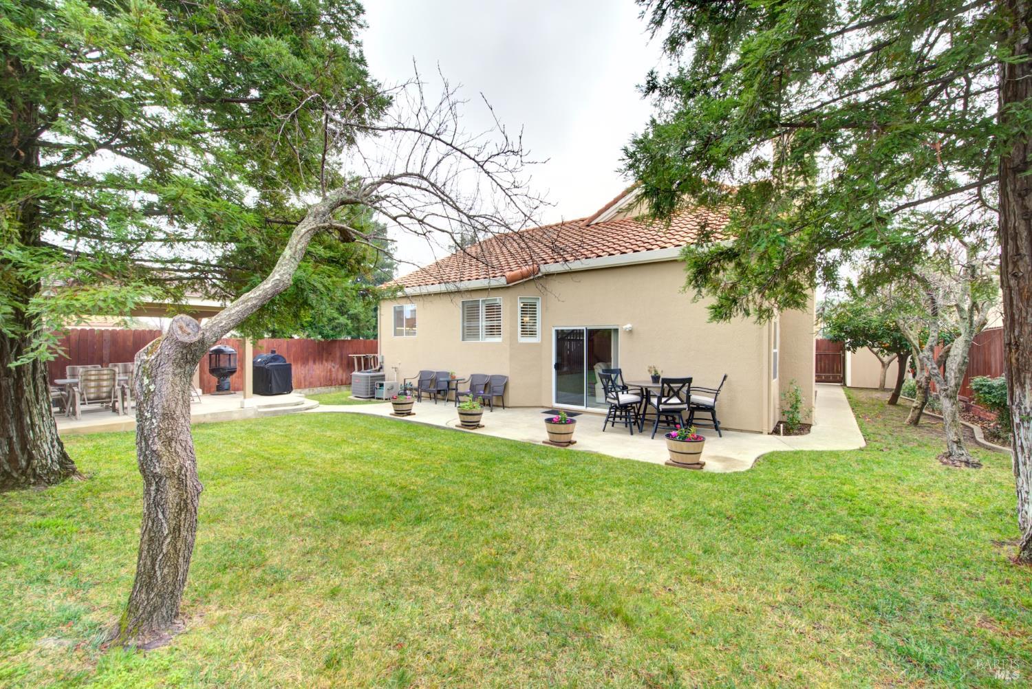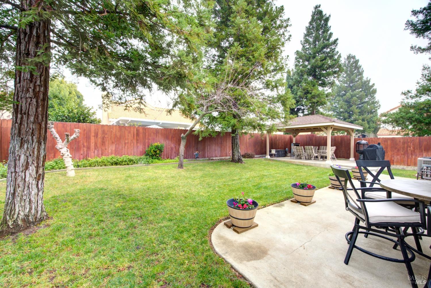 Beautiful, well-maintained home located in the highly desirable Browns Valley neighborhood of Vacaville. Freshly painted on the exterior and positioned on a manicured corner lot, this home offers outstanding curb appeal and pride of ownership throughout. Step inside to dramatic vaulted ceilings that create a warm, inviting, and prestigious atmosphere. There is a Formal dining area for hosting events. The kitchen features lovely quartz countertops, newer appliances, upgraded recessed lighting, and ample cabinetry, making it ideal for both everyday living and entertaining. A separate family room with high ceilings and a cozy fireplace provides another perfect gathering space. A convenient bedroom and full bathroom on the lower level offer flexibility for guests, multi-generational living, or a home office. The garage currently serves as a versatile bonus living space but can easily be converted back to a traditional garage if desired. Major system upgrades include a new HVAC system and a newer water heater. Custom shutters throughout the home add timeless style and functionality. Upstairs you'll find three additional bedrooms, including a spacious primary suite with a walk-in closet, dual sinks with new, classy faucets, a soaking tub, and a separate shower. The backyard is beautifully designed and ideal for entertaining, featuring a large gazebo, raised concrete footers for added privacy, sturdy double fencing, and a convenient side-yard shed. Additional highlights include a 30-amp RV plug and 240-volt electrical already in place for a spa, offering excellent functionality and future flexibility. Enjoy easy access to Centennial Park with exciting new expansion plans, along with nearby walking trails, schools, gym, and more. This is a truly special home! Come see it today!