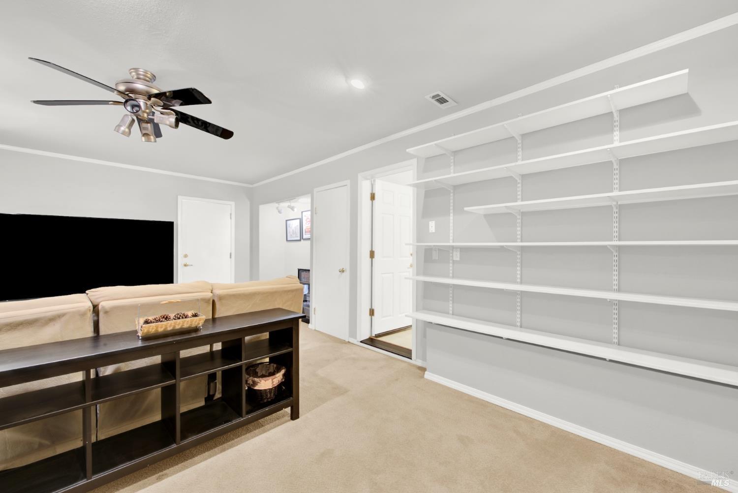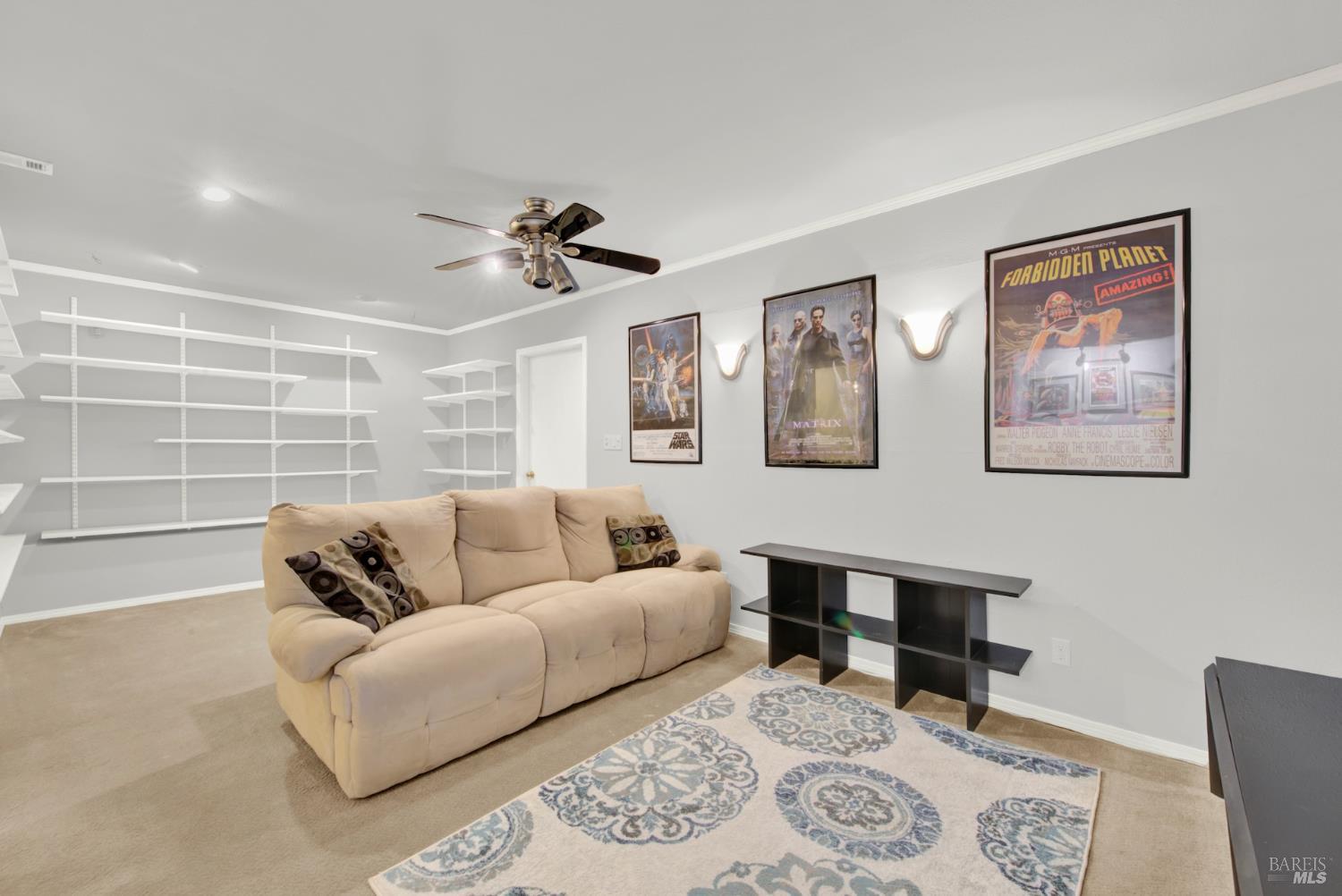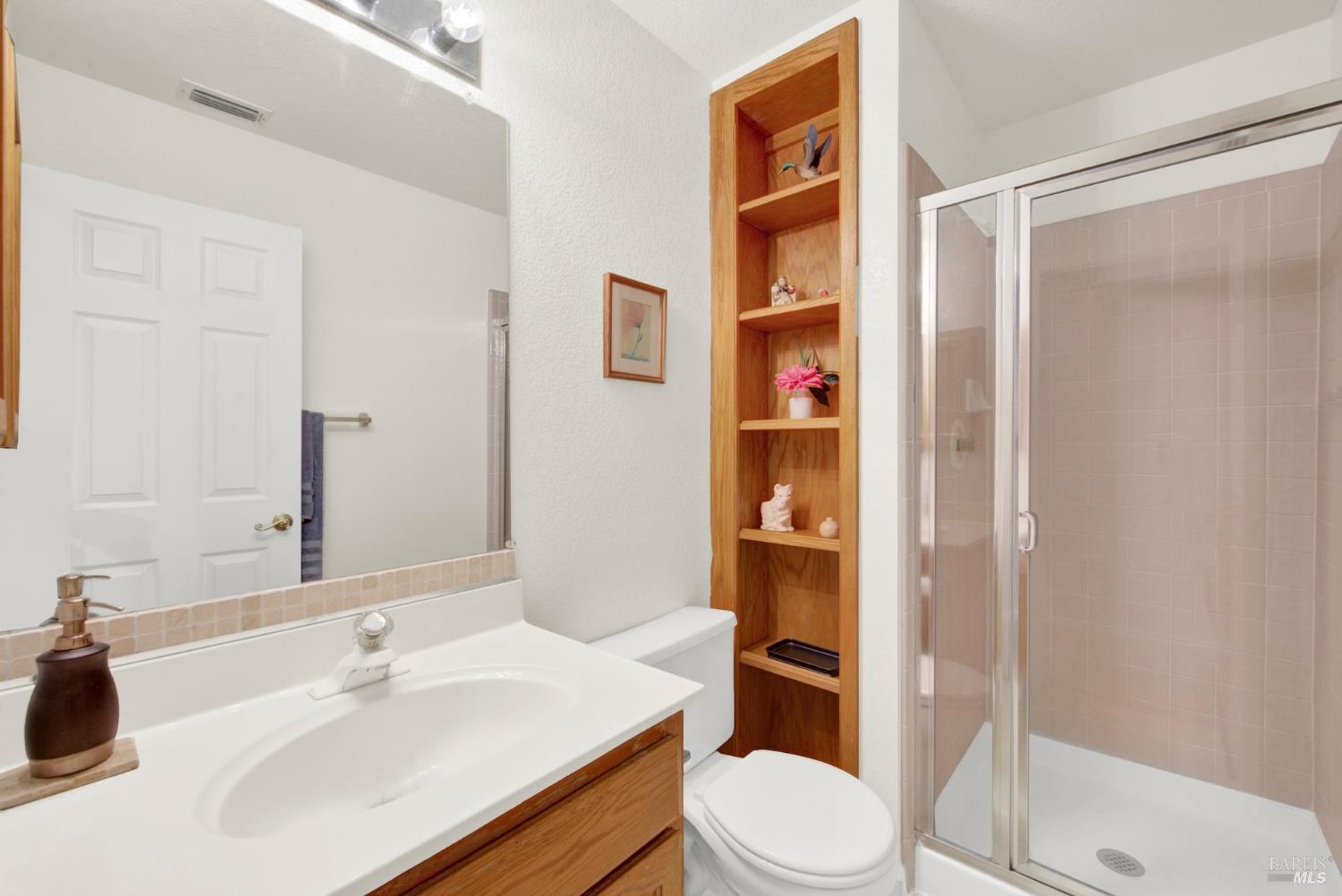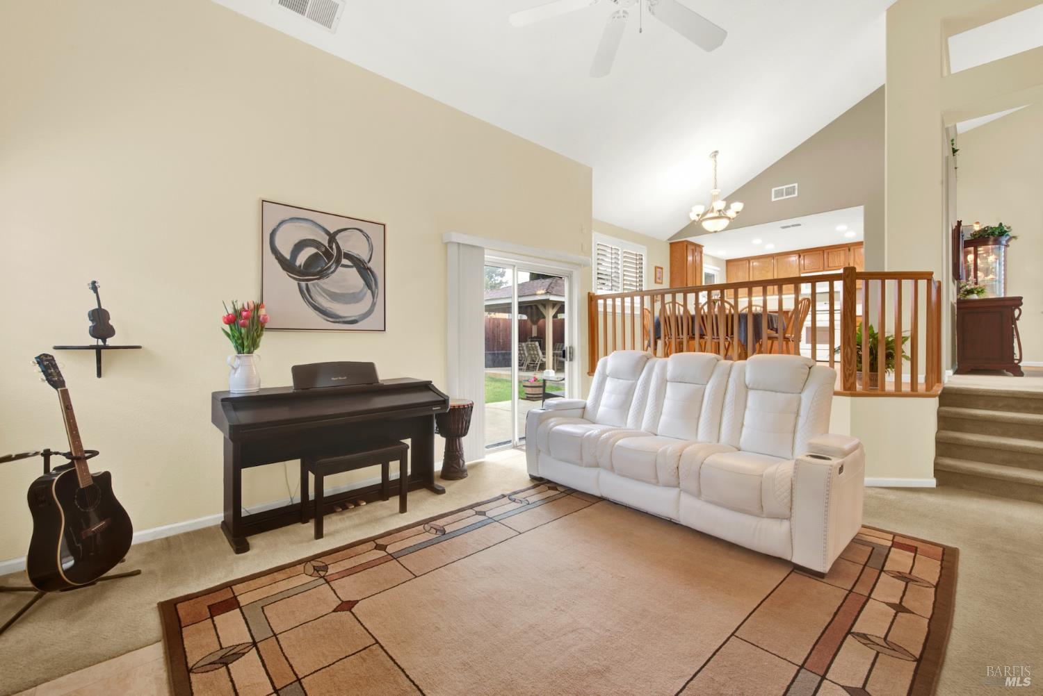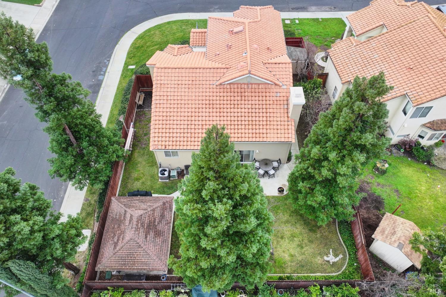 Beautiful, well-maintained home located in the highly desirable Browns Valley neighborhood of Vacaville. Freshly painted on the exterior and positioned on a manicured corner lot, this home offers outstanding curb appeal and pride of ownership throughout. Step inside to dramatic vaulted ceilings that create a warm, inviting, and prestigious atmosphere. There is a Formal dining area for hosting events. The kitchen features lovely quartz countertops, newer appliances, upgraded recessed lighting, and ample cabinetry, making it ideal for both everyday living and entertaining. A separate family room with high ceilings and a cozy fireplace provides another perfect gathering space. A convenient bedroom and full bathroom on the lower level offer flexibility for guests, multi-generational living, or a home office. The garage currently serves as a versatile bonus living space but can easily be converted back to a traditional garage if desired. Major system upgrades include a new HVAC system and a newer water heater. Custom shutters throughout the home add timeless style and functionality. Upstairs you'll find three additional bedrooms, including a spacious primary suite with a walk-in closet, dual sinks with new, classy faucets, a soaking tub, and a separate shower. The backyard is beautifully designed and ideal for entertaining, featuring a large gazebo, raised concrete footers for added privacy, sturdy double fencing, and a convenient side-yard shed. Additional highlights include a 30-amp RV plug and 240-volt electrical already in place for a spa, offering excellent functionality and future flexibility. Enjoy easy access to Centennial Park with exciting new expansion plans, along with nearby walking trails, schools, gym, and more. This is a truly special home! Come see it today!