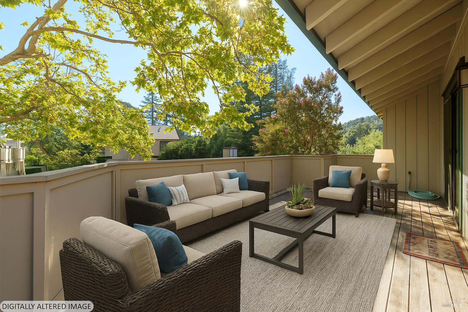 Welcome to your peaceful end-unit condo in Novato! This condo offers privacy, abundant light, and tranquil views of open space that will never be built on. Thoughtfully maintained this condo features two bedrooms, one bath, and a private deck perfect for morning coffee or evening relaxation. Upgrades include Brazilian Jakoba-style floors, gold-flecked Brazilian granite counters, and hand-painted Portuguese tile backsplash on kitchen walls. The kitchen also includes double stainless sink, stainless refrigerator and stove, and an oak-finish ceiling fan in the dining area that complements the home's warm, natural aesthetic with a hand-painted mural by a notable artist. Enjoy plantation shutters for year-round comfort and a bathroom accented with mosaic tiles featuring imported designer pieces from Italy, Greece, Portugal, and Africa. With two entryways, ample storage, a community pool, hot tub, and 2-car tandem carport (plus guest parking), this serene home offers easy access to shopping, dining, and easy access to Hwy 101 & 37.