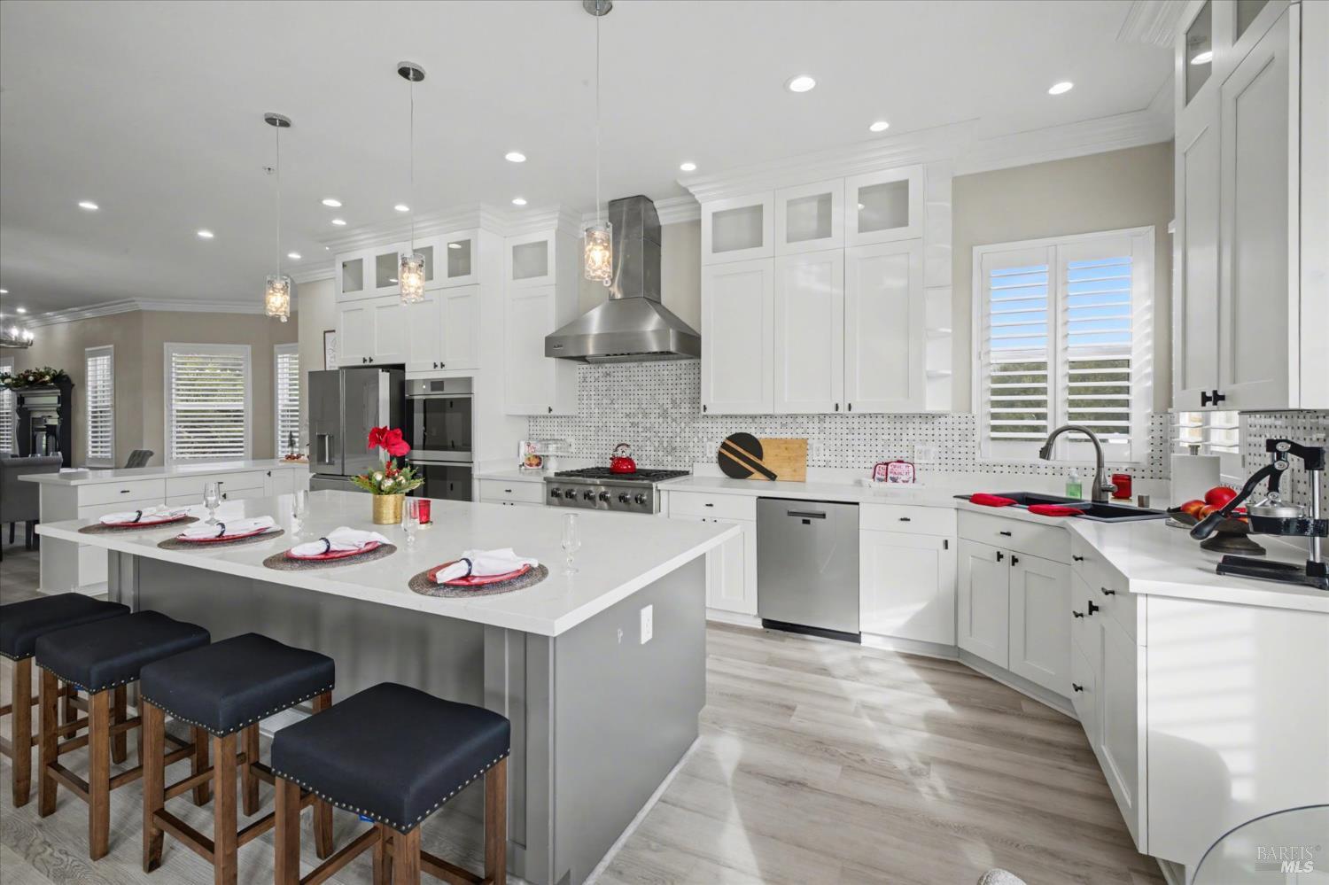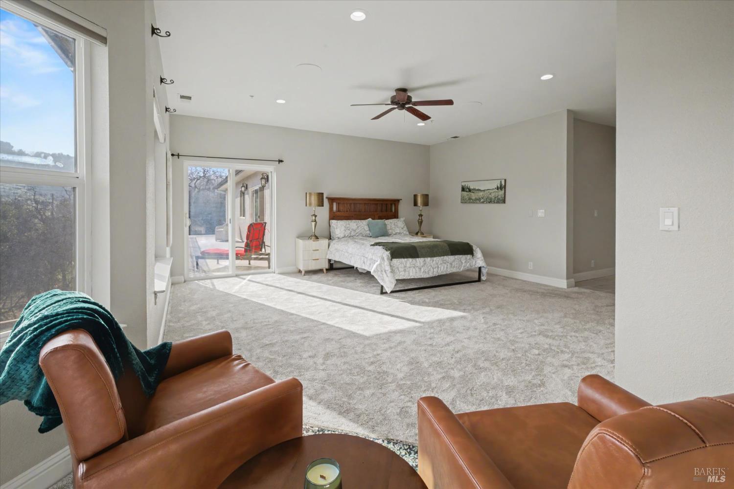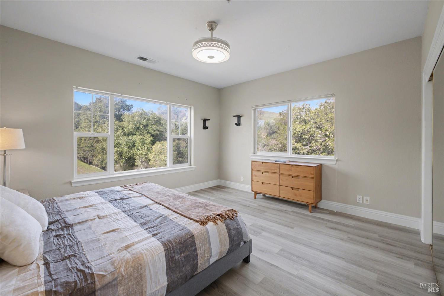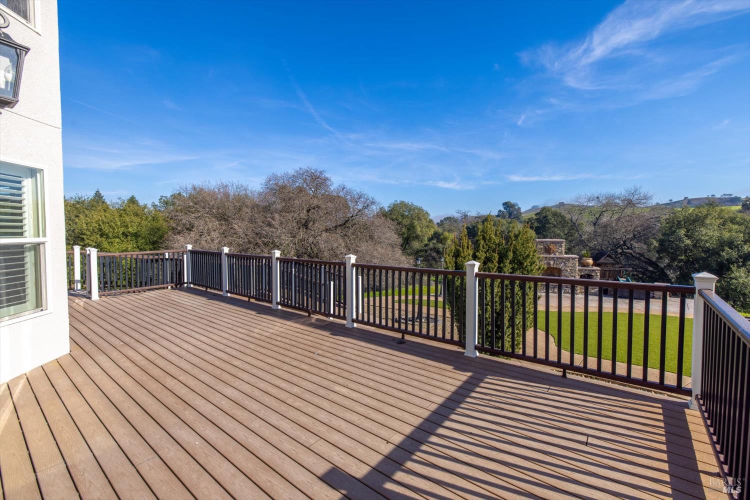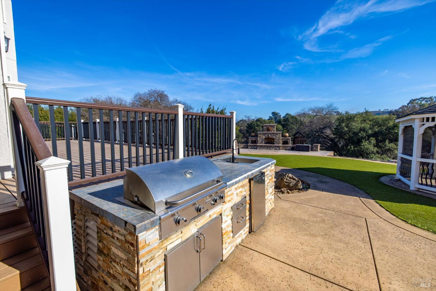 Located just 10 minutes from downtown Vacaville, this dream estate sits on a quiet cul-de-sac among multimillion-dollar ranch properties and enjoys a majestic natural setting, abutting a seasonal creek on two sides for exceptional privacy and and views. 5 usable acres with full access for animals and play areas with a prime site for a future ADU (zoned for up to approximately 1,500 sq ft). The inviting Mediterranean-style residence features a grand foyer with an approx. 24 ft ceiling, wraparound verandas perfect to enjoy the views, five bedrooms plus a stately main-level office, and a generous family room upstairs for media, homework, or game room uses. The remodeled chef's kitchen showcases high-end finishes and appliances, open to a warm great-room environment anchored by one of two gas fireplaces. With four full bathrooms, including a convenient downstairs bedroom and full bath, the floorplan supports multi-generational living and flexible lifestyle needs. Resort-style outdoor living includes a PebbleTec pool with waterfall, multiple outdoor kitchen/bar areas, a striking outdoor fireplace, and an RV parking pad with full hookups. The three car oversized garage and approximately 40' x 60' metal shop is a hobbyist's or contractor's dream, providing substantial room for vehicles, tools, and projects. Owned solar, room for animal pens, garden beds, and future amenities completes this rare, fully usable country property close to town.