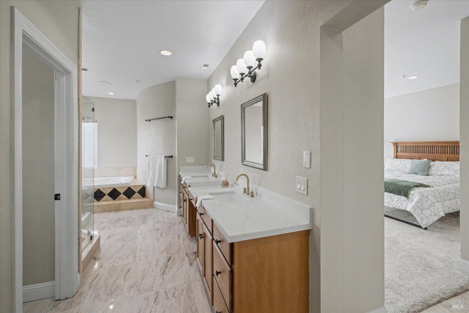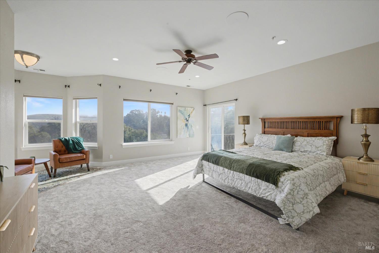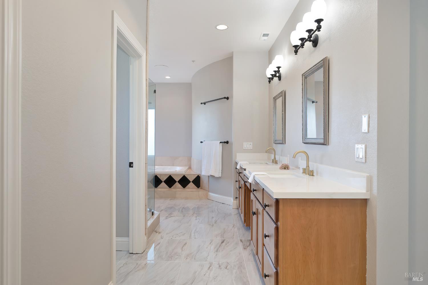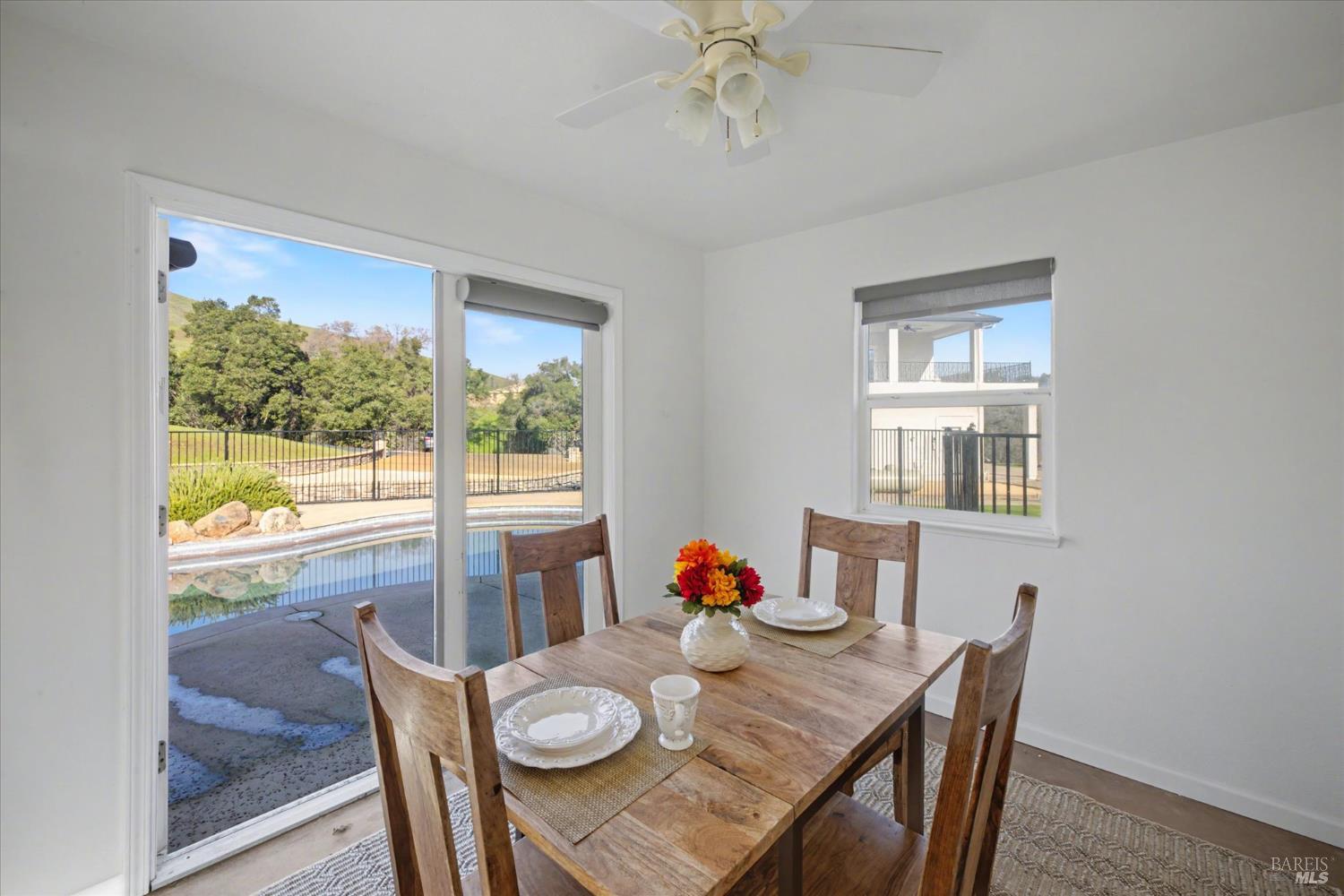Located just 10 minutes from downtown Vacaville, this dream estate sits on a quiet cul-de-sac among multimillion-dollar ranch properties and enjoys a majestic natural setting, abutting a seasonal creek on two sides for exceptional privacy and and views. 5 usable acres with full access for animals and play areas with a prime site for a future ADU (zoned for up to approximately 1,500 sq ft). The inviting Mediterranean-style residence features a grand foyer with an approx. 24 ft ceiling, wraparound verandas perfect to enjoy the views, five bedrooms plus a stately main-level office, and a generous family room upstairs for media, homework, or game room uses. The remodeled chef's kitchen showcases high-end finishes and appliances, open to a warm great-room environment anchored by one of two gas fireplaces. With four full bathrooms, including a convenient downstairs bedroom and full bath, the floorplan supports multi-generational living and flexible lifestyle needs. Resort-style outdoor living includes a PebbleTec pool with waterfall, multiple outdoor kitchen/bar areas, a striking outdoor fireplace, and an RV parking pad with full hookups. The three car oversized garage and approximately 40' x 60' metal shop is a hobbyist's or contractor's dream, providing substantial room for vehicles, tools, and projects. Owned solar, room for animal pens, garden beds, and future amenities completes this rare, fully usable country property close to town.