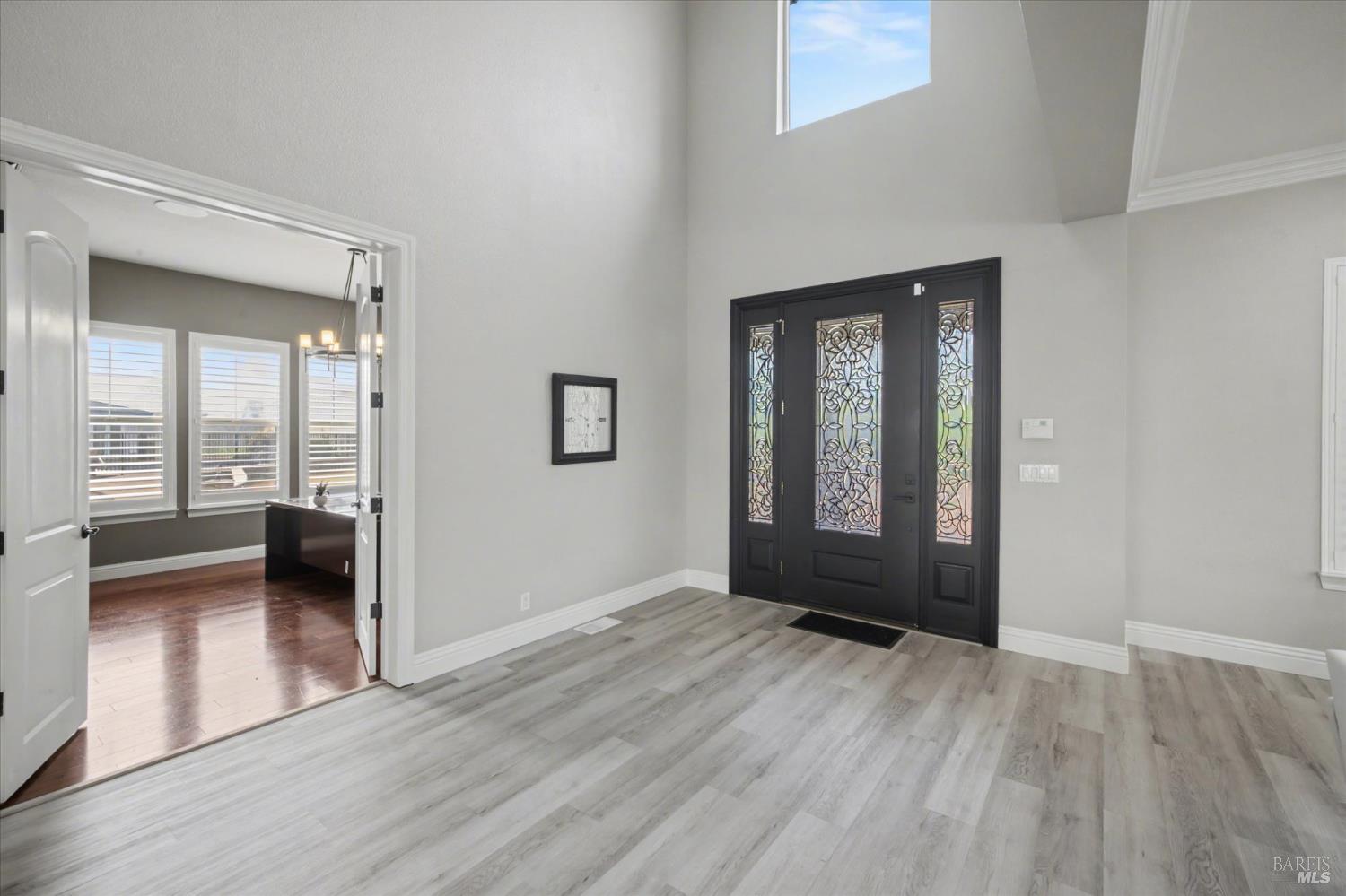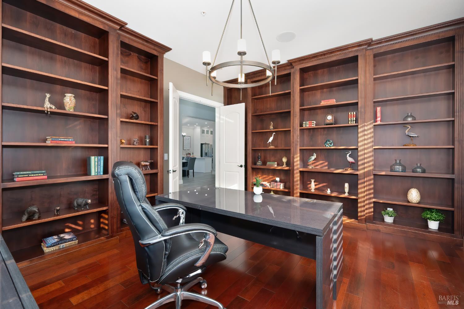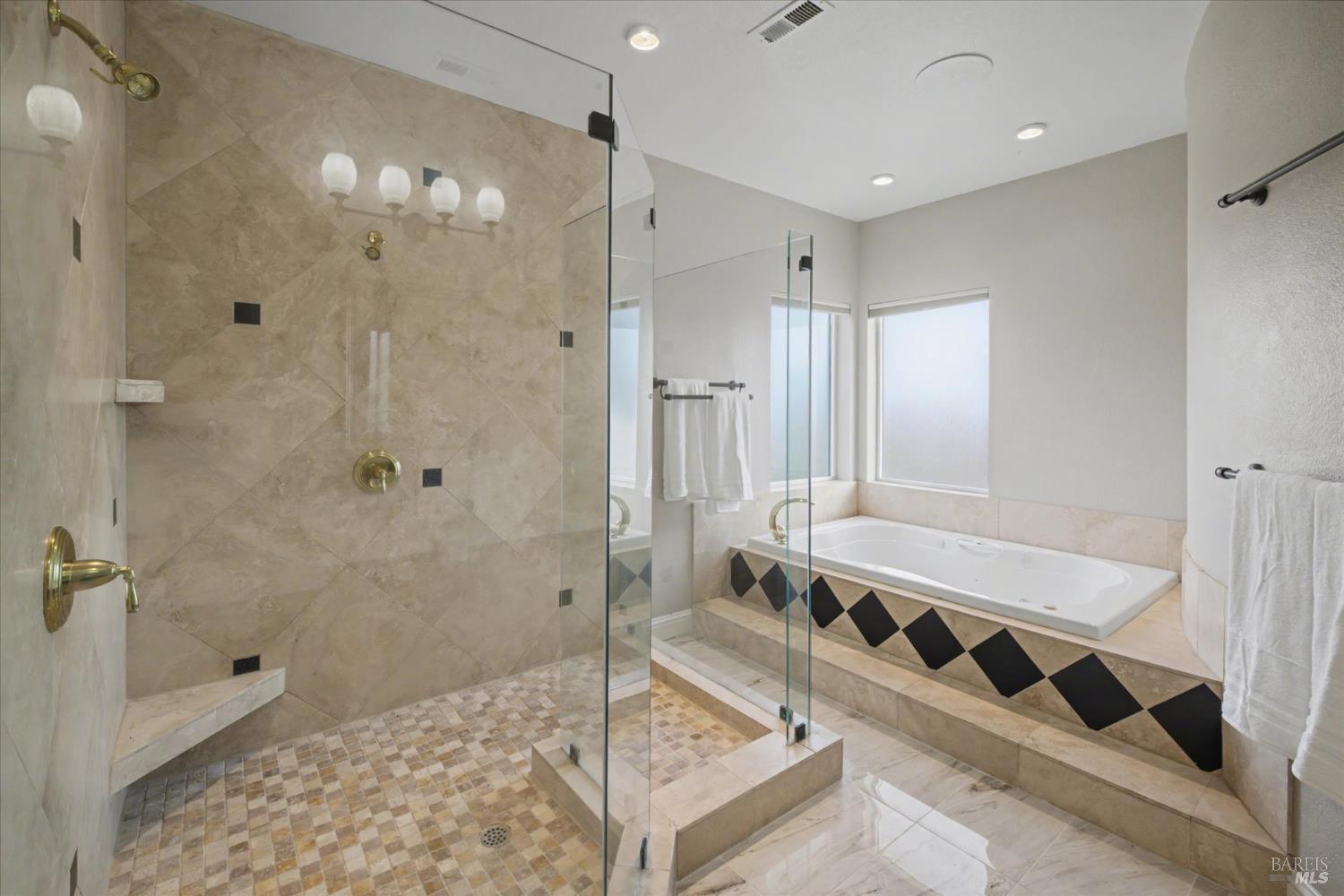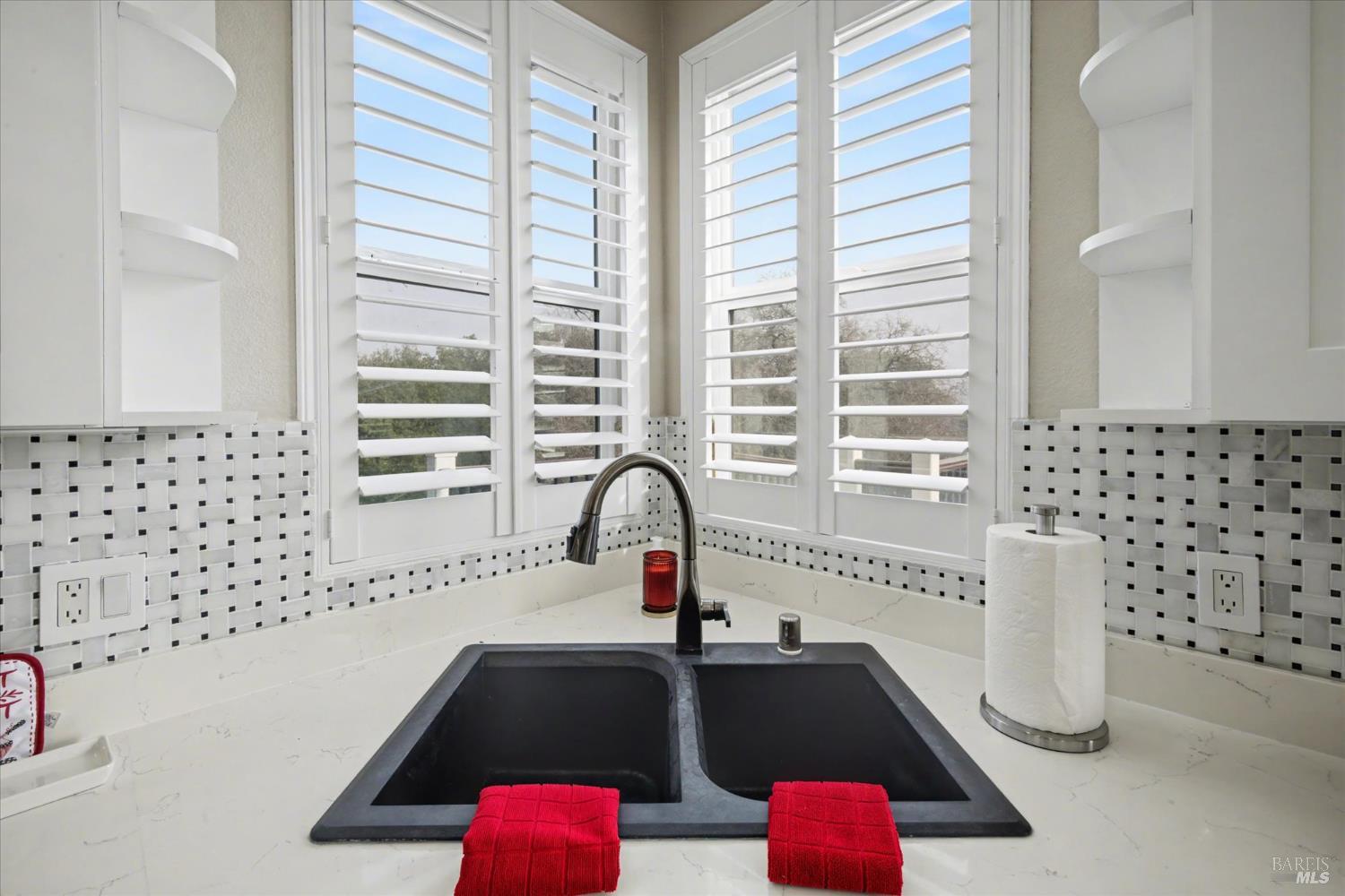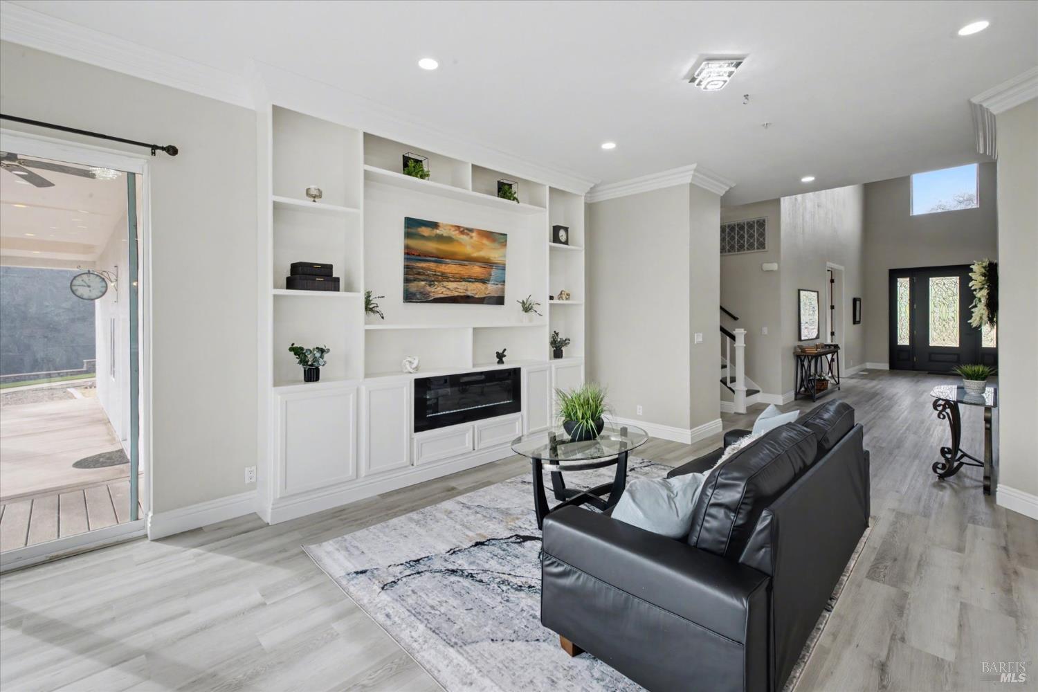 Located just 10 minutes from downtown Vacaville, this dream estate sits on a quiet cul-de-sac among multimillion-dollar ranch properties and enjoys a majestic natural setting, abutting a seasonal creek on two sides for exceptional privacy and and views. 5 usable acres with full access for animals and play areas with a prime site for a future ADU (zoned for up to approximately 1,500 sq ft). The inviting Mediterranean-style residence features a grand foyer with an approx. 24 ft ceiling, wraparound verandas perfect to enjoy the views, five bedrooms plus a stately main-level office, and a generous family room upstairs for media, homework, or game room uses. The remodeled chef's kitchen showcases high-end finishes and appliances, open to a warm great-room environment anchored by one of two gas fireplaces. With four full bathrooms, including a convenient downstairs bedroom and full bath, the floorplan supports multi-generational living and flexible lifestyle needs. Resort-style outdoor living includes a PebbleTec pool with waterfall, multiple outdoor kitchen/bar areas, a striking outdoor fireplace, and an RV parking pad with full hookups. The three car oversized garage and approximately 40' x 60' metal shop is a hobbyist's or contractor's dream, providing substantial room for vehicles, tools, and projects. Owned solar, room for animal pens, garden beds, and future amenities completes this rare, fully usable country property close to town.