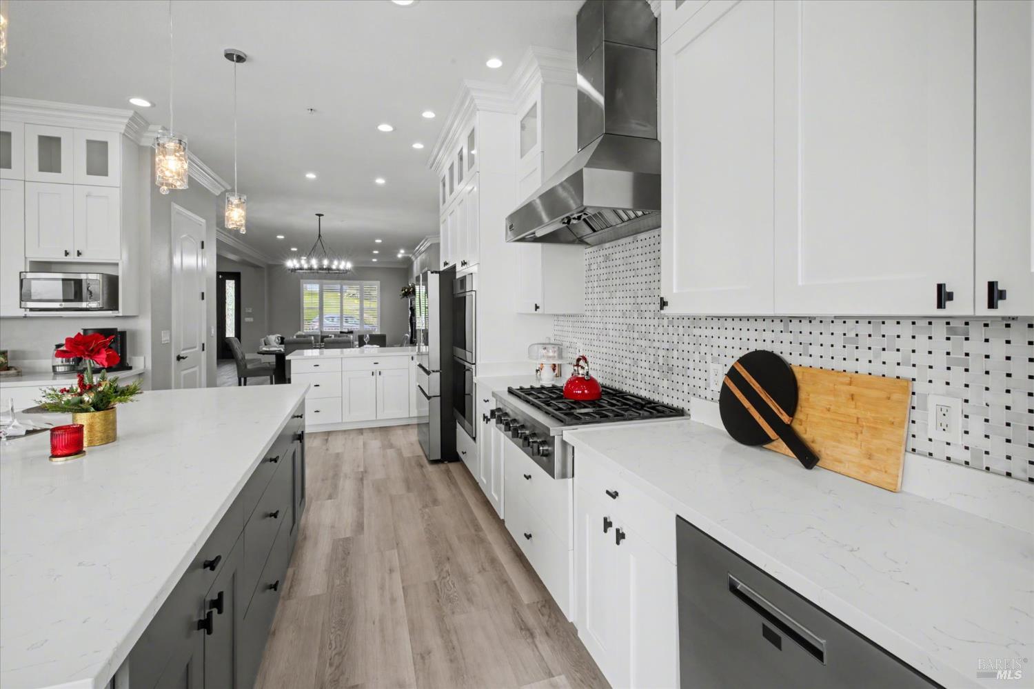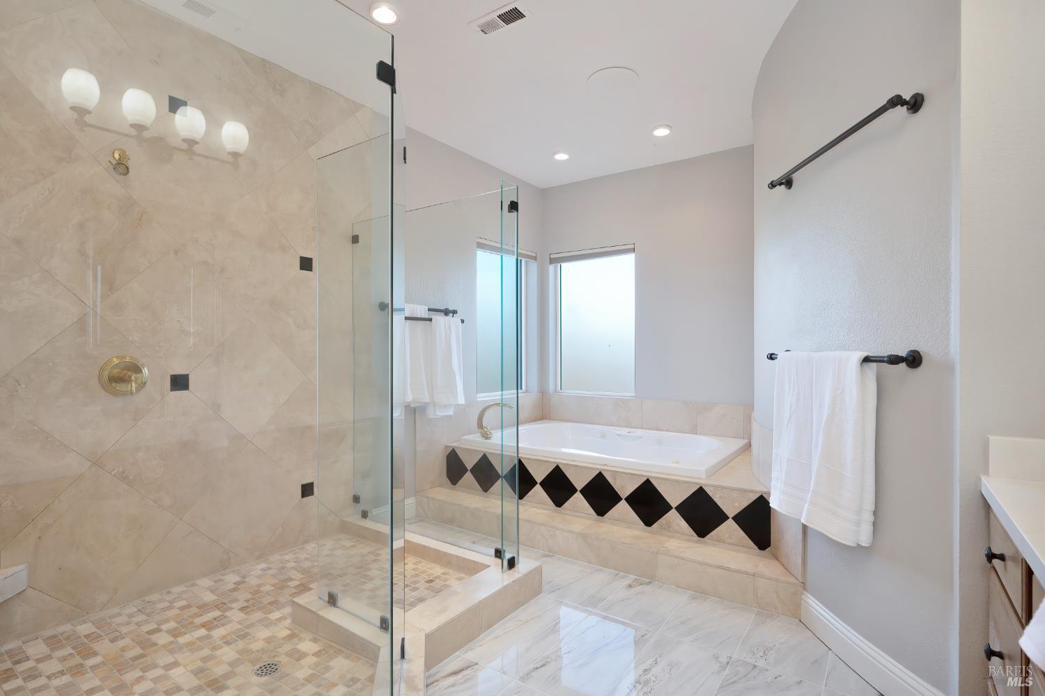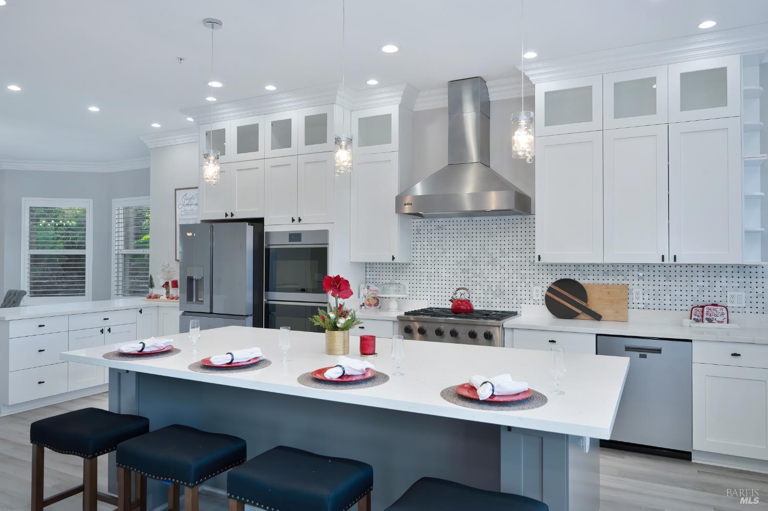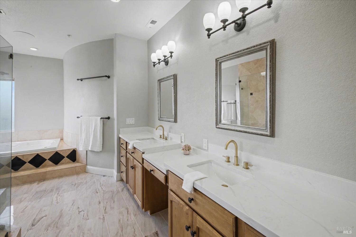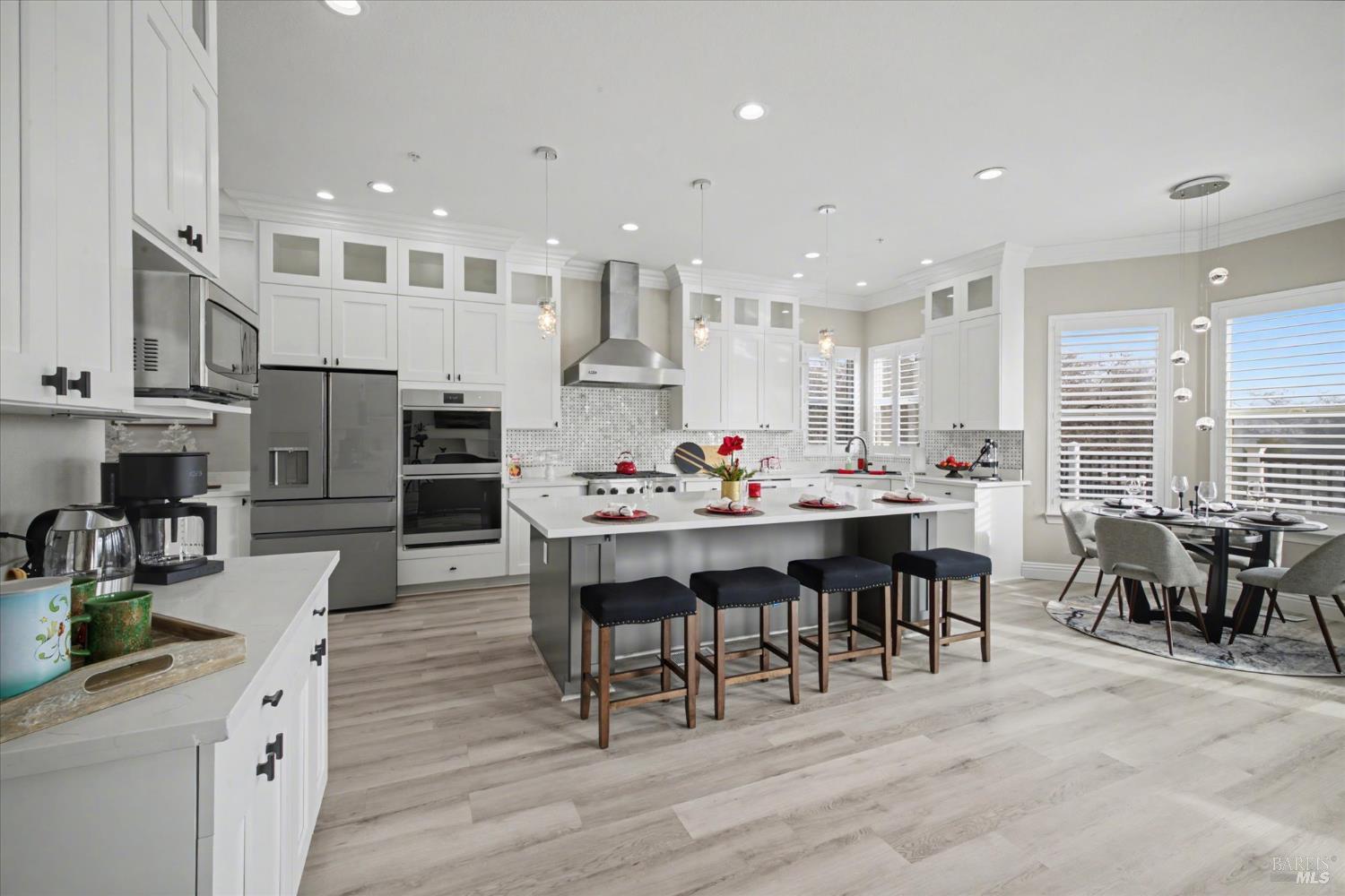 Located just 10 minutes from downtown Vacaville, this dream estate sits on a quiet cul-de-sac among multimillion-dollar ranch properties and enjoys a majestic natural setting, abutting a seasonal creek on two sides for exceptional privacy and and views. 5 usable acres with full access for animals and play areas with a prime site for a future ADU (zoned for up to approximately 1,500 sq ft). The inviting Mediterranean-style residence features a grand foyer with an approx. 24 ft ceiling, wraparound verandas perfect to enjoy the views, five bedrooms plus a stately main-level office, and a generous family room upstairs for media, homework, or game room uses. The remodeled chef's kitchen showcases high-end finishes and appliances, open to a warm great-room environment anchored by one of two gas fireplaces. With four full bathrooms, including a convenient downstairs bedroom and full bath, the floorplan supports multi-generational living and flexible lifestyle needs. Resort-style outdoor living includes a PebbleTec pool with waterfall, multiple outdoor kitchen/bar areas, a striking outdoor fireplace, and an RV parking pad with full hookups. The three car oversized garage and approximately 40' x 60' metal shop is a hobbyist's or contractor's dream, providing substantial room for vehicles, tools, and projects. Owned solar, room for animal pens, garden beds, and future amenities completes this rare, fully usable country property close to town.