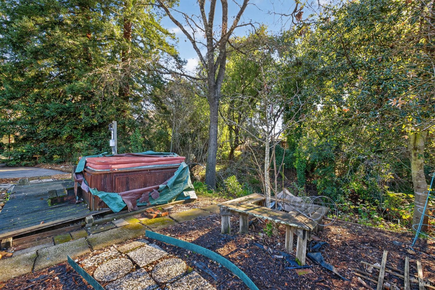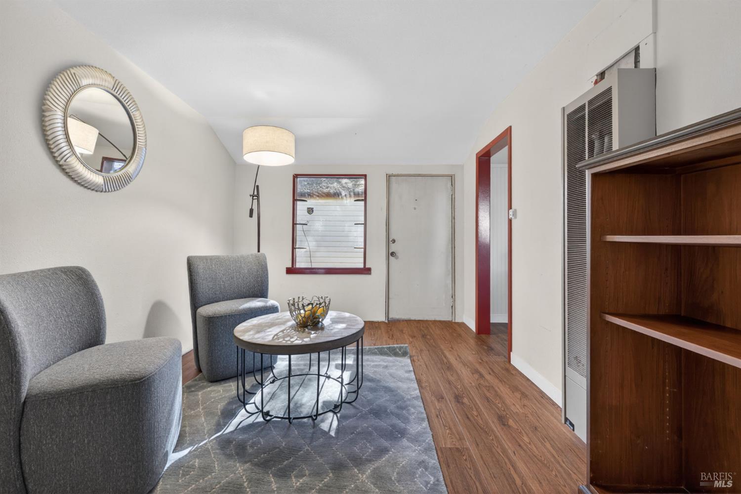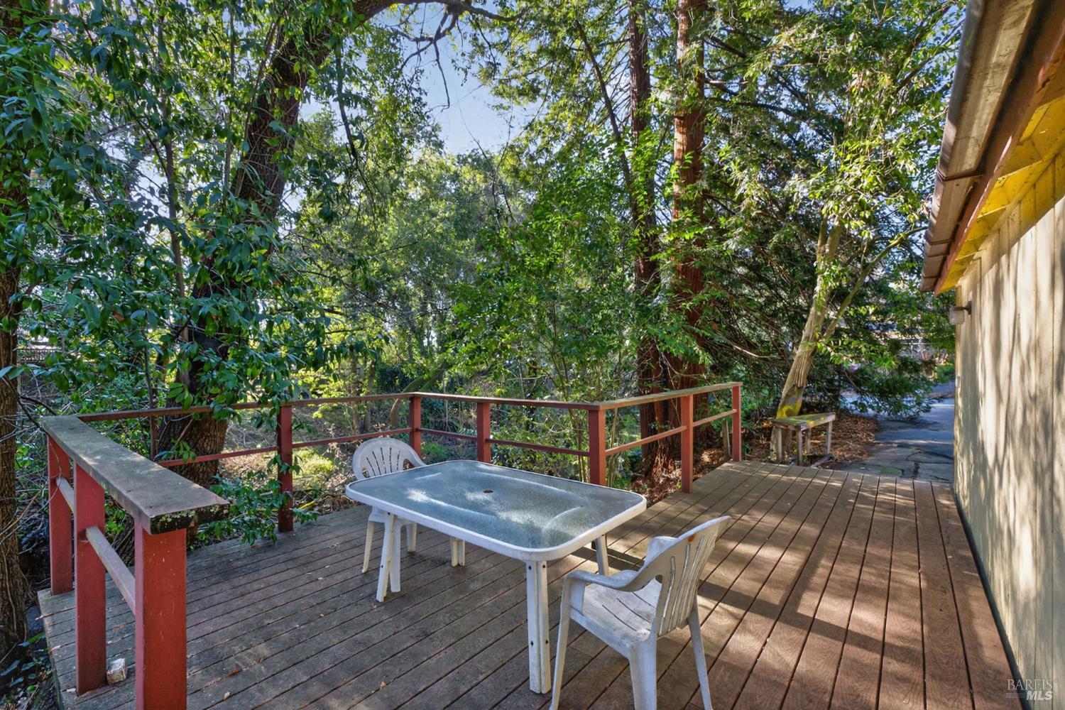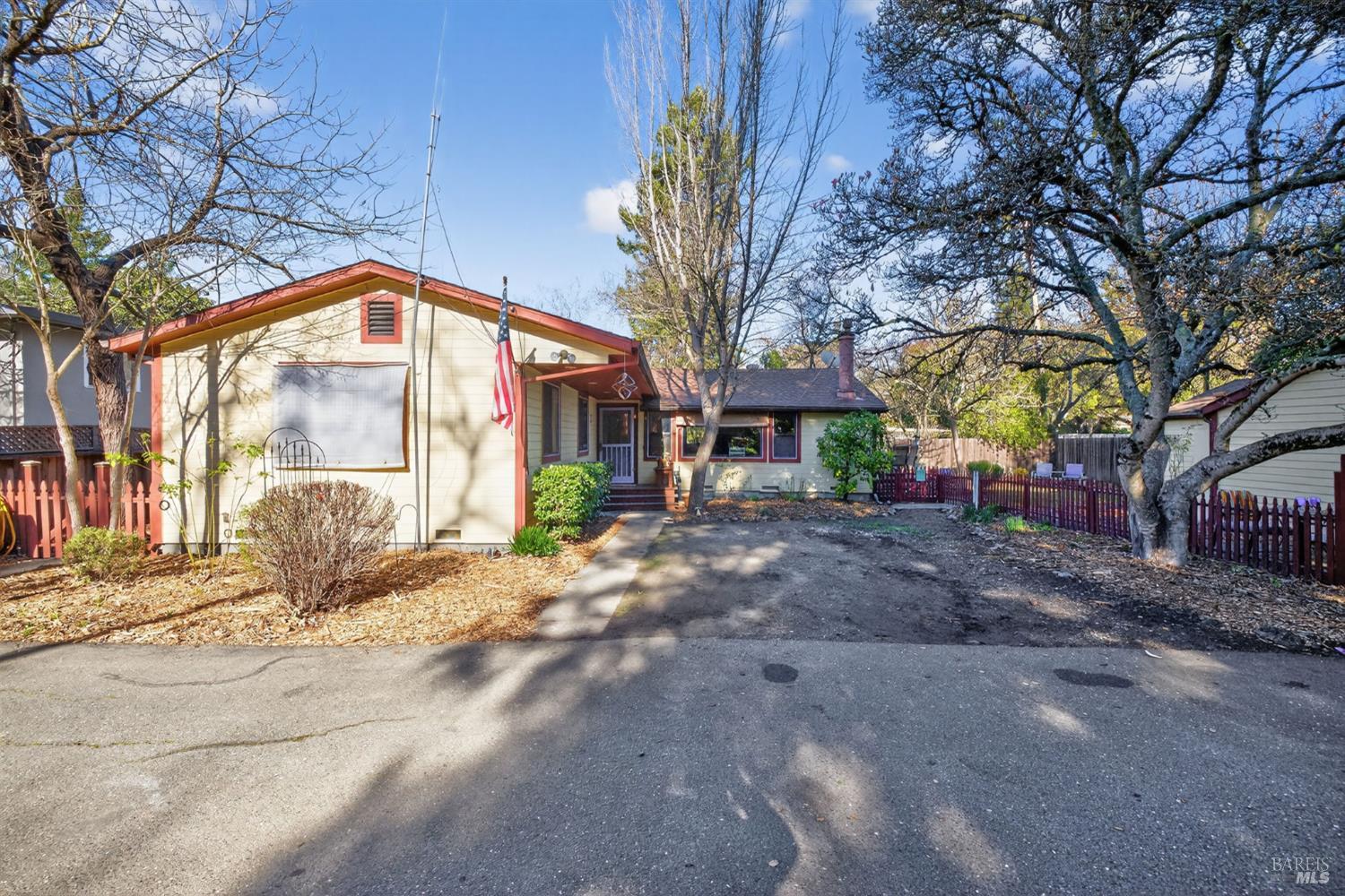 A main home and separate cottage anchor this rare Creekside property with detached garage space and generous parking, set on a private lane at the end of a quiet cul-de-sac just minutes from downtown Santa Rosa. Mature trees frame the property, with the Creekside setting creating a calm, tucked-away feel. The main residence offers two bedrooms and one bathroom, wood floors, a cozy living room with fireplace, and a dining area off the kitchen. A side laundry room and pantry add everyday function, and a large family room with built-in bookcases provides a flexible living space. The home has warmth, character, and clear potential for your own updates. The detached one-bedroom, one-bath granny unit features a comfortable cottage feel and its own sense of charm. A detached garage includes a larger bay door along with an additional one-car garage, offering versatile storage and parking options. Decks overlook the creek, garden beds receive good sun exposure, and the backyard includes lawn space and shaded seating beneath mature trees. This home is on City water but also has a well for gardens and irrigation. Peaceful and private, yet close to downtown Santa Rosa with a variety of dining and shopping. Visit nearby wineries or enjoy a short drive to Bodega Bay. This property offers a rare opportunity to refresh and personalize a truly special setting.