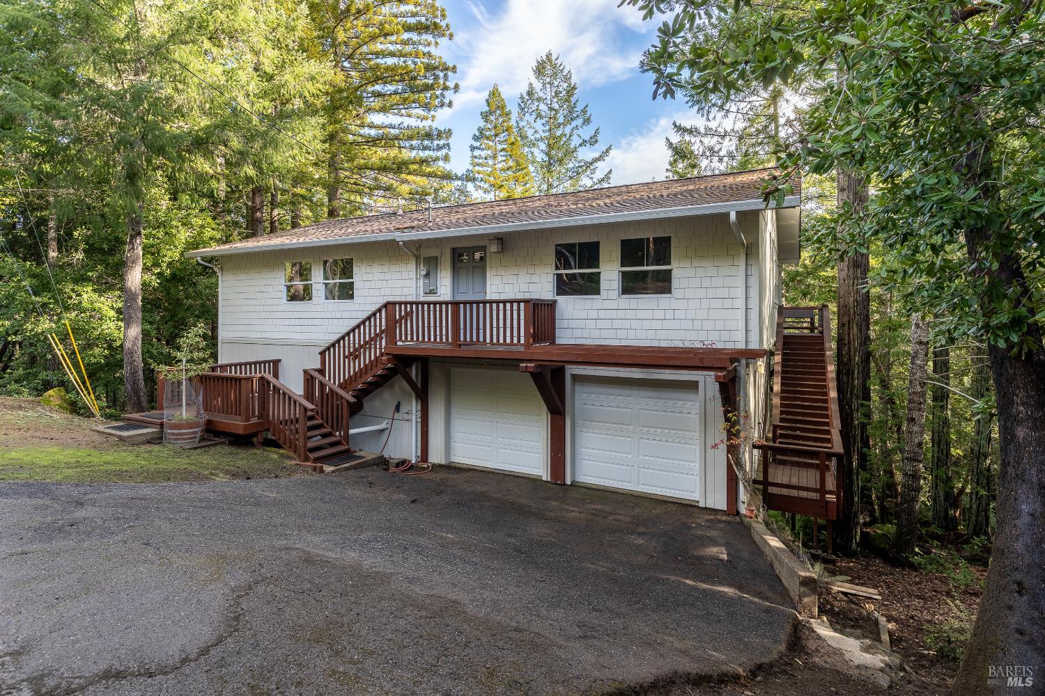 Newly renovated and move-in ready, this thoughtfully updated 3-bedroom, 2-bath home offers a rare blend of modern comfort and a truly special setting. Backing to the greenbelt and golf course, and surrounded by towering redwood and fir trees, the home feels private, peaceful, and naturally connected to its surroundings. At approximately 1,344 square feet, the layout is functional and inviting, with a spacious living room and excellent indoor-outdoor flow. Treehouse-like views can be enjoyed from the kitchen, main deck, and a private balcony, creating a daily connection to the forested landscape. Recently renovated decking with wire panels enhances both safety and the expansive views. The interior has been comprehensively refreshed with new vinyl plank flooring throughout and fresh interior paint. The updated kitchen features new countertops, a stainless steel electric range with vent hood, stainless dishwasher, and a new stainless sink with flexible sprayer, along with recessed lighting for a clean, modern feel. Both bathrooms feature custom lighting, with the primary bath offering a luxury walk-in shower and a custom vanity with a unique ceramic sink basin. Additional upgrades include custom closet organizers in all bedrooms, new ceiling fan/light fixtures in each bedroom and the dining area, central heating and air conditioning, and a roof less than 10 years old. A steel-reinforced foundation adds an extra level of stability and peace of mind. Laundry hookups are conveniently located in the hall, and the attached two-car garage provides everyday practicality. This is a rare opportunity to own a fully updated home in a setting that feels private and elevatedyet remains attainable. A perfect fit for buyers seeking a turnkey property with character, views, and long-term comfort.