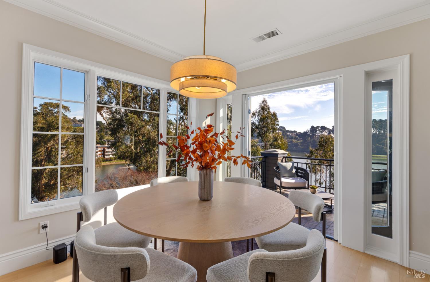 The premier end-unit residence on De Silva Island, offering exceptional privacy with no neighbors behind or in front, abundant natural light, and the largest floor plan in the community. Living like a single-family home, the residence is surrounded by water and sky, with expansive windows capturing sweeping views of the Bay, Sausalito, and the Marin Headlands. The living and dining areas flow seamlessly together and open through French doors to a private waterfront patioideal for morning coffee or sunset dinners. The chef's kitchen features high end appliances, a generous island with wine refrigerator, custom cabinetry, and a built-in butler's desk. Unique to this floor plan, a bonus family room overlooks the pool, a tree-lined hillside, and Mount Tam and offers versatility.The lower level offers a private primary suite with fireplace, private balcony, spa-like bath, walk-in closet, and designated space for a future elevator as well as 2 additional bedrooms and full bathroom. HOA-maintained grounds include a clubhouse with pool and spa, plus a scenic bayfront walking path just steps away, all minutes from shopping, dining, the 101, San Francisco and the best of Marin County.