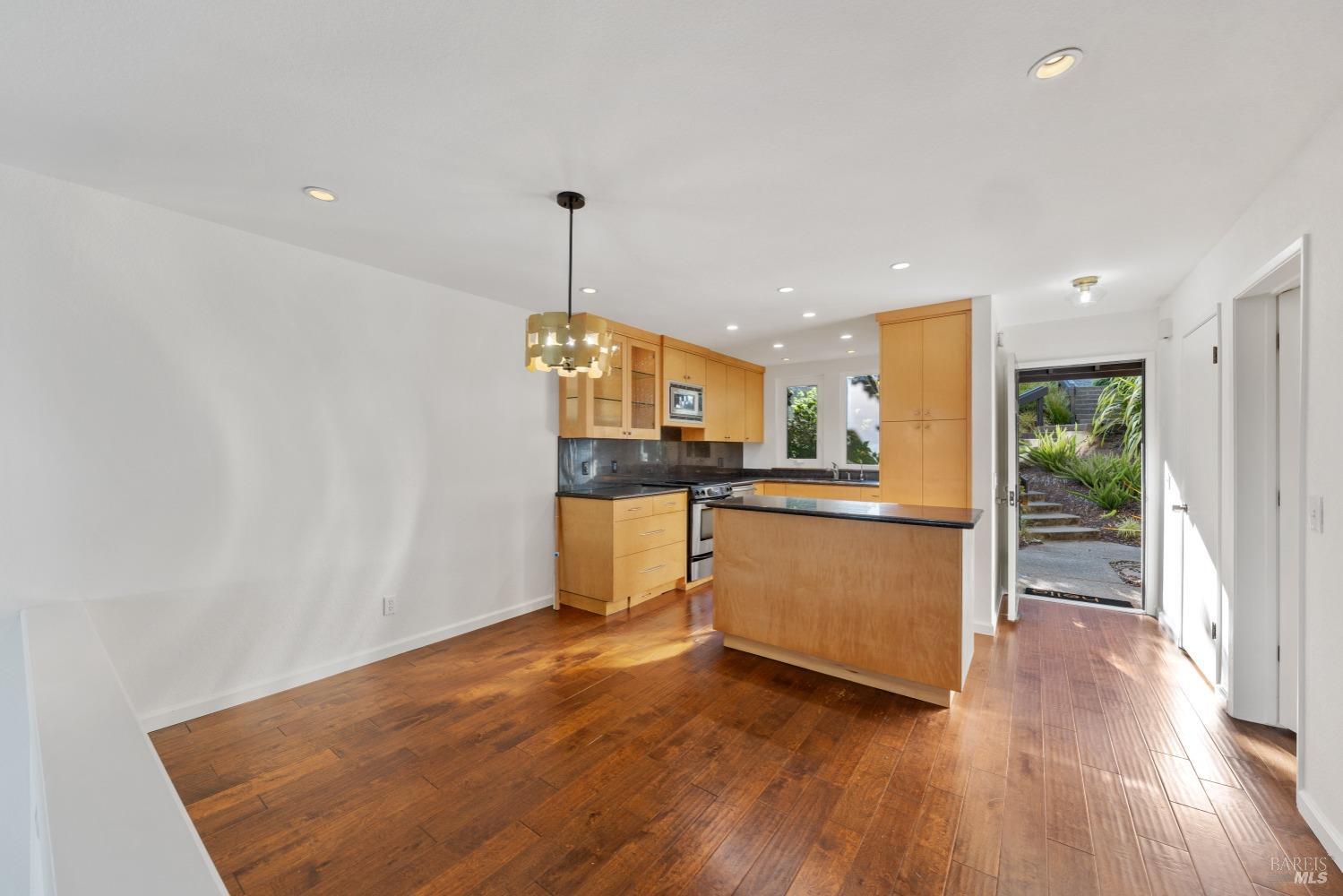 Discover this stylish split-level townhouse (no unit above or below) perched in Sausalito's scenic hills, where sweeping views of the Bay and town meet modern comfort. With two bedrooms, two bathrooms, and a versatile extra room ideal as a third bedroom, home office, or gym this residence offers flexibility for today's lifestyle. Dramatic vaulted ceilings and an open floor plan fill the home with natural light, while a cozy fireplace and double-pane windows frame panoramic vistas. The renovated kitchen is a chef's delight, featuring stainless steel appliances, granite countertops, and a central island perfect for entertaining. Freshly painted interior enhance the crisp, move-in ready appeal. Surrounded by majestic oaks, Japanese maples, and lush greenery, the home creates a tranquil retreat just moments from the Golden Gate National Recreation Area trailhead, with endless hiking opportunities in the Headlands and GGNRA. Commuting is effortless with direct access to Hwy 101 and San Francisco. Additional highlights include a dedicated covered parking space, ample guest parking, and close proximity to vibrant Caledonia Street and downtown Sausalito where harbors, boutiques, and fine dining await. Whether as an investment, rental, or personal retreat, this Sausalito gem offers the best of coastal living!