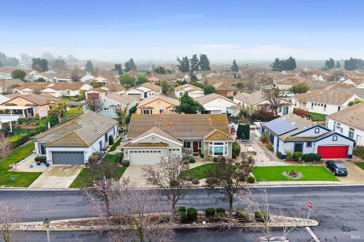 Popular floor plan (the Grand Banks) with 2 bedroom suites, 2.5 baths, and den/office, plus 2-car garage and golf cart garage. New interior paint, new gas range, and family room fireplace complement the lovely features of this delightful home. Well maintained tile and laminate floors throughout, window coverings throughout, and bay windows in the living room, breakfast nook, and primary bedroom, and custom built-in cabinets contribute to the livability of this fine home. Established landscaping front and back as well as covered and uncovered patios add to the enjoyment of the outside of the home. Trilogy offers abundant activities and clubs, and this home is in very close proximity to the Delta Clubhouse, outdoor pool and spa and tennis and pickleball courts, while being a short walk to the Vista Clubhouse with indoor pool and the Health and Wellness Center. This is a fabulous home from which to experience the Trilogy active adult lifestyle!