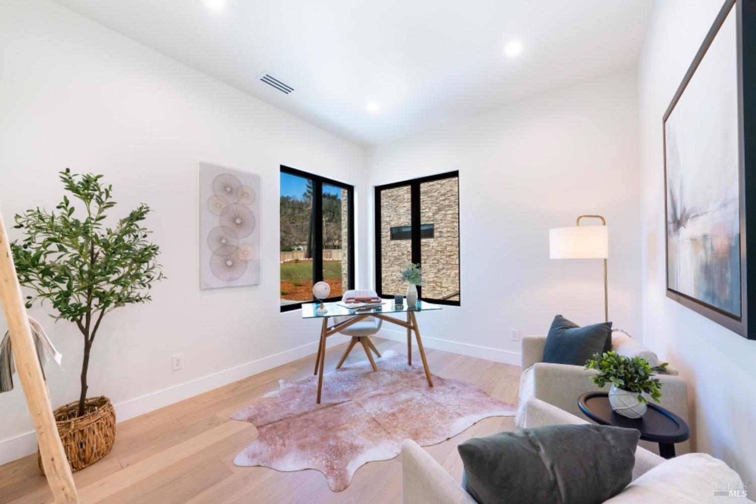 Newly Constructed Kenwood Contemporary Estate in Coveted Sonoma Wine Country. This custom single-level estate in Kenwood blends modern design with the natural beauty of Sonoma Valley. Set on 1.42 acres along desirable Lawndale Road, the 4,302 sq. ft. home offers privacy and luxury just minutes from world-class wineries and restaurants. The open floor plan includes 4 bedrooms, 3.5 baths, an office, and a media room. Expansive windows and 10-ft sliding doors bring in natural light and vineyard views. The chef's kitchen features high-end appliances, custom cabinetry, and a large island ideal for entertaining. Every material and finish has been craftfully chosen designed with both elegance and practicality in mind. Two primary suites offer spa-like bathrooms and stunning outlooks. Additional bedrooms are perfect for guests or flexible use. Designed for indoor-outdoor living, the landscaped grounds include patios and open-air spaces that flow into the surrounding vineyard landscape. Located 10 miles from Sonoma Plaza, 12 from Santa Rosa, and just over an hour to San Francisco, this property offers the perfect blend of wine country seclusion and convenience.