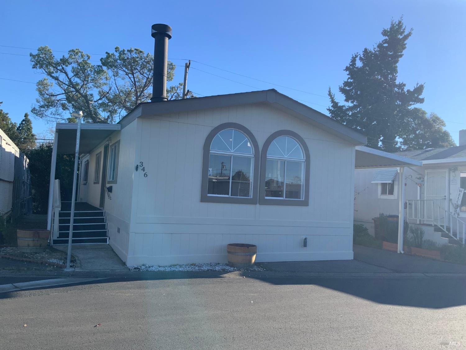 Located in the very popular Rexford Mobile Estates Community, an all age community that offers meticulously maintained grounds and a crisp clear pool to cool off when the Napa Valley temperatures rise. Extensively renovated two-bedroom, two-bath modular home in the Napa Valley. The home is centrally located to everything the beautiful Napa Valley has to offer. Updates include a new roof with replaced sheathing, new skylights, and a freshly painted interior to include all doors and cabinetry. The home features new tile flooring and baseboards throughout, new lighting fixtures, and new interior door hardware. The kitchen offers new tile countertops, new sink, faucet, garbage disposal, hood fan, and new stove, dishwasher, and refrigerator all with stainless finishes. Both bathrooms have been updated with new toilets and new bathroom hardware. Additional improvements include serviced heating and air conditioning, new smoke and carbon monoxide detectors, repaired and painted exterior decks and railings, fresh exterior paint with contrasting trim, pressure-washed exterior surfaces, and miscellaneous repairs completed as needed. Turnkey and move-in ready.Must see !!
