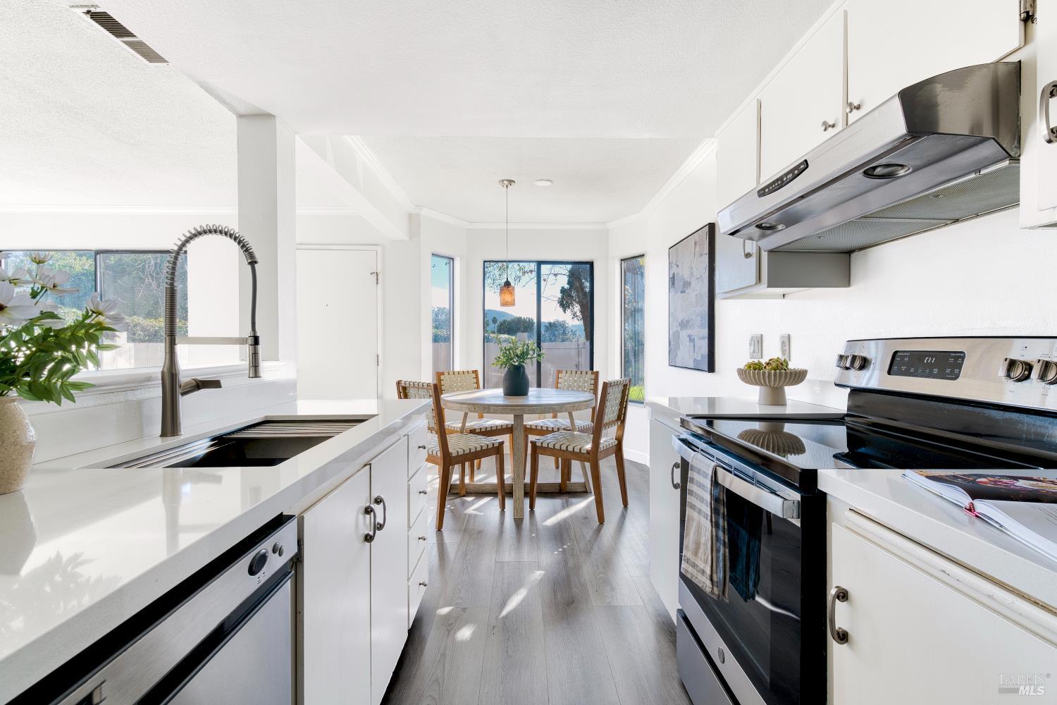 Turnkey townhome in the sought-after Captain's Cove! This charming end unit features a newer furnace and air conditioning, as well as an updated kitchen and bath, making it move-in ready. The kitchen, complete with a breakfast bar, flows seamlessly into the dining area and spacious living room. A convenient laundry closet sits right next to the kitchen. Upstairs, you'll find two generously sized bedrooms and a bathroom. Plus, a private enclosed patio. The home is ideally located in the complex, boasting scenic creek views and proximity to expansive grassy areas. Enjoy the inviting community pool or explore nearby hiking trails. Plus, you're conveniently close to the 101 Freeway, McGinnis Park Golf Center, dining options, and transportation.