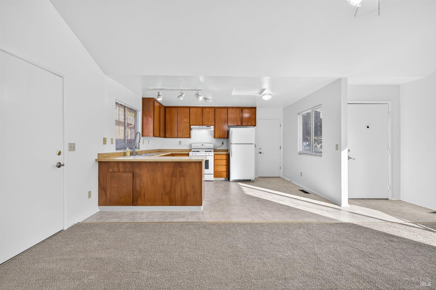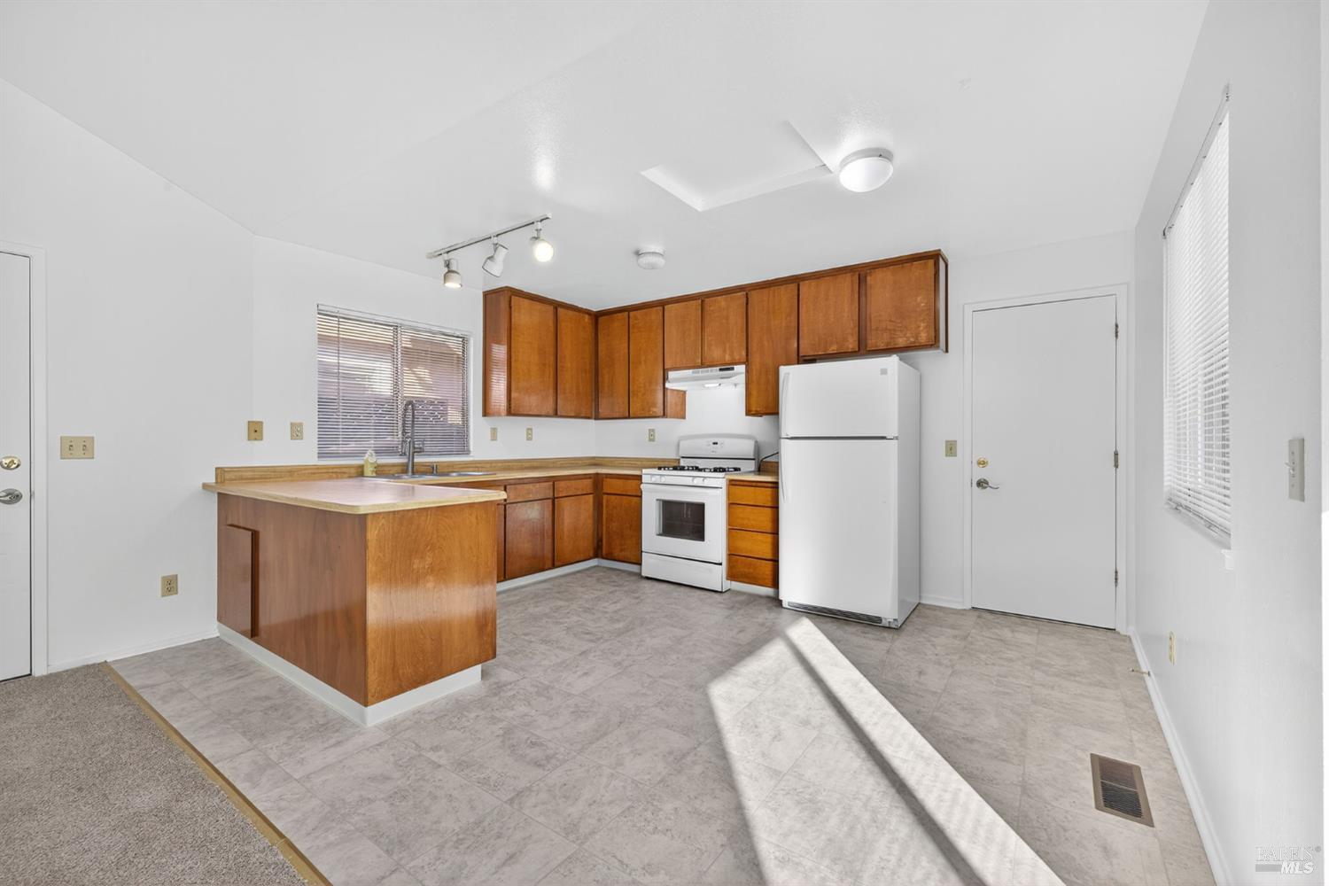 Welcome to 1125 Hendley St. in Santa Rosa! Situated on a corner lot, this freshly painted single-level home features two bedrooms and one bathroom with an inviting open floor plan. The family room and primary bedroom feature cathedral ceilings, creating a bright and spacious feel. Recent updates include a new garage door, new carpet throughout, new flooring in the kitchen and bathroom, fresh interior and exterior paint, and refinished cabinets in the kitchen, bathroom, and primary bedroom vanity. The backyard offers a cozy outdoor space that's easy to maintain, perfect for relaxing or an outdoor retreat. Conveniently located near shopping, restaurants, and with easy freeway access, don't miss this charming home!
