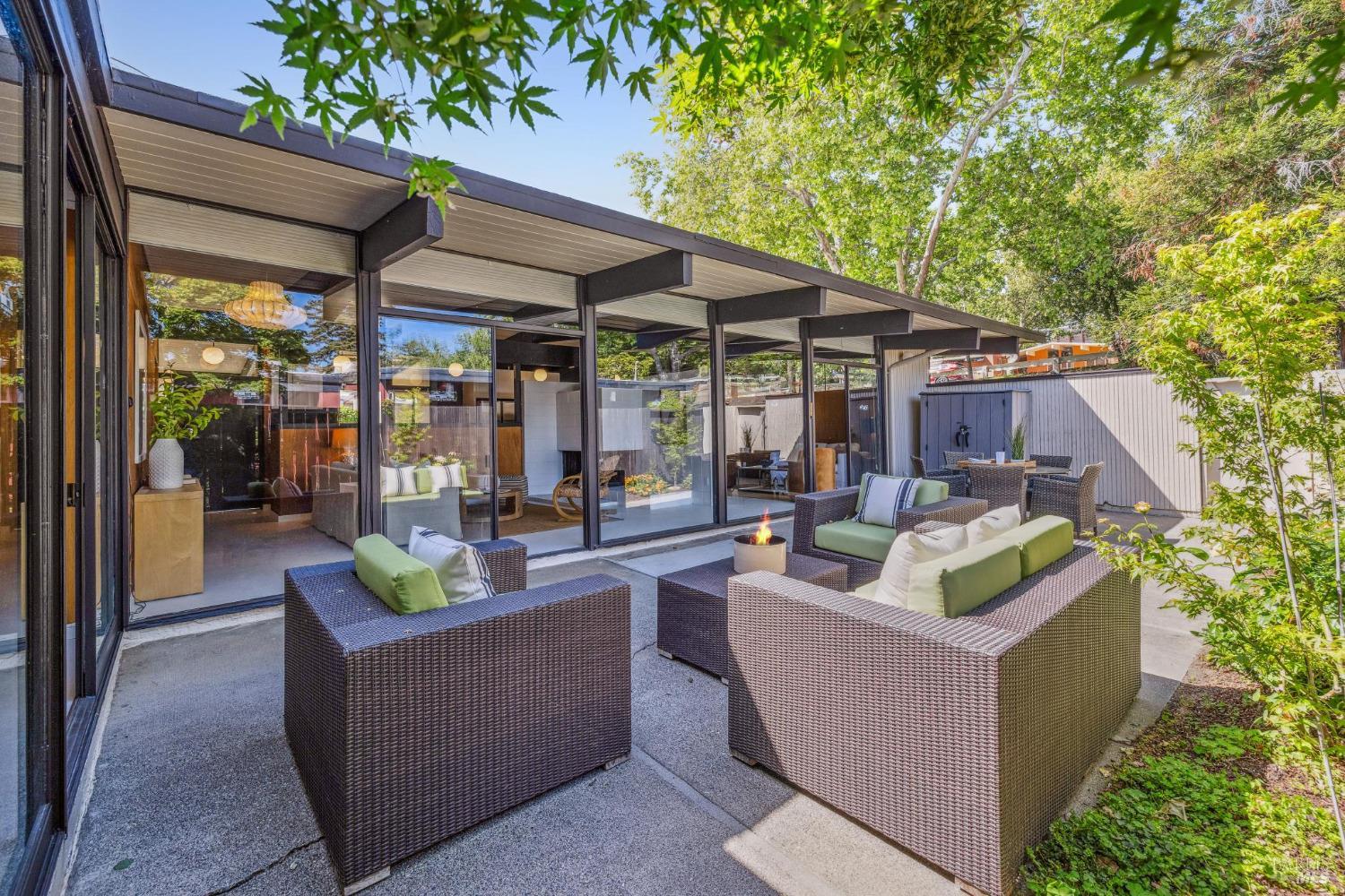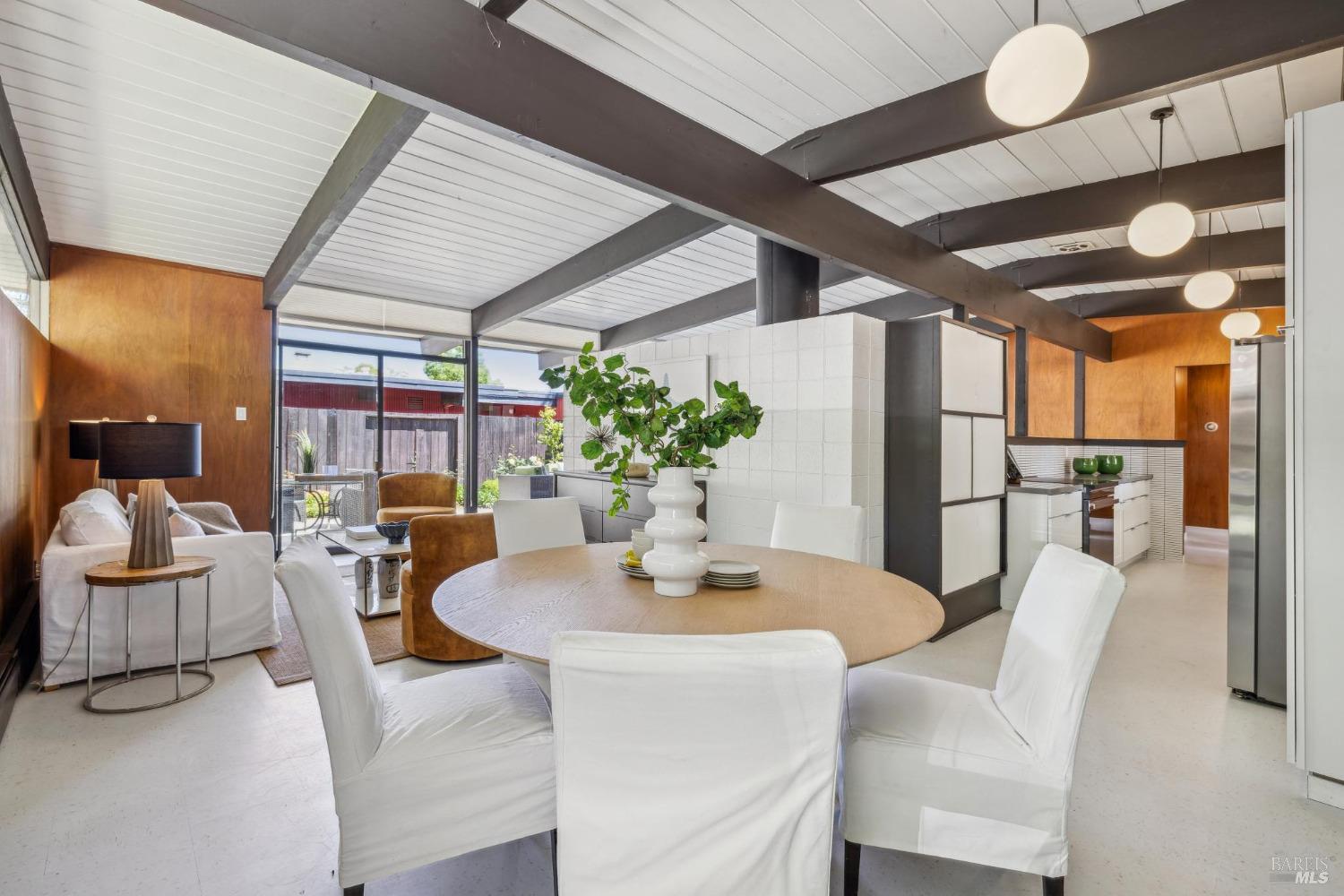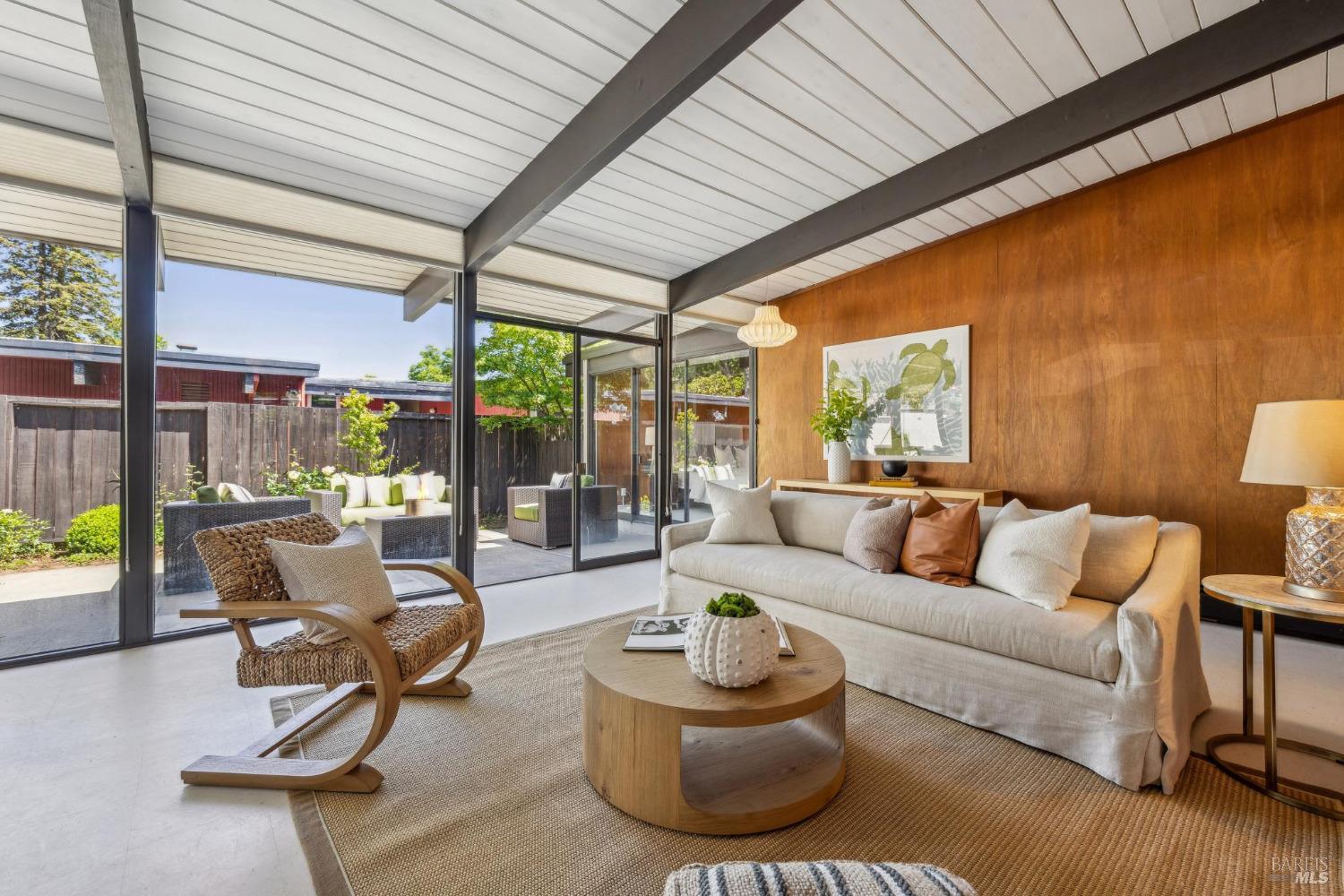 Ultra hip MCM Eichler home in amazing condition. This remodeled original Eichler has also been updated with a new kitchen, a new hall bathroom, and an updated primary bathroom, new flooring throughout, a foam roof,and a yard that could not be any more picture perfect and overwhelmingly magical with loads of fruit trees, fairy gardens, colorful flowers, a vegetable garden and a covered pergola for summer dining and taking in the expansive views. Many original details that Eichler homes are so well known for are still intact including the mahogany walls, floor to ceiling windows, globe ceiling lights, updated VCT tile flooring to hearken the original Eichler flooring vibes from 1955. This is a very special home and is ready to move right into and an absolute stunner. Just blocks from schools, shopping, dining, groceries, parks, hiking, and many other local amenities.
