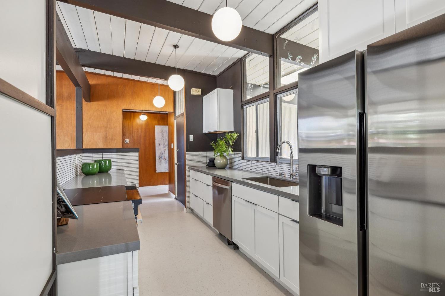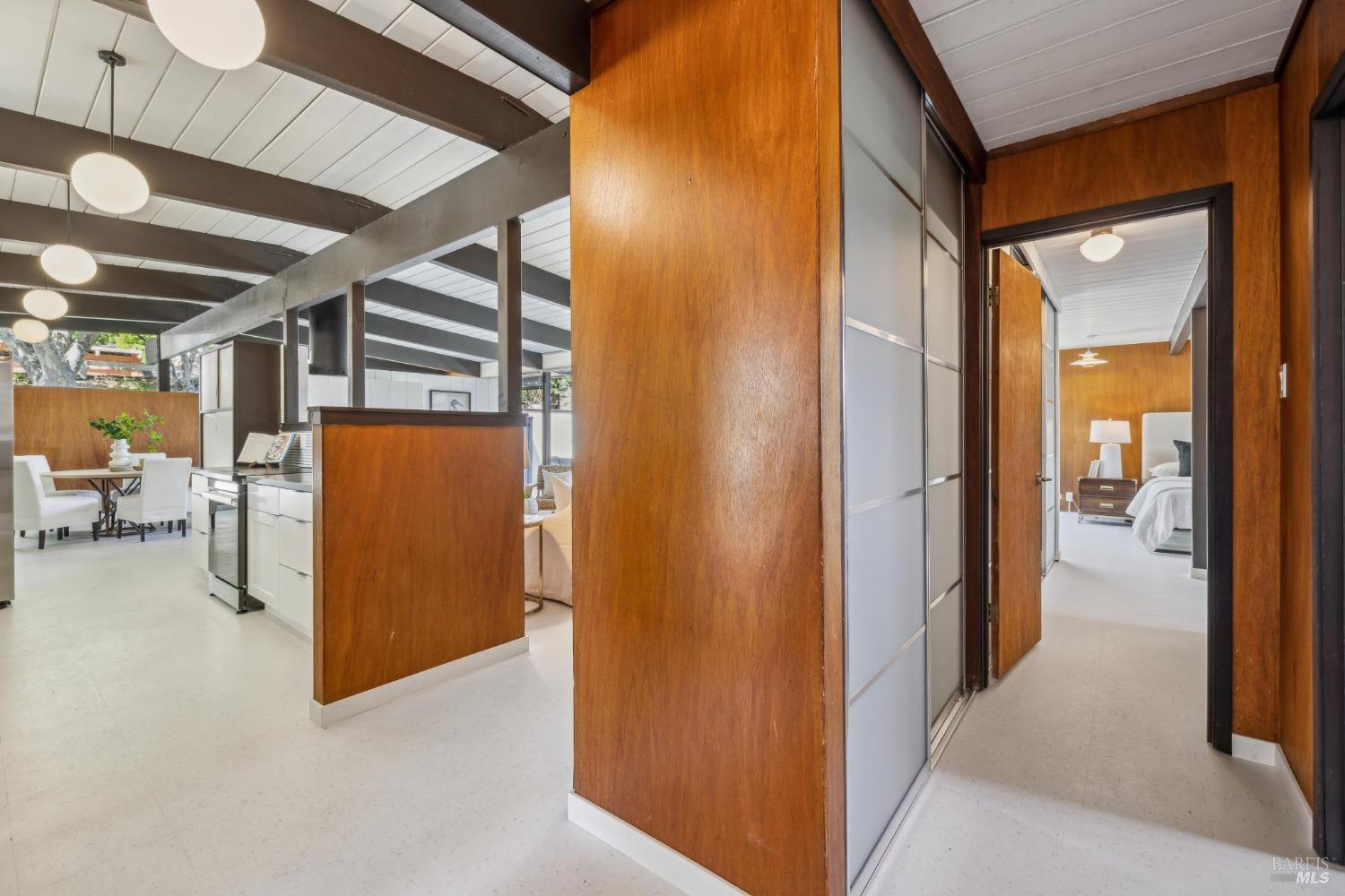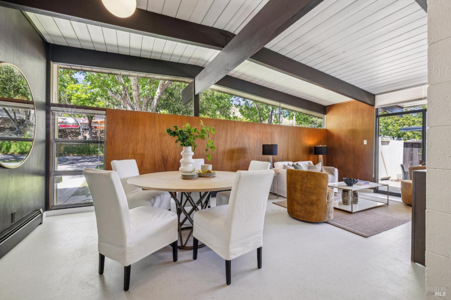 Ultra hip MCM Eichler home in amazing condition. This remodeled original Eichler has also been updated with a new kitchen, a new hall bathroom, and an updated primary bathroom, new flooring throughout, a foam roof,and a yard that could not be any more picture perfect and overwhelmingly magical with loads of fruit trees, fairy gardens, colorful flowers, a vegetable garden and a covered pergola for summer dining and taking in the expansive views. Many original details that Eichler homes are so well known for are still intact including the mahogany walls, floor to ceiling windows, globe ceiling lights, updated VCT tile flooring to hearken the original Eichler flooring vibes from 1955. This is a very special home and is ready to move right into and an absolute stunner. Just blocks from schools, shopping, dining, groceries, parks, hiking, and many other local amenities.