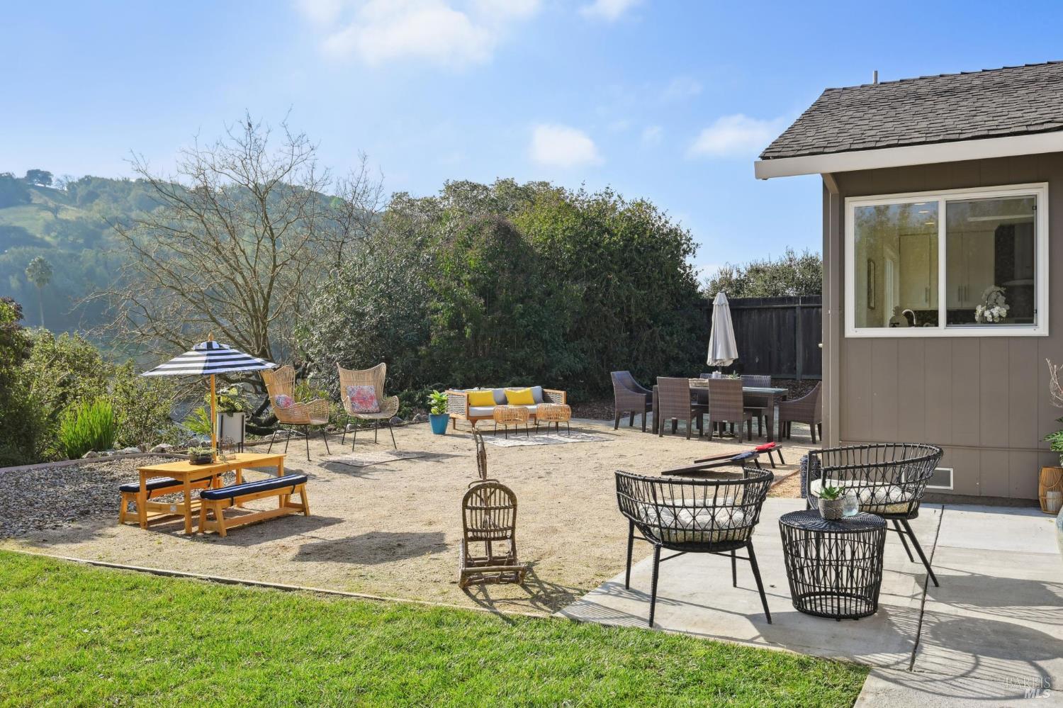 Welcome to 159 Michele Circle in Novato's beloved Pleasant Valley neighborhood. This special property is a true gem in an ideal setting, nestled on a quiet street with a backdrop of Marin's rolling hillside. Generous living space on an expansive flat lot makes this home a standout in one of Marin's most treasured enclaves. Inside, a grand entryway with high ceilings opens to a bright living room with hardwood floors and cozy fireplace. A dedicated dining area leads to a sunny, updated kitchen and family room/den with sliding doors to the dream backyard. The main level also conveniently offers a bedroom and full bath as well as access to the large 2-car garage. Upstairs is the primary en-suite perfectly positioned to capture hillside vistas, along with two additional bedrooms and full bath. Outside the sun-drenched yard is an entertainer's paradise featuring level lawn and patio with Marin's picturesque hillside landscapes on full display. Enjoy privacy and proximity to local parks and hiking/biking trails, yet just a short distance to nearby amenities. Homes like these rarely come to market, don't miss this opportunity to call 159 Michele Circle your own.
