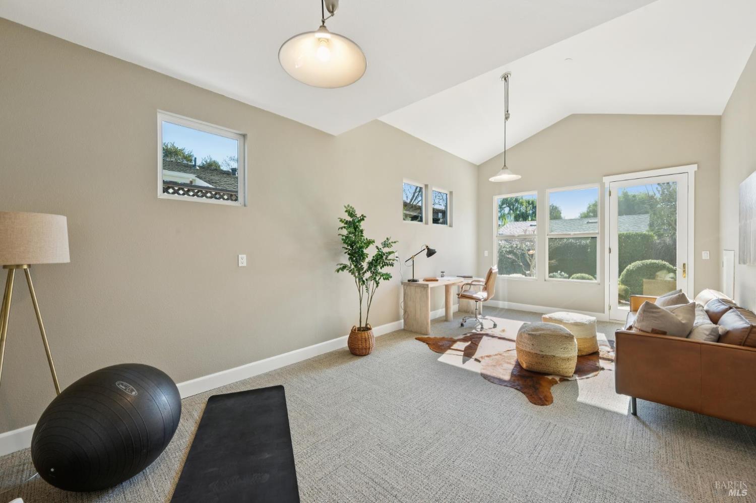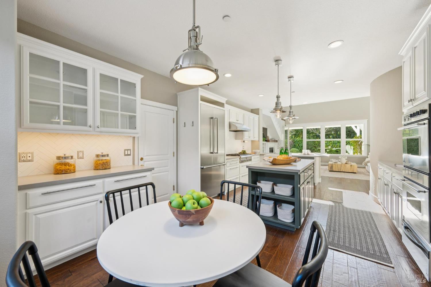 In close proximity to the Sonoma Plaza, shopping, and dining, this beautifully updated home offers modern comfort and convenience. With approximately 3,661 sq ft, it features an updated chef's kitchen with a large island, stone countertops, ample storage, generous prep space, and abundant natural light. The main level includes a spacious living room, family room, dining room, and a primary suite with walk-in closet, yard access, and en suite bath with dual sinks and separate shower and soaking tub. A flexible room (unconditioned) with exterior access is ideal for an office or gym. Enjoy seamless indoor-outdoor flow to a fenced, pet-friendly yard with gas fire pit, raised beds, and irrigated landscaping. Upstairs, two bedrooms each feature their own bathroom, and a den offers options for a 4th bedroom, studio, or versatile space that can be tailored to your needs. Additional highlights include luxurious wood floors, laundry room, two-car garage, new exterior lighting, and Section 1 clearance. Enjoy a prime location within a block of a neighborhood park and just a short distance from the Sonoma Plaza, perfect for experiencing the best of Wine Country living.