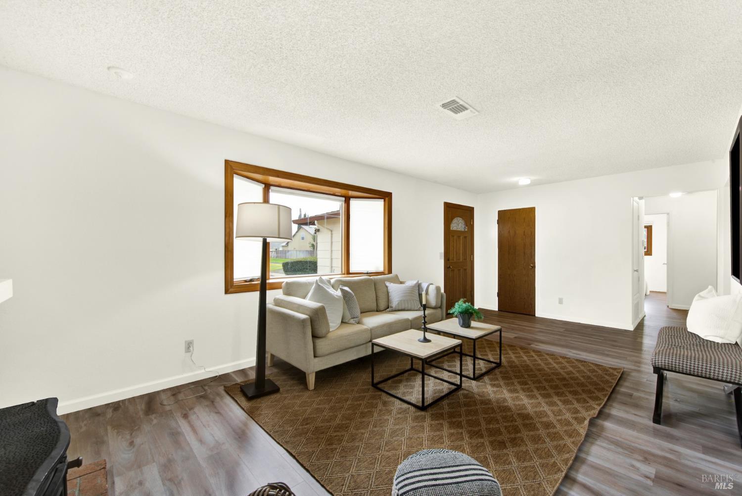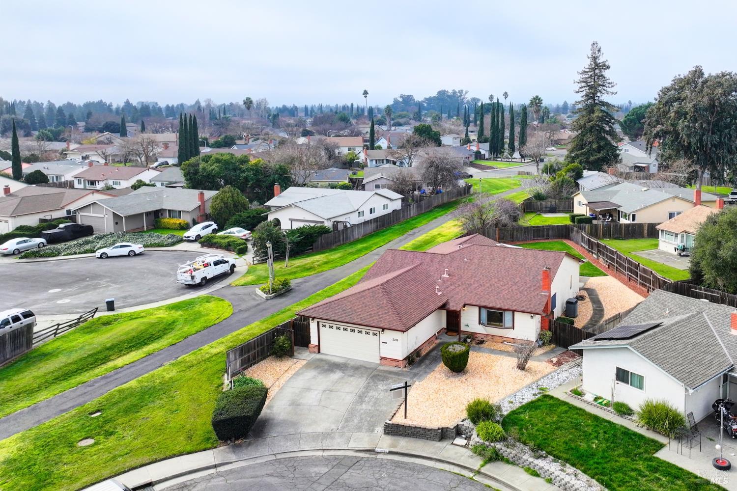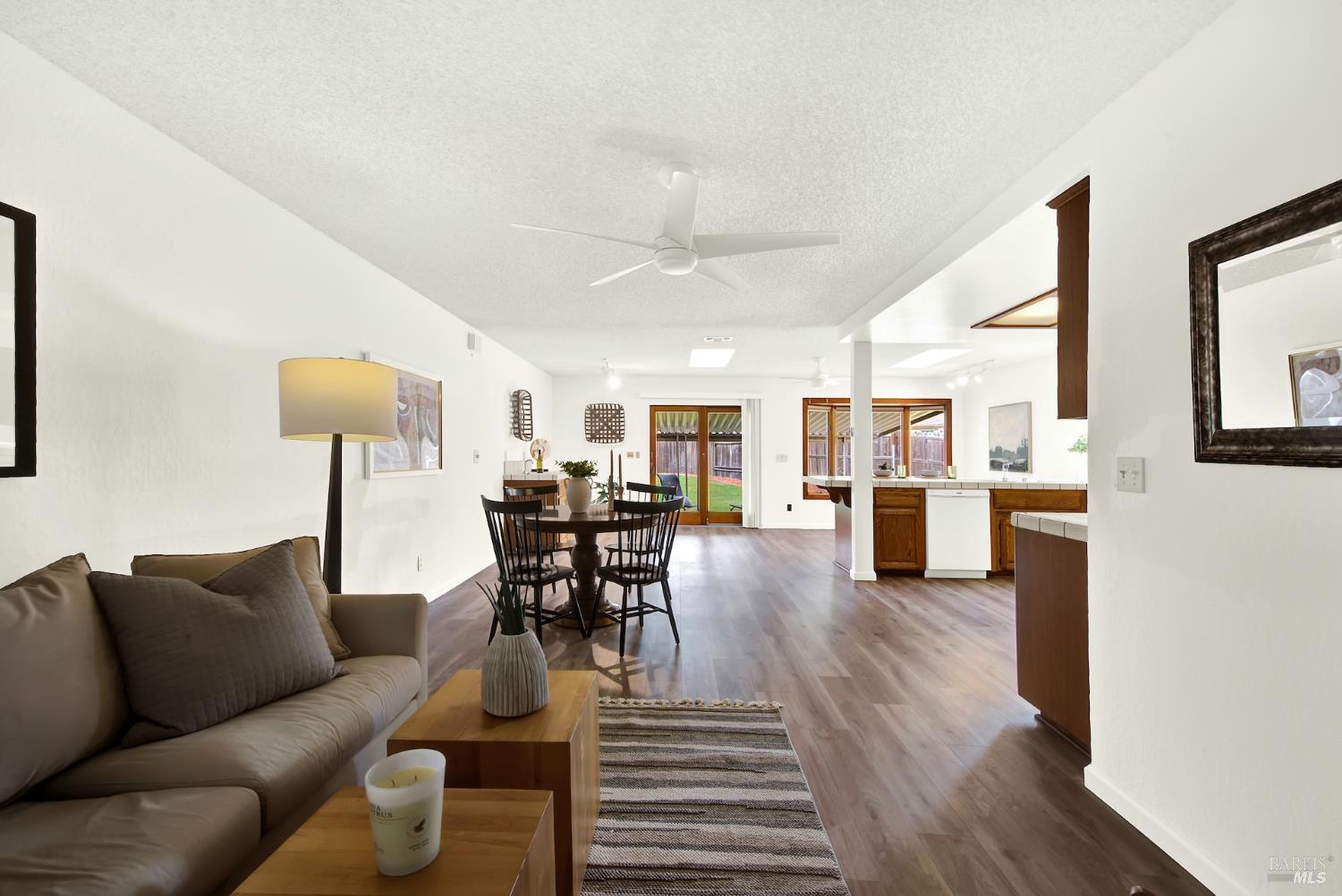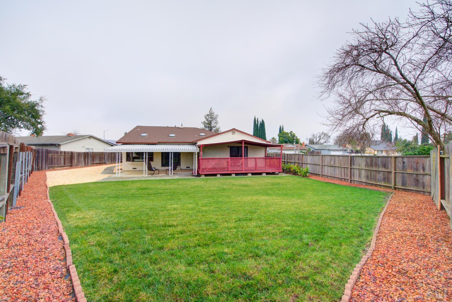 Welcome to 2219 Channing Court, a beautifully maintained single-story home tucked away in a private court location in Fairfield. This spacious 4-bedroom, 2-bath residence offers 2,039 square feet of comfortable living with updated flooring and pride of ownership throughout. Step inside to a welcoming front living room featuring a cozy fireplace, perfect for relaxing evenings. A separate dining area provides an ideal space for gatherings and special meals. The open kitchen flows seamlessly into a large family or eating area, making it perfect for everyday living and entertaining, complete with a convenient bar area on the side. The primary bedroom is impressively spacious, easily accommodating a full bedroom set plus a sitting or couch area, and features two closets for ample storage. Additional highlights include an indoor laundry room and a two-car garage for added convenience. The backyard is generously sized and designed for entertaining, offering covered patio areas in both the rear and side yard, ideal for outdoor dining and gatherings. Located near a park and set in a quiet court, this well-designed single-story home offers space, comfort, and convenience. Come see it today!