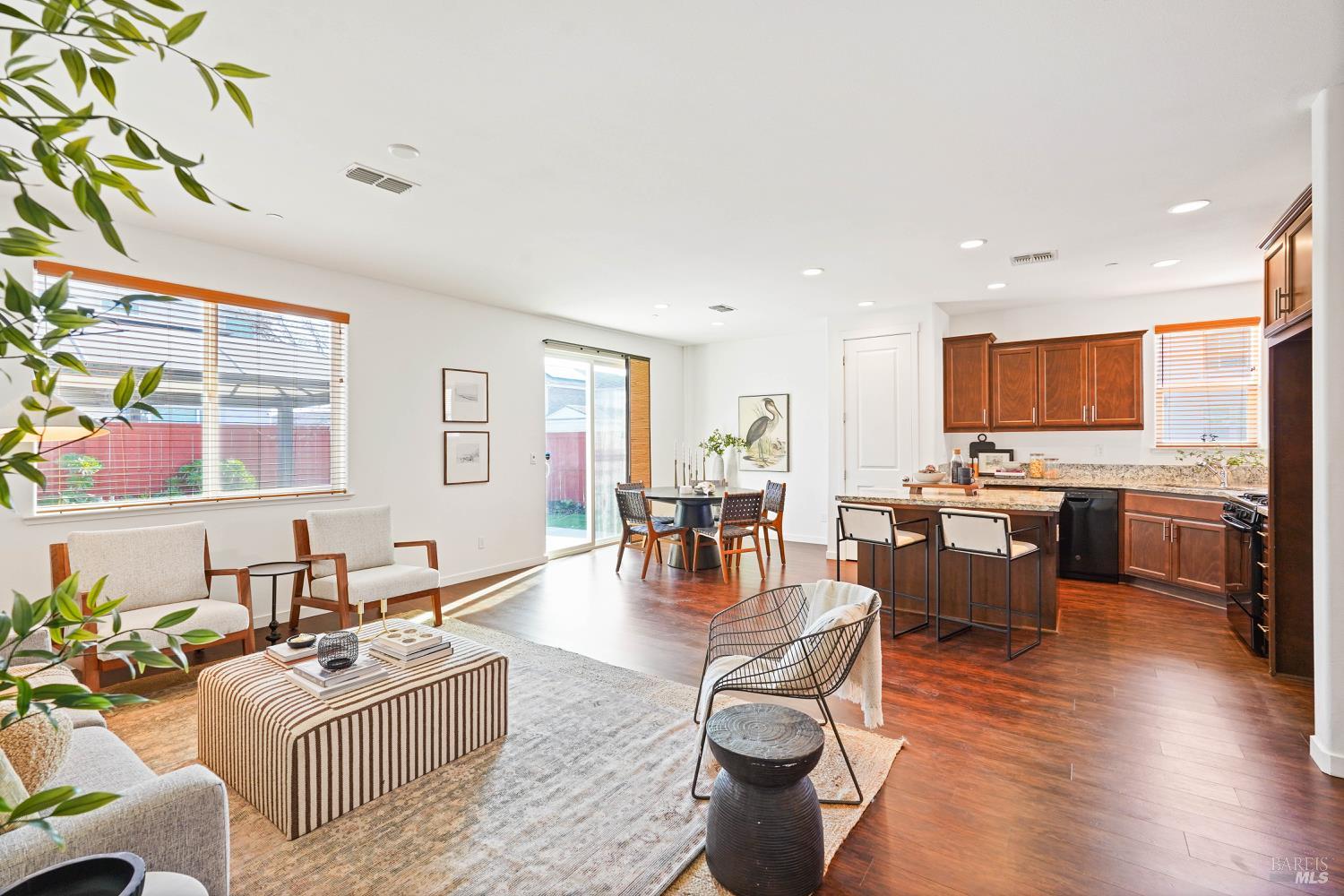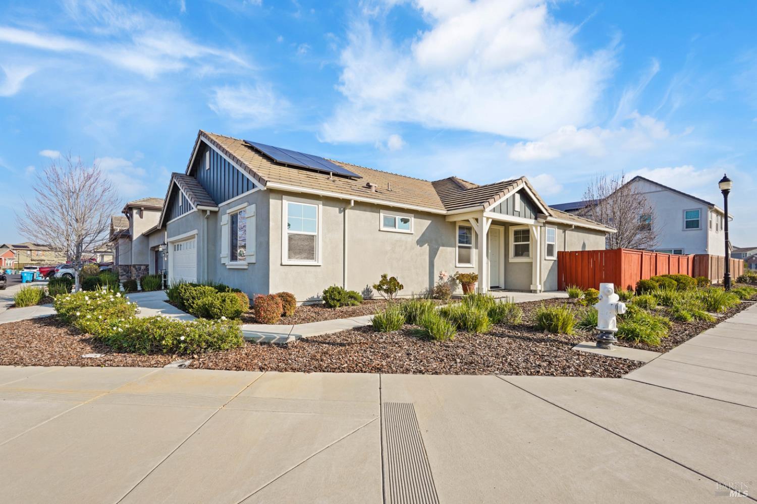 This home offers flexibility right from the start, with a dedicated room that easily works as a fourth bedroom or a home office. The open layout keeps daily life connected, with the kitchen serving as a natural gathering space around a granite island and clean, modern cabinetry. High ceilings and natural light create an easy, airy feel throughout. Step outside to a manicured backyard with a large pergola, ideal for relaxed evenings and unhurried weekends. Set on a true corner lot with owned solar, and just minutes from downtown Dixon for locally owned shopping and dining, all while staying under a 30-minute drive to Travis AFB or Sacramento.