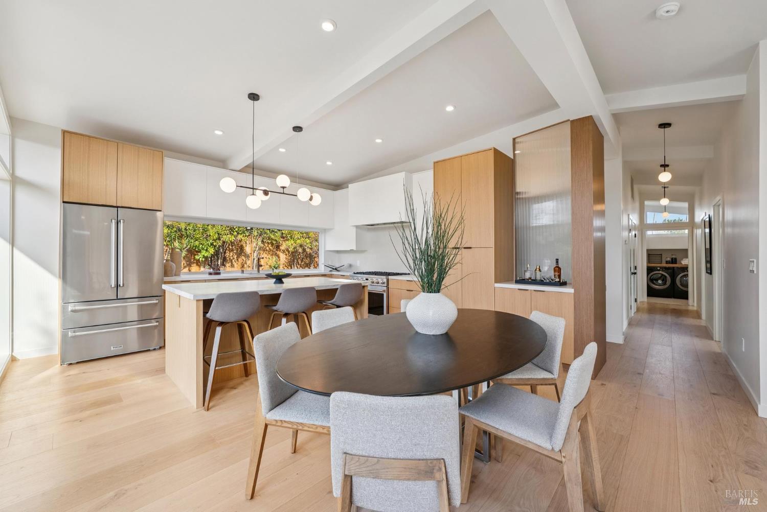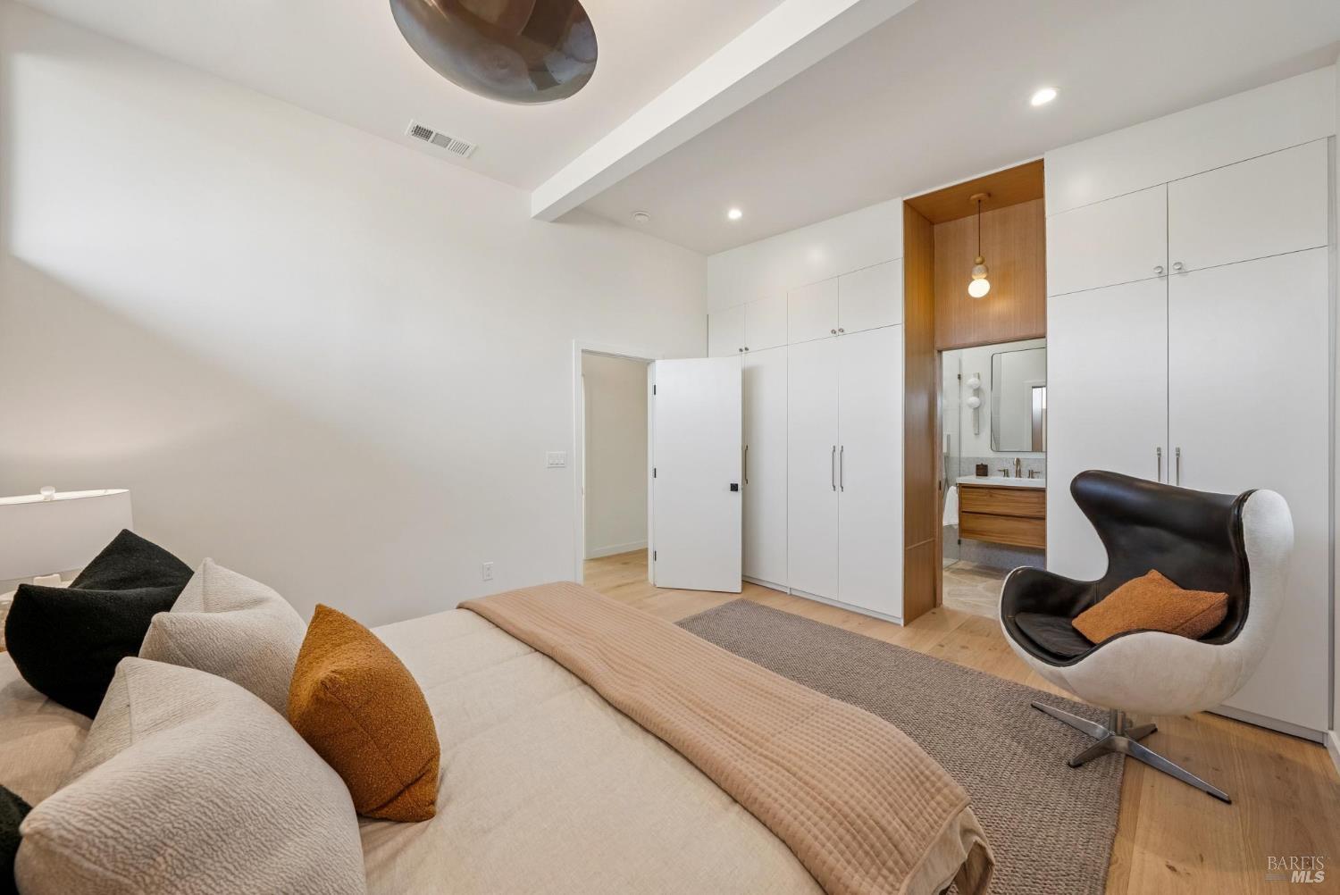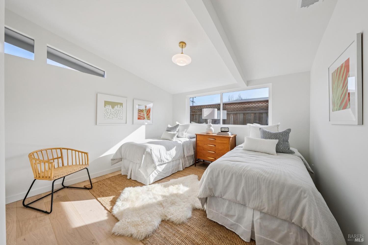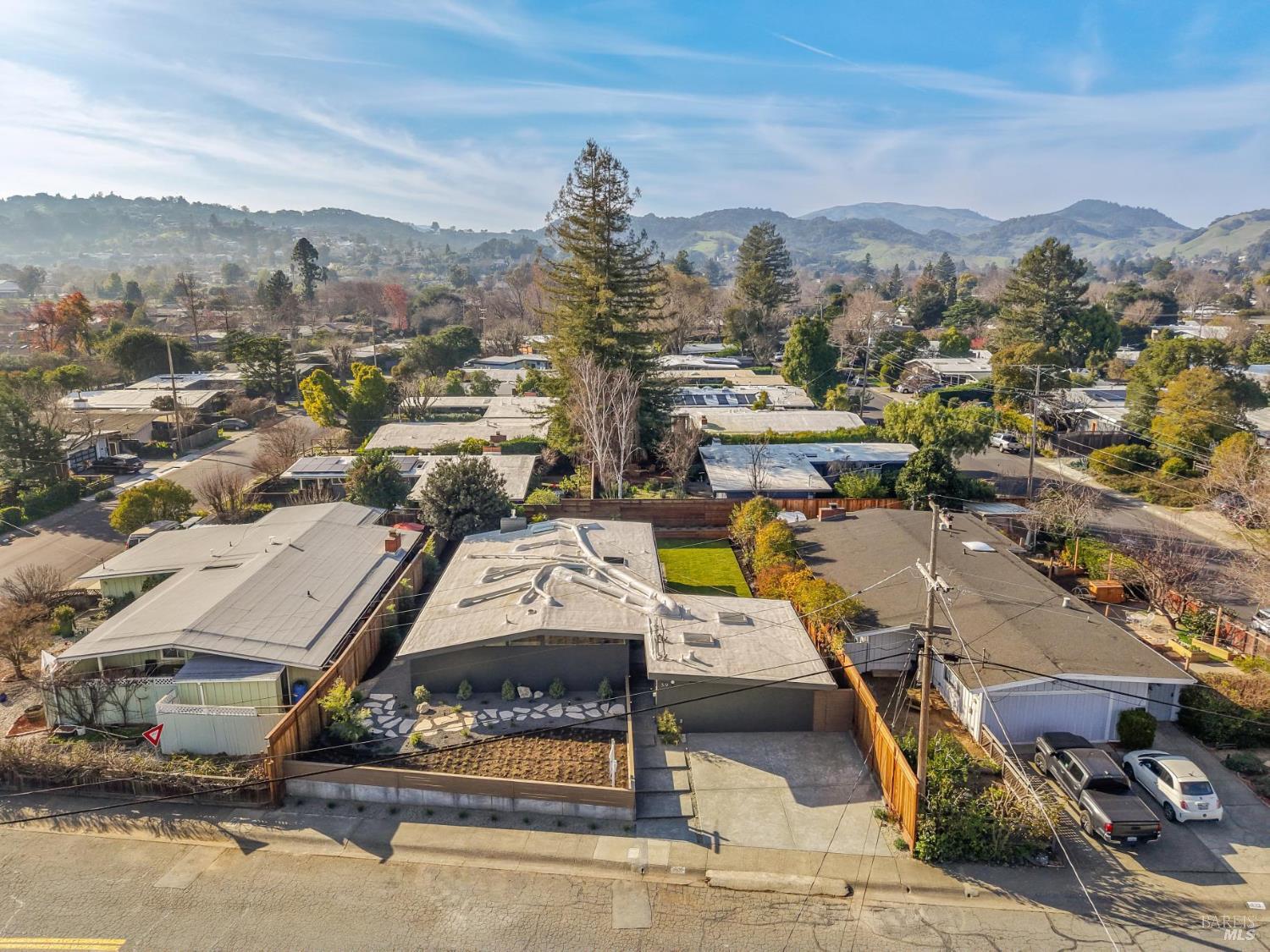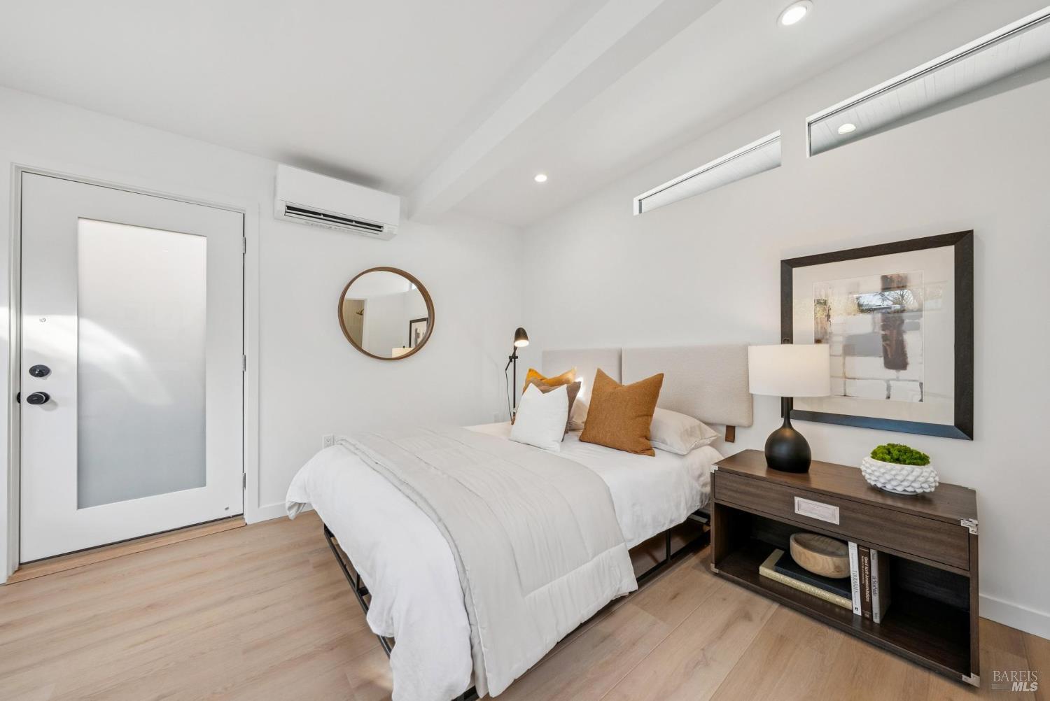 Meticulously remodeled Alliance-built home + spectacular ADU! The 1468 sqft main home has 4 beds + 2 baths w/ highly coveted upgrades such as custom light fixtures, added storage, a full service laundry room & central HVAC system. Soaring ceilings & strategically placed skylights throughout the home bathe the interior in natural light enhancing the sense of volume & architectural clarity. The living room showcases a sleek gas fireplace w/ custom floating quartzite bench creating a striking focal point & warm atmosphere. The spacious kitchen is anchored by a Dolomite marble-topped island & encompassed by contemporary white oak cabinetry, Caesarstone counters & a stunning fluted hood over the THOR gas range. Subtle luxuries including a dedicated coffee nook, integrated charging drawer, pop-up outlets & handcrafted tile backsplash that add a level of refinement to everyday living. These spaces are seamlessly connected by the vast wall of glass creating the iconic indoor/outdoor environment that this architecture is rooted in. The magazine-worthy bathrooms create a spa-like sensibility that are sure to win you over. The primary en-suite encompasses you w/ soothing textures such as the floor-to-ceiling tile work, an expansive curbless walk-in showers w/ travertine flooring & ample counter space above the floating teak double vanity, while the hall bath boats Moroccan limestone floors & Carrara marble vanity top. The fully upgraded 388 sqft ADU w/ studio style living + full modern bath echoes the sophistication of the main house featuring a sleek kitchen, all new appliances & new mini-split system creating the perfect space for an au pair, in-laws or a rental opportunity. The new fencing, foam roof & freshly poured concrete establish long-term function, while lush landscaping softens the exterior. From the verdant lawn to the mature orange tree, every exterior space of this home is as refined as it is relaxed. Centrally located in Terra Linda, this home offers a peaceful neighborhood setting w/ easy access to Highway 101, local shops & dining. Anyone seeking an intentionally designed move-in-ready home needs to look no further than 319 Holly Dr.