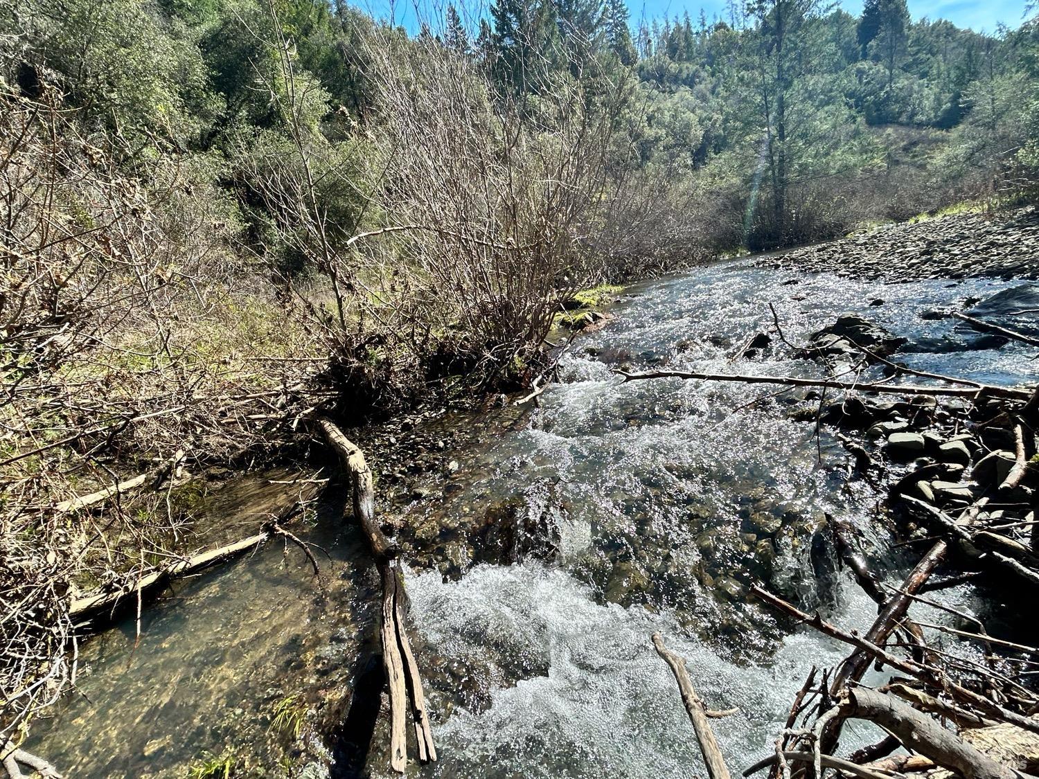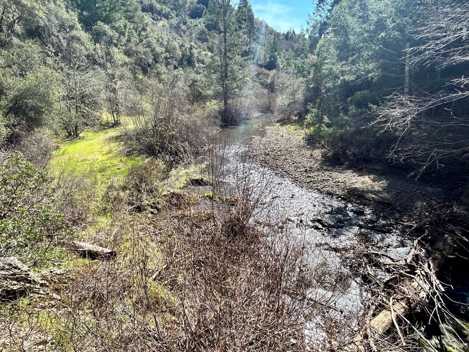40 acres with creeks on each side and a sunny ridge in the middle. You will need a 4x4 with good clearance to access this property, but the beauty and seclusion are well worth the 30-40 minute drive east from Willits or north from Redwood Valley. The road climbs the sunny ridge through the middle of the property to multiple potential building sites. The property drops down to Tomki Creek on one side and the smaller Long Branch Creek on the other side. This perfect get-away property feels rugged and remote, yet is not that far from Willits, Redwood Valley, and Hwy 101. Enjoy the forest and canyon views from the ridge, or wander down for a cool dip and enjoy the breathtaking beauty of Tomki Creek as it makes its way toward the Eel River.