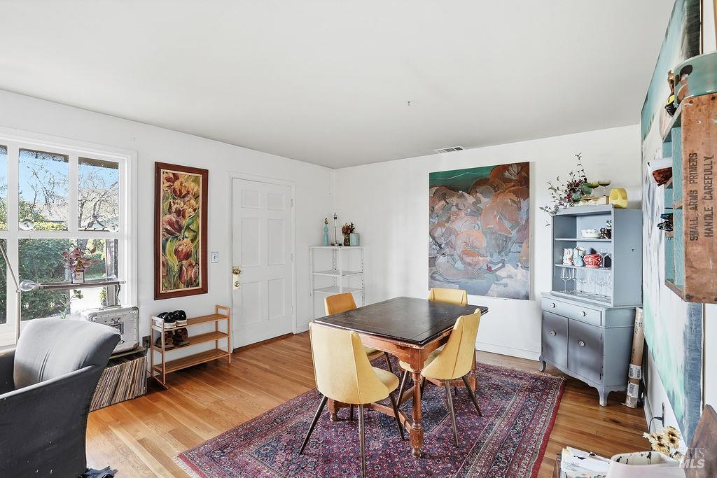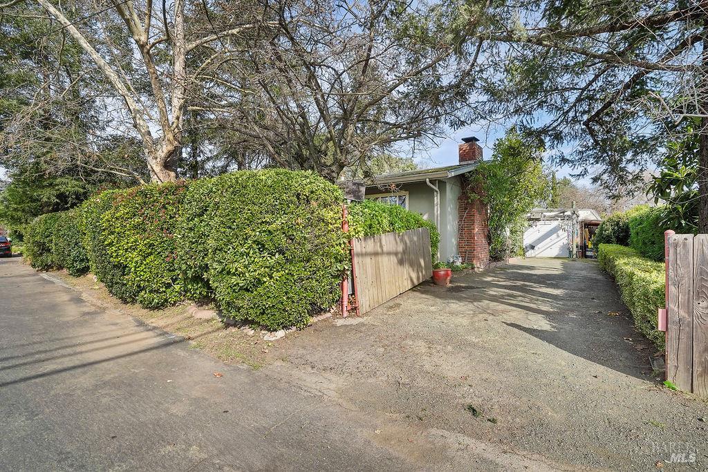 Charming Napa Valley retreat with flexibility, potential, and location. Situated on a corner lot with abundant privacy provided by mature trees and lush bushes, this home is just minutes from the heart of downtown St. Helena. Featuring hardwood floors and an inviting interior that exudes warmth and character, the home is well-maintained while offering opportunities to personalize and enhance according to your vision. The bright, sun-filled kitchen offers a functional layout currently equipped with all essential appliances, including a wine refrigerator. A cozy corner by the window provides the perfect spot for morning coffee or a quick breakfast, while the space as a whole presents an excellent opportunity to bring your personal vision to life through updates and finishes. The side door in the kitchen opens to a covered patio, extending the entertaining space outdoors, perfect for alfresco dining or relaxed Napa Valley evenings. The expansive backyard provides a transformable canvas for a garden, reimagined landscaping, or creating an enhanced outdoor living area. The detached garage includes over 400 square feet of additional space, providing flexibility for a private office, studio, fitness room, or refined storage solution. Whether you're seeking a primary residence, weekend wine country getaway, or investment opportunity, this property delivers endless possibilities. Enjoy easy access to wineries, boutiques, galleries, and restaurants that define the Napa Valley lifestyle.