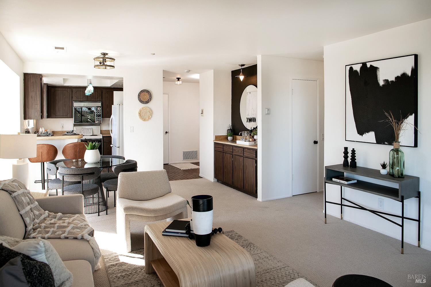 Stunning View Two Bed, Two Bath Condo in Prime Novato Location! Live the Novato lifestyle in this top-floor corner unit with no shared walls and no immediate neighbors, peace, privacy, and views included! Located near the Vintage Shopping Center with quick freeway access for an easy commute, this condo checks all the boxes. Freshly painted with newly installed carpeting, tasteful updates, and an extra storage unit, it's truly move-in ready. Large, sunny primary bedroom with walk-in closet and primary bath. Updated hallway bath and bright 2nd bedroom. One car reserved carport parking plus plenty of guest parking. Enjoy elevator access, a private deck ideal for sunrises and sunsets, and expansive views. The HOA delivers resort-style living with a pool, hot tub, and tennis courts. Location, lifestyle, and low-maintenance living all in one incredible package!