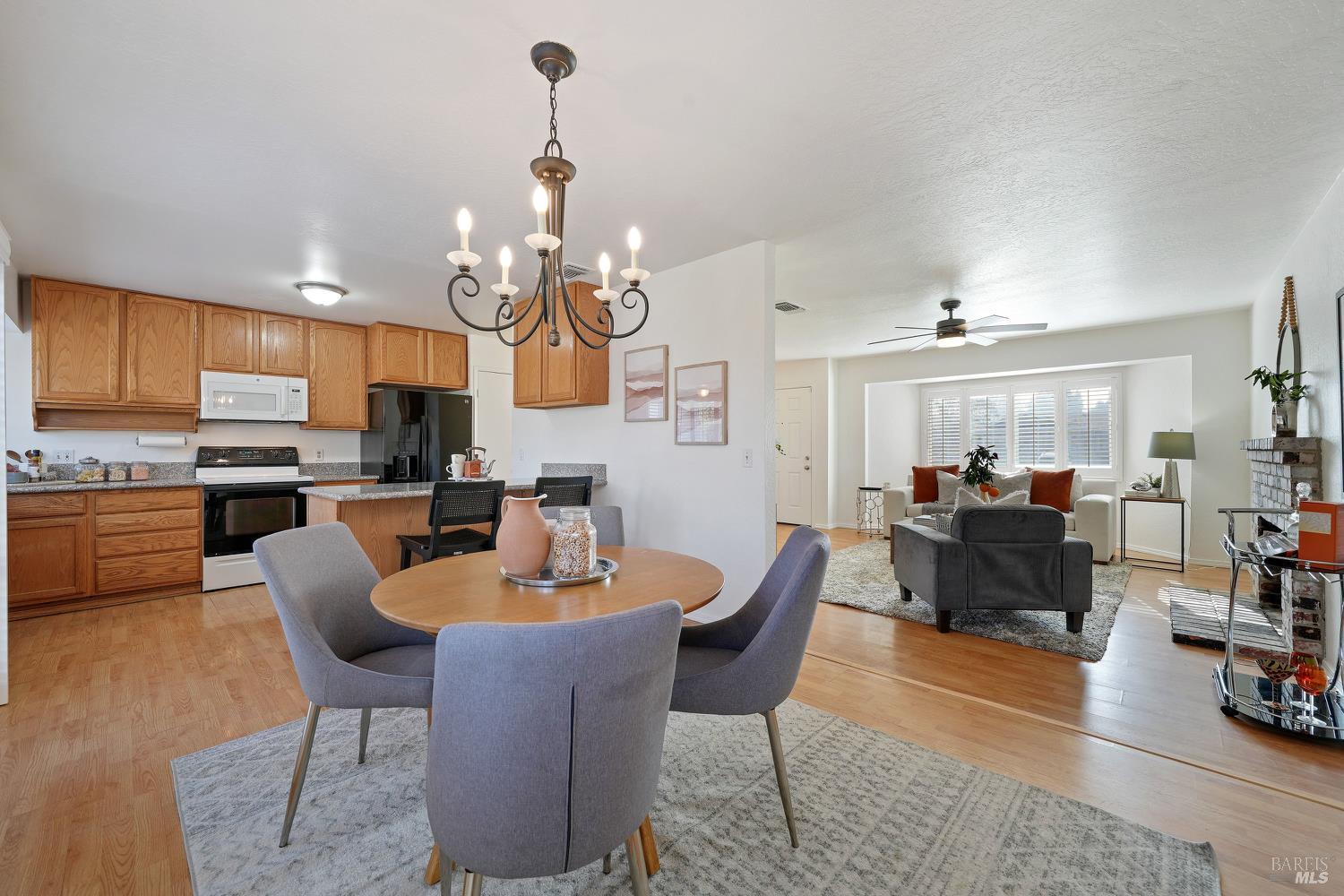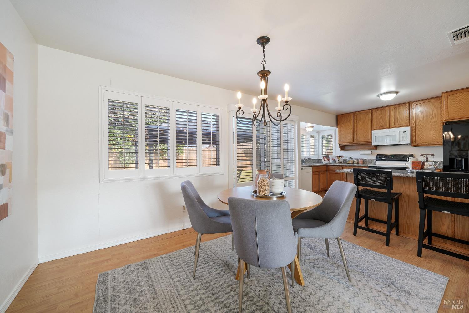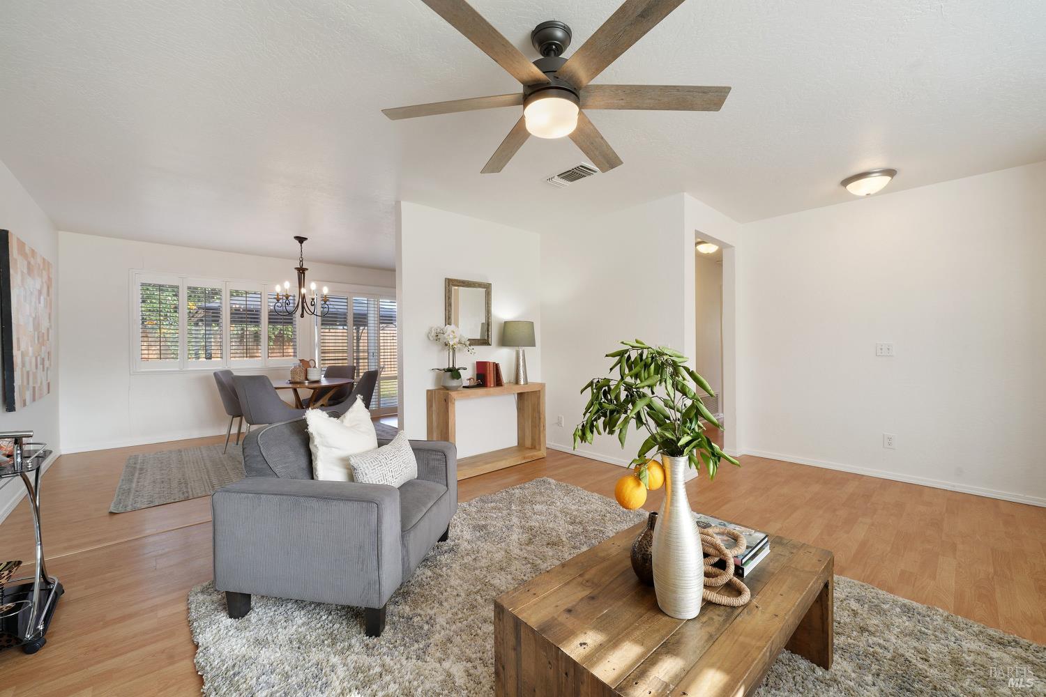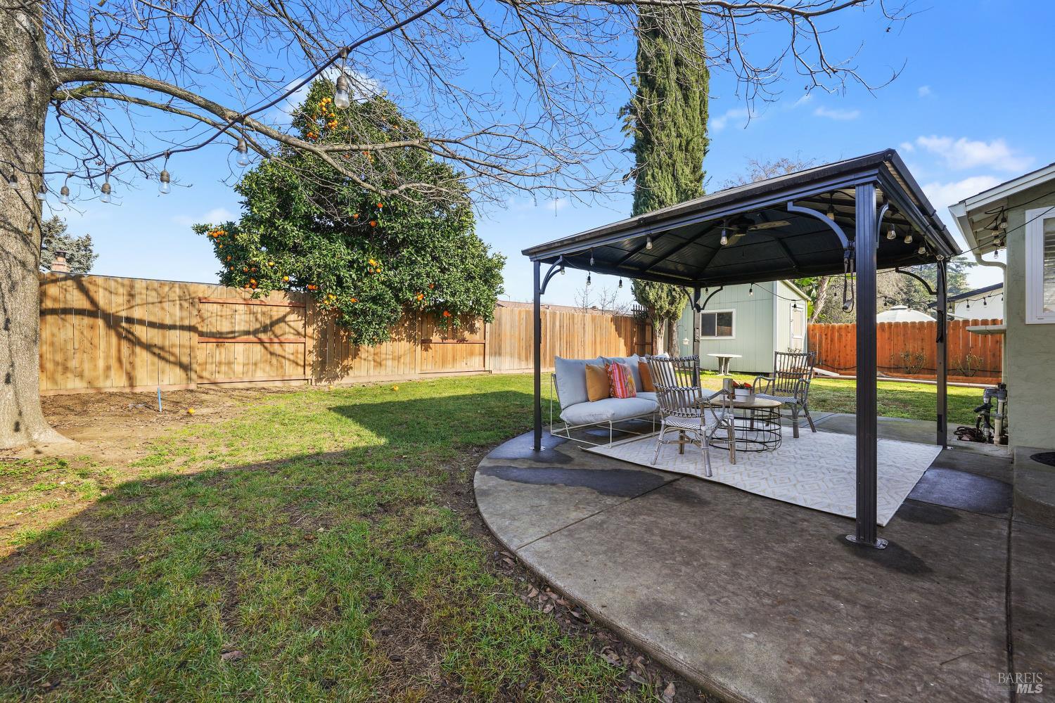Welcome to 950 Woodvale Drive, a thoughtfully updated home offering comfort, functionality, and easy living in the heart of Dixon. Step inside to a freshly painted interior filled with natural light, enhanced by dual-pane windows and classic plantation shutters. The open living space features a cozy fireplace, ceiling fan with light, and seamless flow into the dining areaperfect for everyday living and entertaining. The dining room opens through a sliding glass door to the backyard patio, where a charming gazebo creates an ideal setting for outdoor dining or relaxing evenings. An exterior shed adds valuable storage or provides an excellent opportunity for a workshop or hobby space. The kitchen is open to the dining room and enjoys views of the backyard. Kitchen features include granite counter-tops, an island with bar-stool seating, and a layout designed for both function and connection. The hall bathroom includes a convenient step-in shower with a built-in seat, while the primary ensuite bath offers a spa-style soaking tub with shower overhead. The generous primary bedroom provides space for a seating areaperfect for enjoying morning light with your favorite book. Additional highlights include a finished, sheetrocked garage with ample room for side-by-side two-car parking, an oversized driveway with potential RV parking, and owned solar for energy efficiency and long-term savings. Conveniently located near schools, shopping, and Highway 80, this home offers the ideal blend of comfort, practicality, and locationtruly a wonderful place to call home.