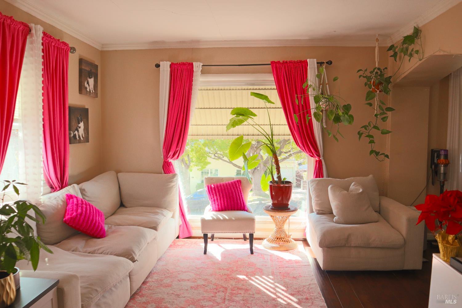 Charming East Vallejo gem! This 1,150 sq ft home offers a versatile room and stylish upgrades throughout, including a remodeled kitchen and bath, new floors, double-pane windows, crown molding, and interior window trim. Functional perks include indoor laundry, an updated roof, attic and basement storage, and a spacious backyard with irrigation and mature landscaping. Finished with an updated concrete driveway, walkway, front steps, a storage shed, and quick freeway accessthis home checks all the boxes.