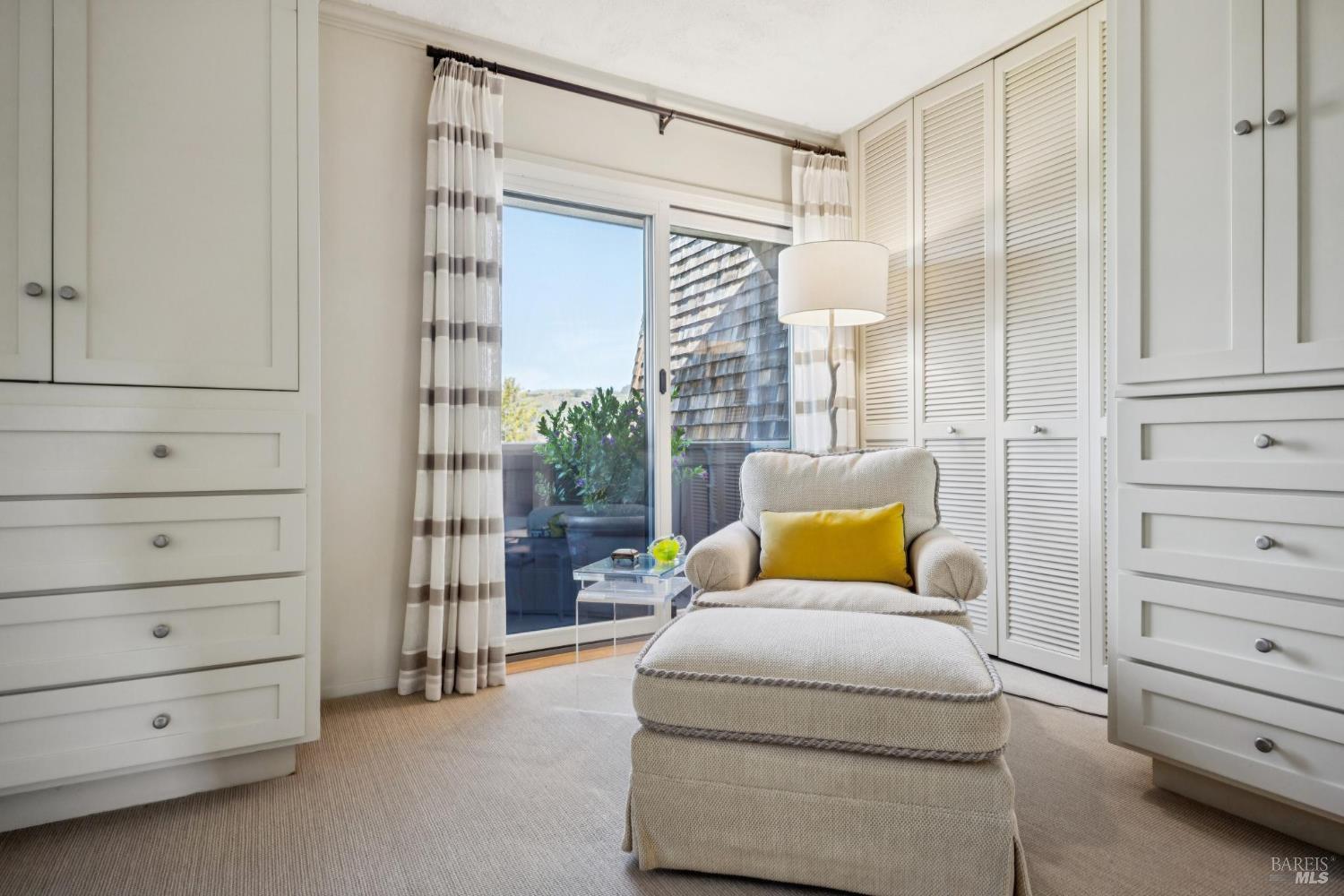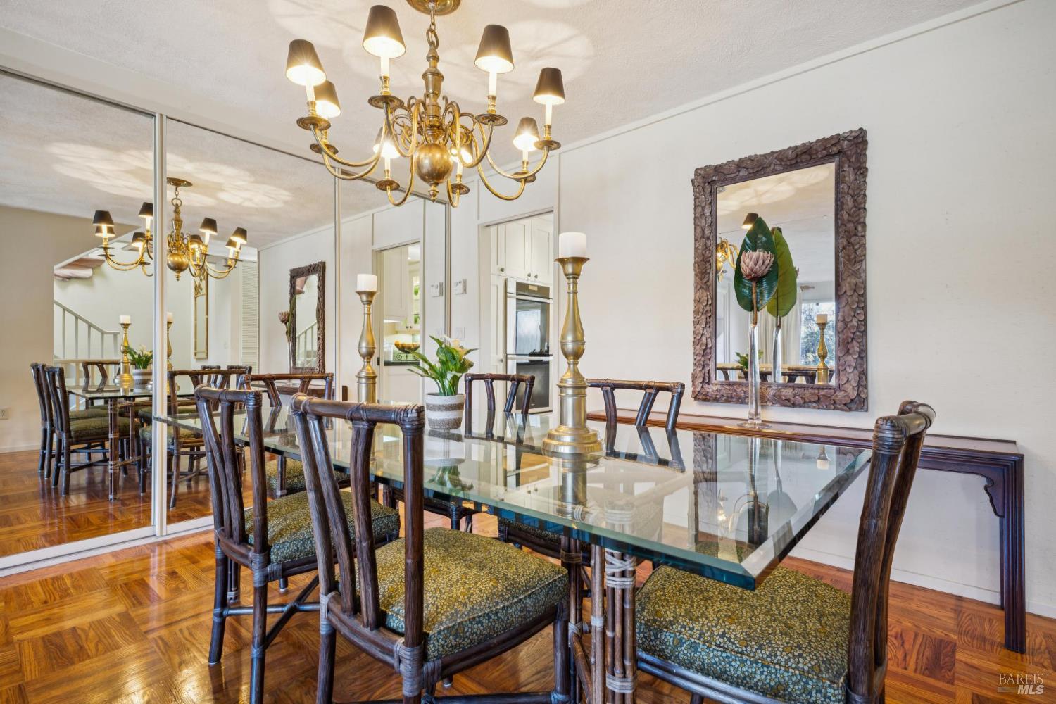 Sophisticated and stylish Peacock Gap townhome offering an exceptional blend of comfort, privacy, and refined design. One of only four large units of this size within the desirable 30 Knoll Recreation Townhouses, this elegant residence showcases numerous high-end upgrades and thoughtful design throughout. The home features three bedrooms plus a cozy den, a formal dining area, and a beautifully redesigned kitchen with a dedicated dining space ideal for both everyday living and entertaining. Hardwood floors grace the main level, while remodeled bathrooms reflect quality craftsmanship and timeless style. The spacious primary suite is a true retreat, highlighted by a stunning spa-like bathroom with high-end finishes, a luxurious jetted tub, and heated floors. Enjoy seamless indoor-outdoor living with a custom-designed patio featuring flower borders, offering privacy and direct access to the dramatic pool area. The community boasts two pools joined together to create a slightly undersized Olympic-style pool, along with a private clubhouse and Swedish saunas providing a resort-like experience just steps from home. Additional features include a large laundry and storage area, abundant closet space throughout, and a two-car garage. Ideally situated next to Peacock Gap Golf Course and offering easy access to China Camp State Park's extensive hiking and biking trails, this exceptional townhome delivers elegance, comfort, and an enviable lifestyle in one of Peacock Gap's most sought-after communities.