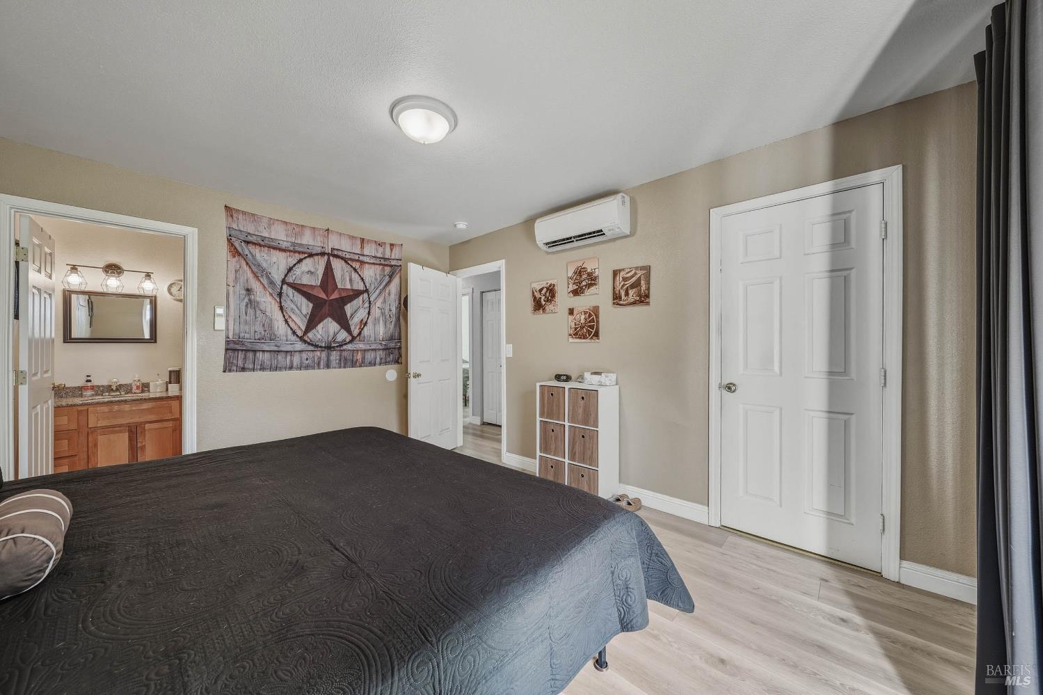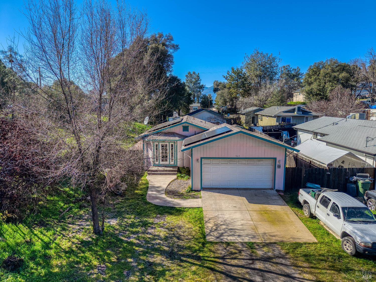 This wonderful home shows pride of ownership! At the end of a cul-de-sac. Low maintenance yard. Large fenced lot. The interior is spacious and offers plenty of lighting. The kitchen is open, has many cabinets and a walk-in pantry with shelving. The 3 bedrooms are spacious with one being used as an office. Mini split system. Owner owned solar panels. The primary bedroom has its own bathroom along with slider doors leading to the back yard. Washer and Dryer hook-ups are in the garage. Property has public sewer and a shared well. The backyard has a well pump and water holding tank.
