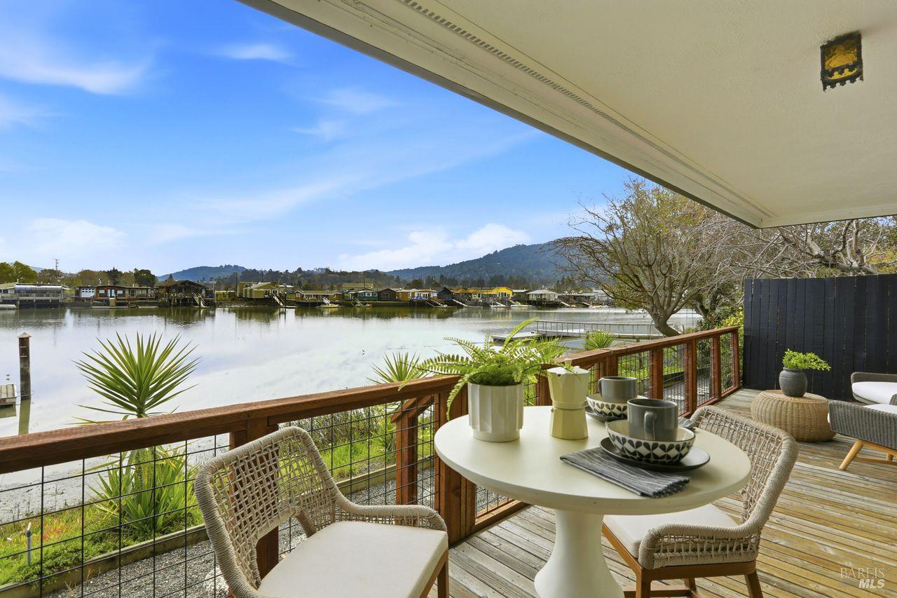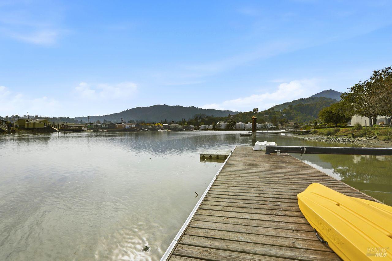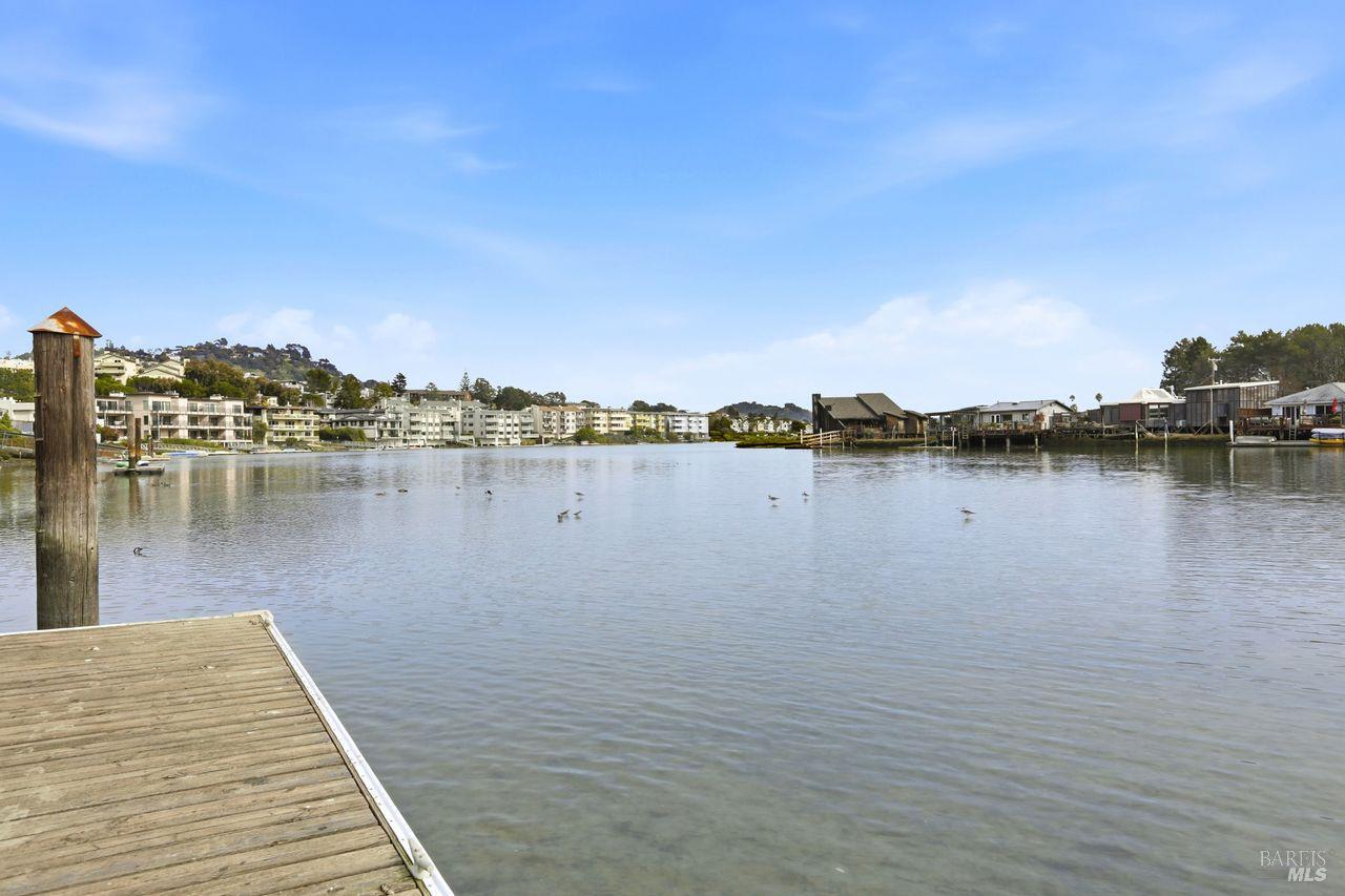Not a single stair to enter this lovely 3 bed 2 bath waterfront condo! This spacious ground-level unit has 1,664 square feet of well designed space. (And a rare private 2 car garage.) The south facing orientation with floor to ceiling windows facing the water brings loads of natural light into the main living spaces. The recently updated tasteful kitchen takes in views of the creek through an open layout. An elegant dining area and wood burning fireplace, (with gas starter,) in the living room complete the main living areas. Beautiful hardwood floors flow through most of the condominium. This lovely unit also offers a full size laundry room and two beautifully updated bathrooms. There is ample closet space including both a walk in and wall closet in the master bedroom. A serene and nicely sized private deck off the living room is perfect for morning coffee, dining out or simply unwinding while looking at the marine birds. A few steps away, the building's dock offers direct access to the Corte Madera Creek. The detached 2 car garage is the closest to the building. There is also a separate storage closet close to the unit. Greenbrae is an ultimate convenience location--super close to great shopping, hiking, bike paths, downtown Larkspur,101 and the Larkspur ferry terminal.