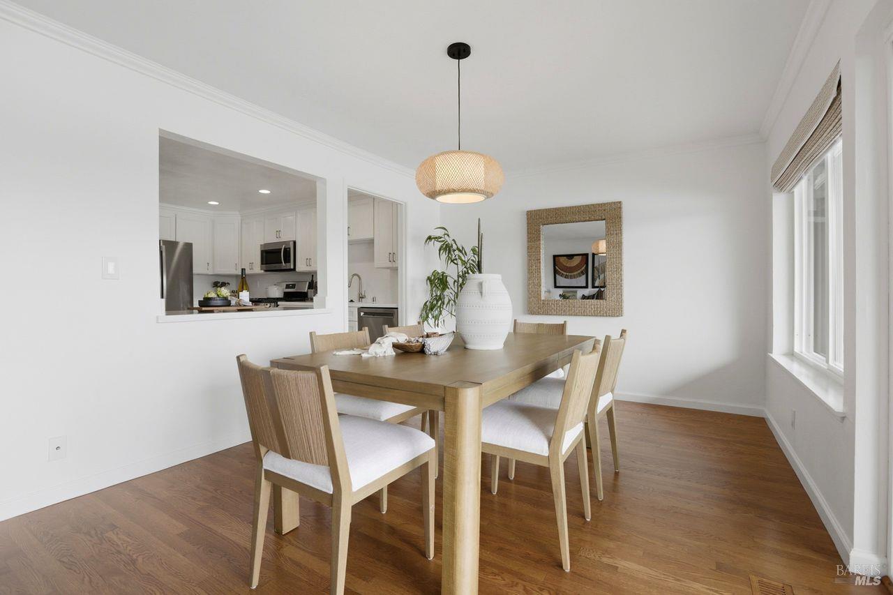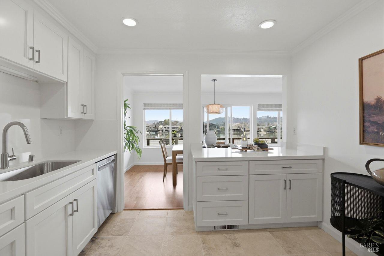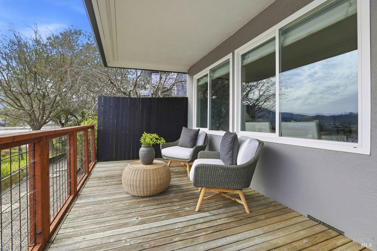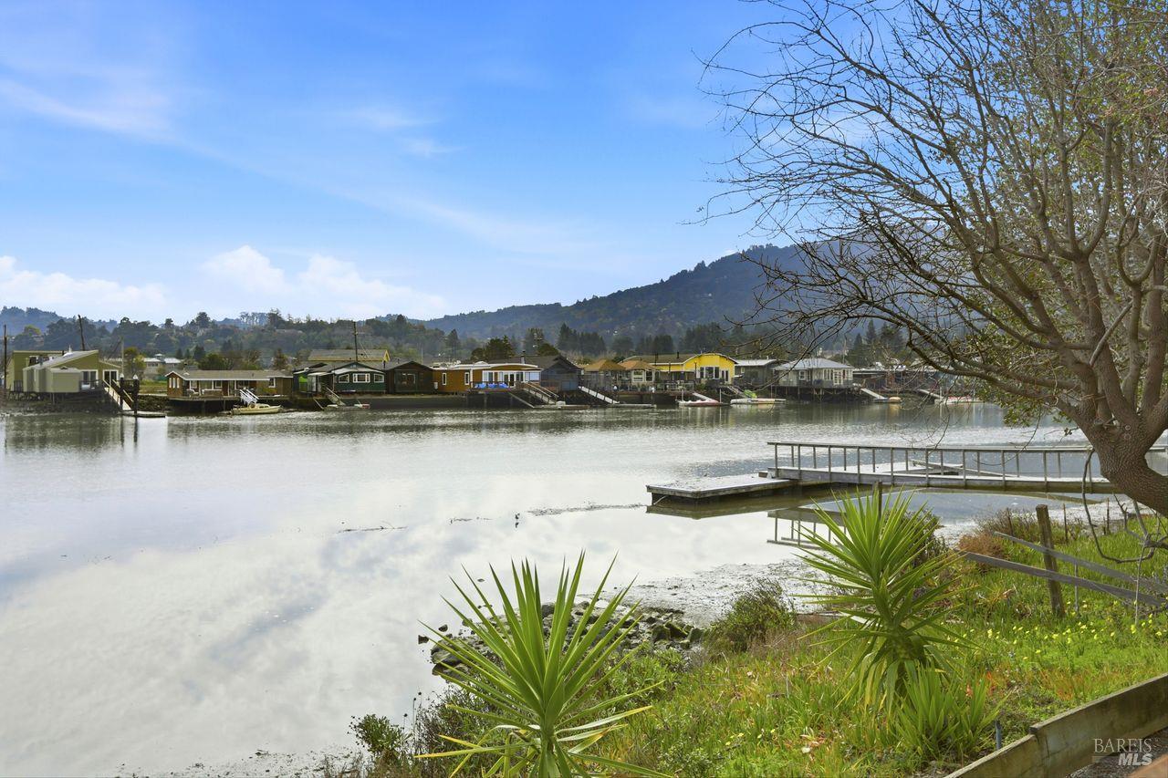 Not a single stair to enter this lovely 3 bed 2 bath waterfront condo! This spacious ground-level unit has 1,664 square feet of well designed space. (And a rare private 2 car garage.) The south facing orientation with floor to ceiling windows facing the water brings loads of natural light into the main living spaces. The recently updated tasteful kitchen takes in views of the creek through an open layout. An elegant dining area and wood burning fireplace, (with gas starter,) in the living room complete the main living areas. Beautiful hardwood floors flow through most of the condominium. This lovely unit also offers a full size laundry room and two beautifully updated bathrooms. There is ample closet space including both a walk in and wall closet in the master bedroom. A serene and nicely sized private deck off the living room is perfect for morning coffee, dining out or simply unwinding while looking at the marine birds. A few steps away, the building's dock offers direct access to the Corte Madera Creek. The detached 2 car garage is the closest to the building. There is also a separate storage closet close to the unit. Greenbrae is an ultimate convenience location--super close to great shopping, hiking, bike paths, downtown Larkspur,101 and the Larkspur ferry terminal.