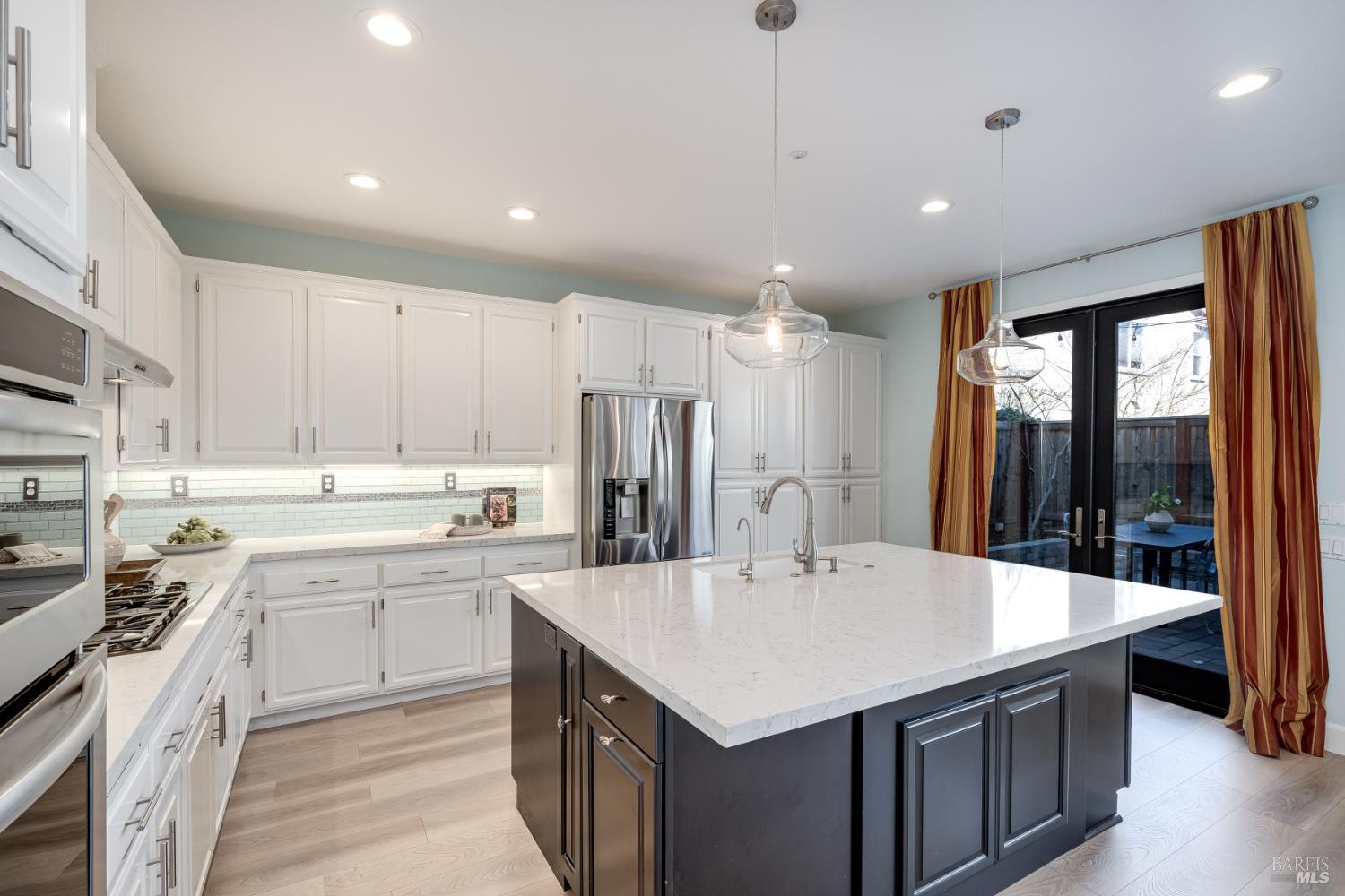Situated in Napa's Silverado Creek neighborhood, this contemporary 4-bedroom, 3.5-bath home offers approx. 2,830 sq ft of flexible living space. The layout features multiple gathering areas, a striking spiral staircase, and a kitchen designed for cooking and entertaining with island seating and dining space. Newly added French doors connect the kitchen to a private backyard patio, creating seamless indoor-outdoor flow. The compact, low-maintenance yard includes a patio, astroturf, rose bushes, and a lemon tree. A downstairs en-suite office provides a quiet workspace, while upstairs bedrooms and lounge areas offer privacy for guests or family. Recent updates include a new front lawn and energy-efficient HVAC system with allergy filtration. Close to Eleven Eleven Winery, Silverado Trail wineries, hiking trails, and downtown Napa.