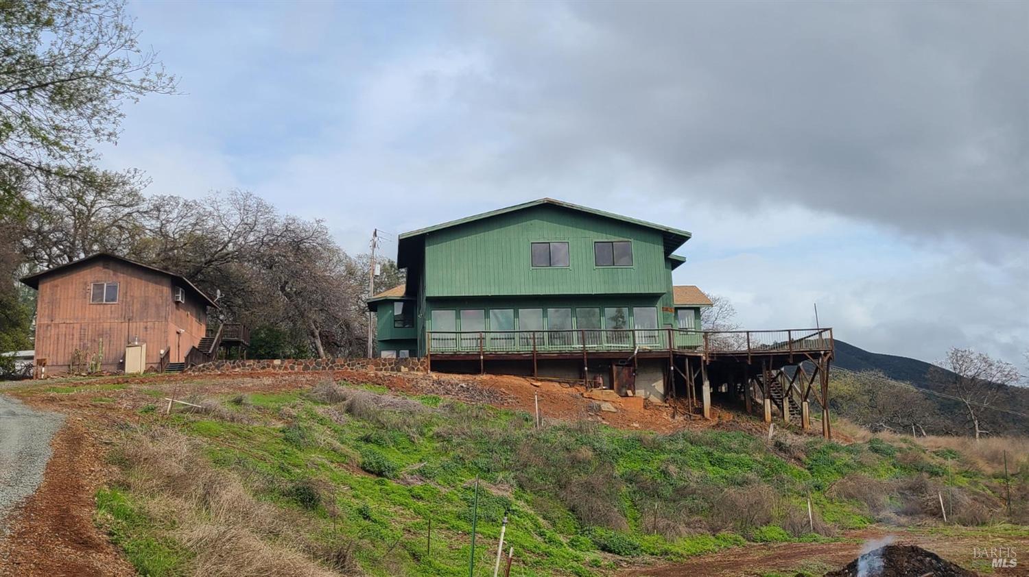 Opportunity is Knocking! With the fantastic views of Clearlake, Mountains and Valleys, this property situated on a knoll top could be an AMAZING ESTATE for someone with a little vision and know how. The second one-bedroom unit above the Two car garage could be used as living quarters for a contractor while remodeling or lease it for additional income. This property is a GREAT INVESTMENT for a contractor type or entrepreneur for a high-end flip. Sitting on more than five acres, and a green house on property, one could finish off with vines for an elegant enticing home and ADU. Indoor hot tub room with walk-in shower looking out over the views below gives us ideas. A viewing tower on the top of the house, with some modifications could be inspiring. Windows are plentiful allowing the home abundant natural light and to take advantage of the spectacular views. A Huge Kitchen Area for the possibility of a grand chefs' kitchen. A few Great Rooms, there is room for your imagination to run wild. A wide staircase to access the upper-level, w/ two smaller spiral staircases to access the second level at either end of the home. Come see in person to engage and feel the real potential this property offers. These homes will need a good amount of TLC to bring them back to their glory days. Wineries close by. 11 miles to Lakeport eateries/shopping. 30 minutes to Ukiah, 70 minutes to I5.