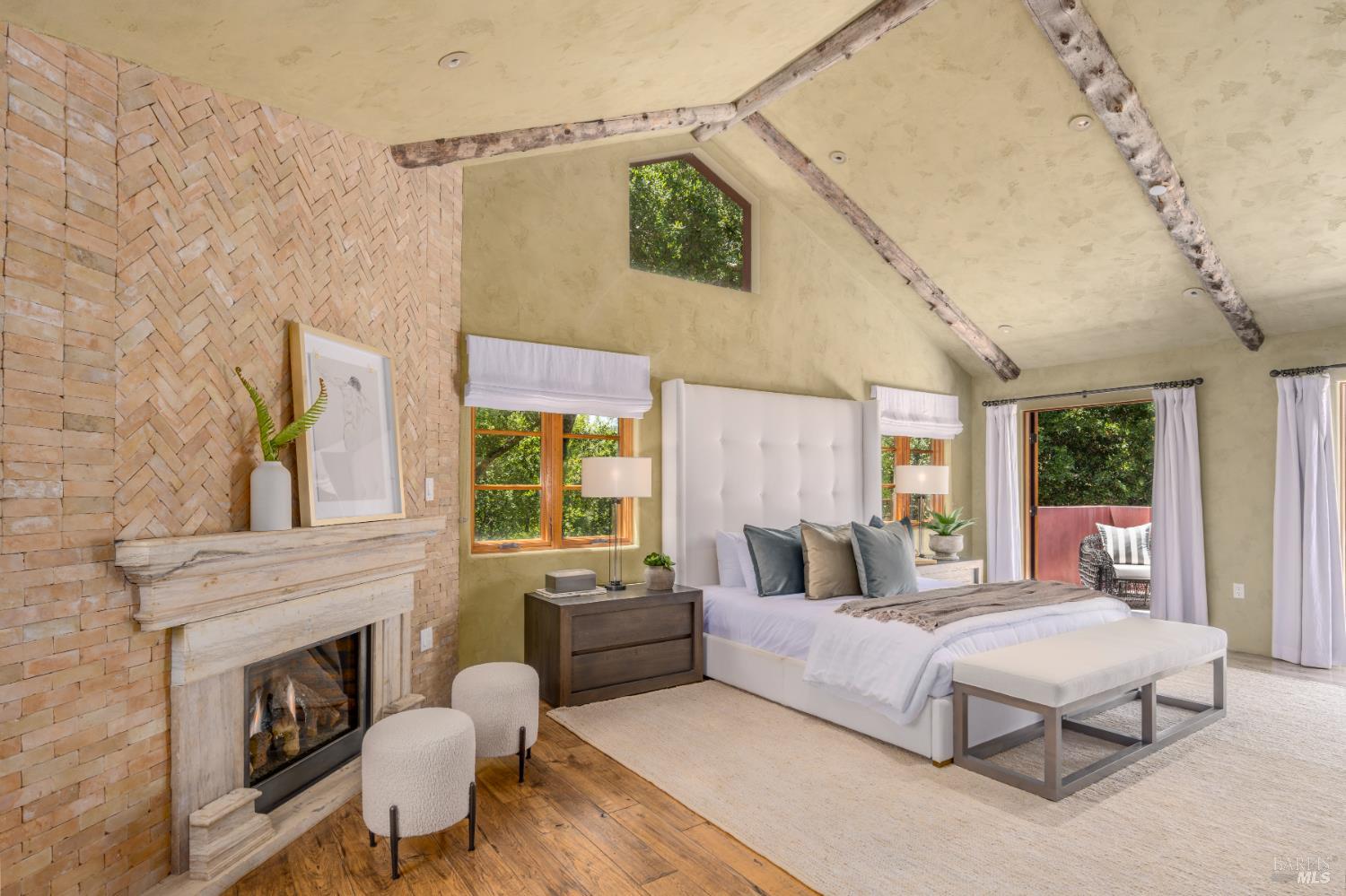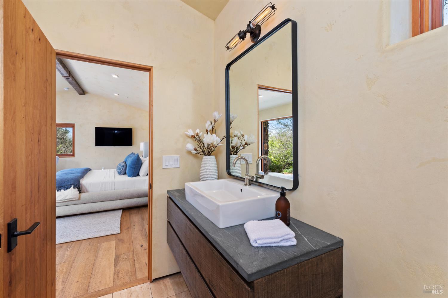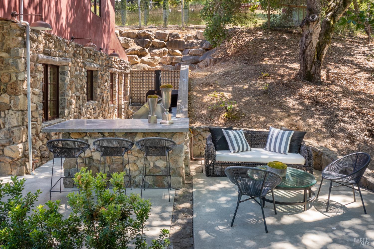Within Napa's established Browns Valley neighborhood, this residence designed by Jack Chandler draws upon Italy's Lake Garda architecture, constructed with materials sourced directly from the region. Quality masonry, soft plaster and limestone, and substantial timber create a quiet sense of permanence and calm. On just over an acre, a 4,496 Sq Ft, 4 Bedroom main house and 464 Sq Ft single-level guest unit with full bath sit within a beautiful and private setting, hovering just above the core of Napa Valley's esteemed destinations for dining, wine tasting, hiking, wellness, and community activities. Open-concept living areas connect directly to the front patios and garden, supporting an indoor-outdoor flow central to Napa Valley's year-round, relaxed lifestyle. Outside, a level lawn surrounded by cypress trees, roses, and greenery, an outdoor kitchen, two covered patios, and a walking path that meanders to the lower portion of the property are incredibly private and ideal for entertaining. The kitchen features top-end appliances, an oversized pantry, and scullery room which anchors daily activity, while adjacent living and media rooms allow for the spaces to be enjoyed simultaneously. On the main level, a sizable en suite bedroom is fit to be a second primary bedroom. Upstairs, a primary suite is complete with large spa-like bathroom, walk-in closet, office space, a fireplace with marble surround, and a private balcony accessed through French doors, perfect for enjoying quite moments outdoors. From the second-floor guest bedrooms with walk-in closets and en suite bathrooms, filtered mountain views appear through trees. The detached guest unit complete with full bathroom and closet offers true separation, well-suited to also be an office or gym. The 3-car garage includes electric car charging station and room for storage. Quietly embedded in Browns Valley, this property is moments to downtown Napa with easy access to San Francisco and surrounding Wine Country destinations.