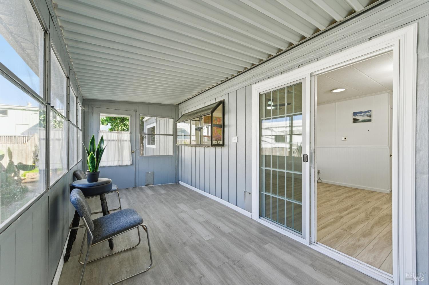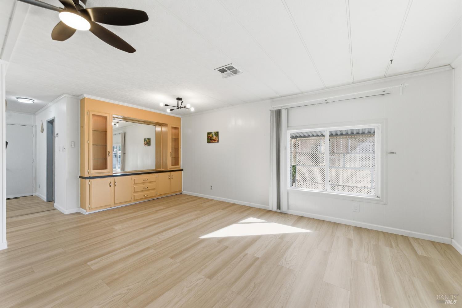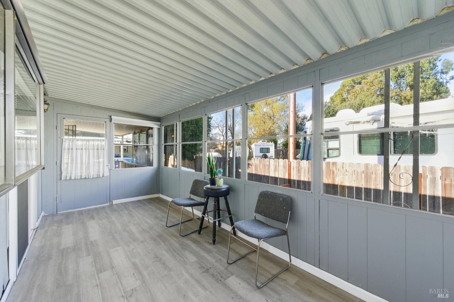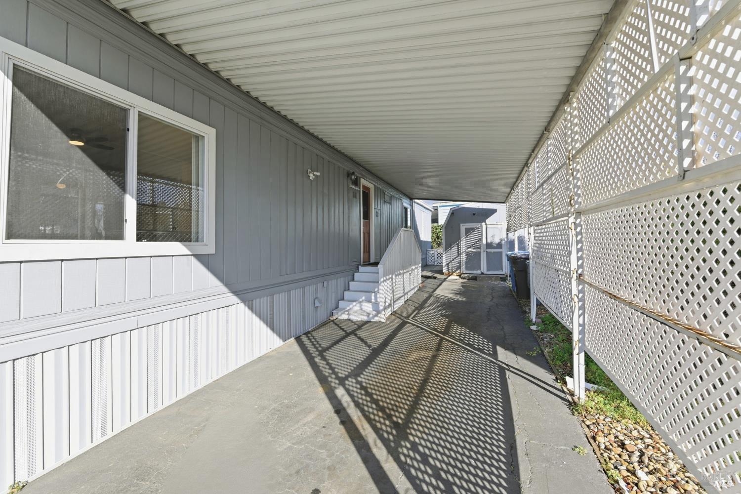 Welcome to this charming home in the desirable Las Casitas Senior Mobile Home Park in American Canyon, just minutes from the Napa Valley lifestyle. This well-maintained 2-bedroom, 2-bath residence offers a bright, open layout with a spacious living room and separate dining area. Recent improvements include newer flooring, updated ceiling fans, dual-pane windows, and a refreshed kitchen with functional finishes. Enjoy the bonus of an enclosed patio plus a covered entry patio, ideal for relaxing, hobbies, or extra storage. The low-maintenance yard features fruit trees and space for gardening. Tucked away in a peaceful back location with no side neighbors, this home offers added privacy and tranquility. Conveniently close to the clubhouse, shopping, dining, and easy freeway access.