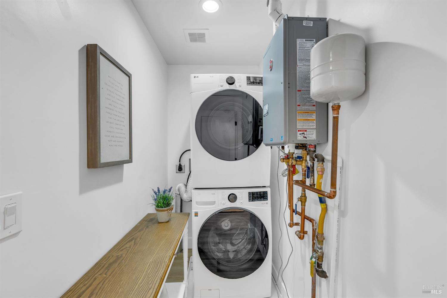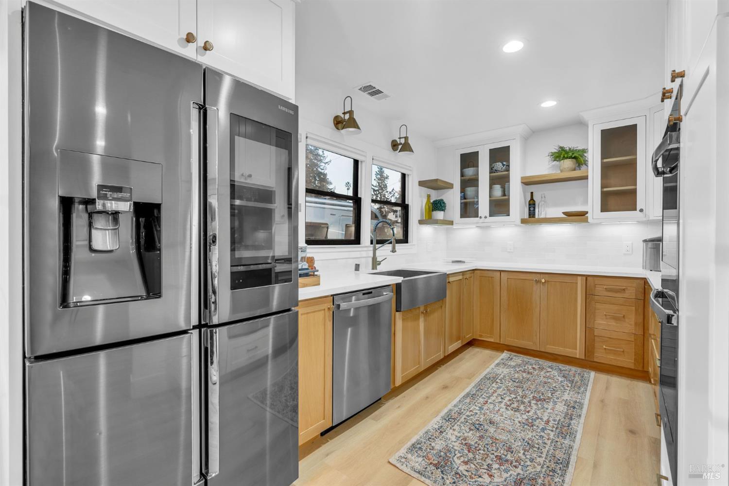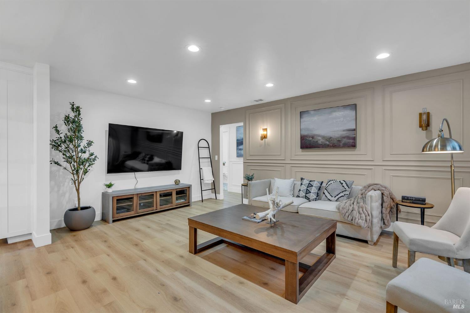 Historic charm meets modern comfort just blocks from Fuller Park and downtown Napa's dining, tasting rooms, and shops. This 1935 bungalow has been thoughtfully renovated with contemporary upgrades throughout. Offering 2 bedrooms, 2 bathrooms, and an oversized annex room, the 1,330 sq ft layout is perfect for remote work, guests, or creative use. Highlights include designer accent walls, smooth-finish plaster, and luxury waterproof vinyl flooring with cork underlayment. The kitchen features solid maple cabinetry, quartz counters, and a double-stacked oven. Both bathrooms include designer tile, walk-in showers, and heated towel warmers. A dedicated laundry room offers newer LG stackables. Situated on a corner lot with a fenced yard, multiple outdoor areas, and off-street parking with a Tesla charger. Recent updates include central heat/AC, new electrical and subpanel, and a tankless water heater. All furnishings and mounted TVs can be included, making this a turnkey opportunity for a primary home, Napa retreat, or income-producing rental.