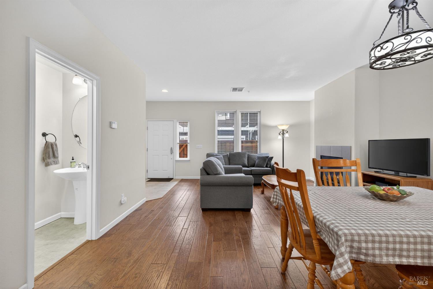 This townhouse-style PUD offers a smart and comfortable layout with three bedrooms plus a versatile landing perfect for a home office, craft space, or reading nook. The dining room is filled with natural light thanks to extra windows, while rich hickory floors run throughout the home, adding warmth and continuity. The kitchen features a generous pantry and ample storage, ideal for everyday living and entertaining. Relax by the electric fireplace in the living area, and retreat to the light-filled primary bedroom with a walk-in closet, skylight in the bathroom, and a standard shower-over-tub bath. Designed for low-maintenance living, this home also includes a two-car attached garage for convenience and extra storage.