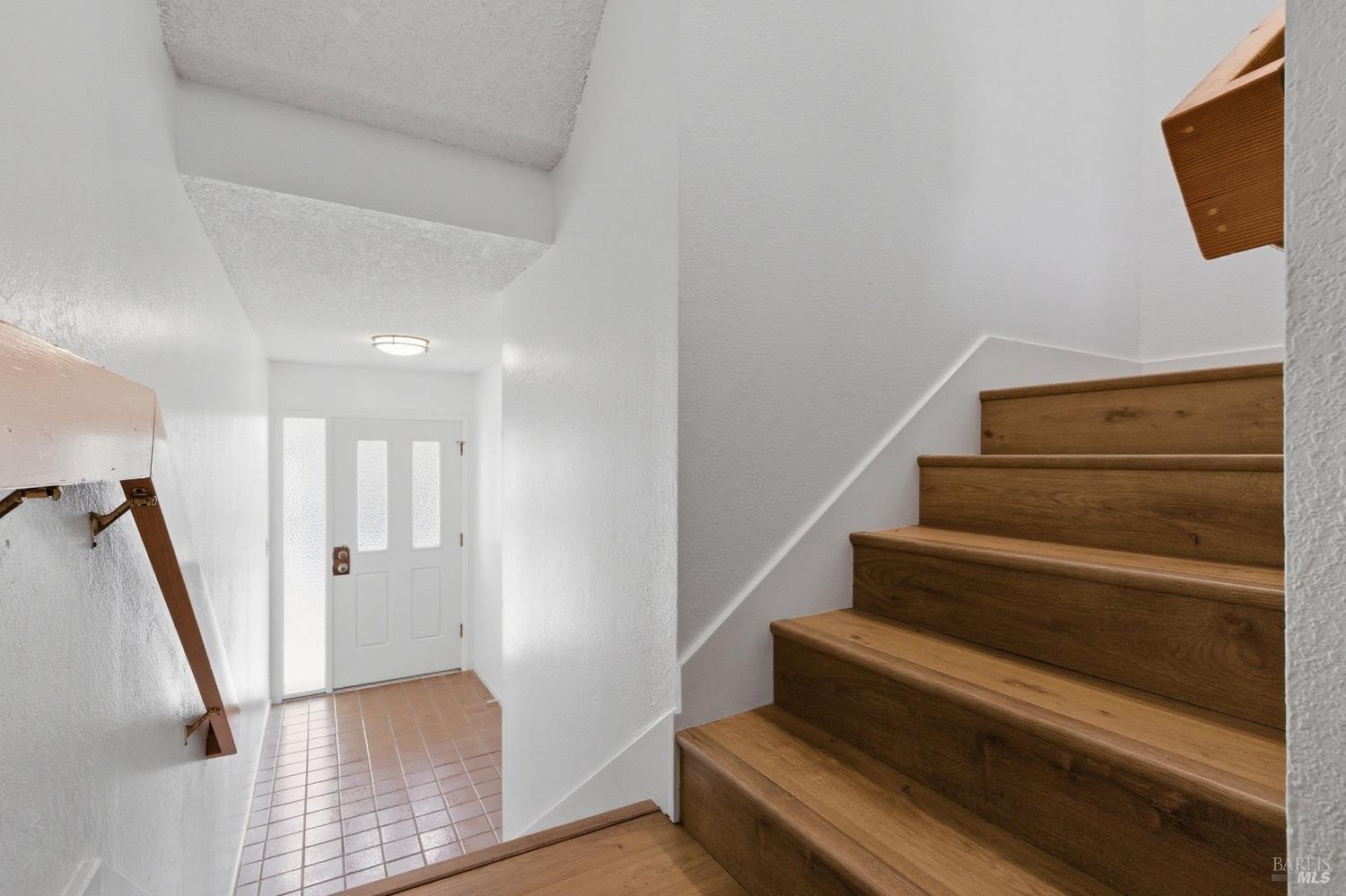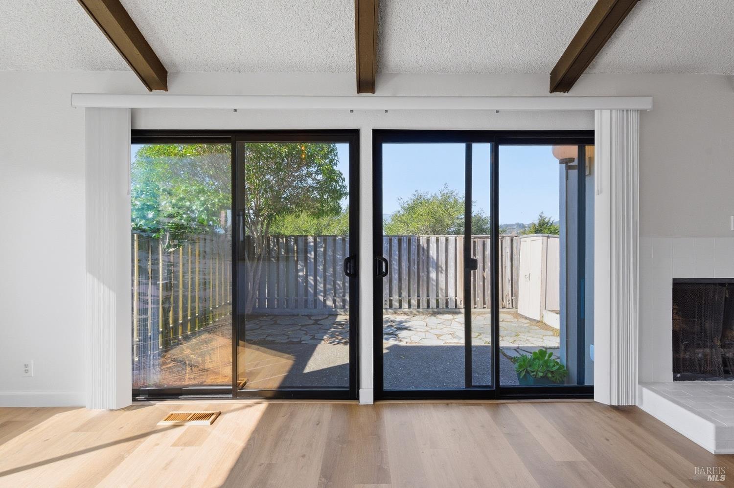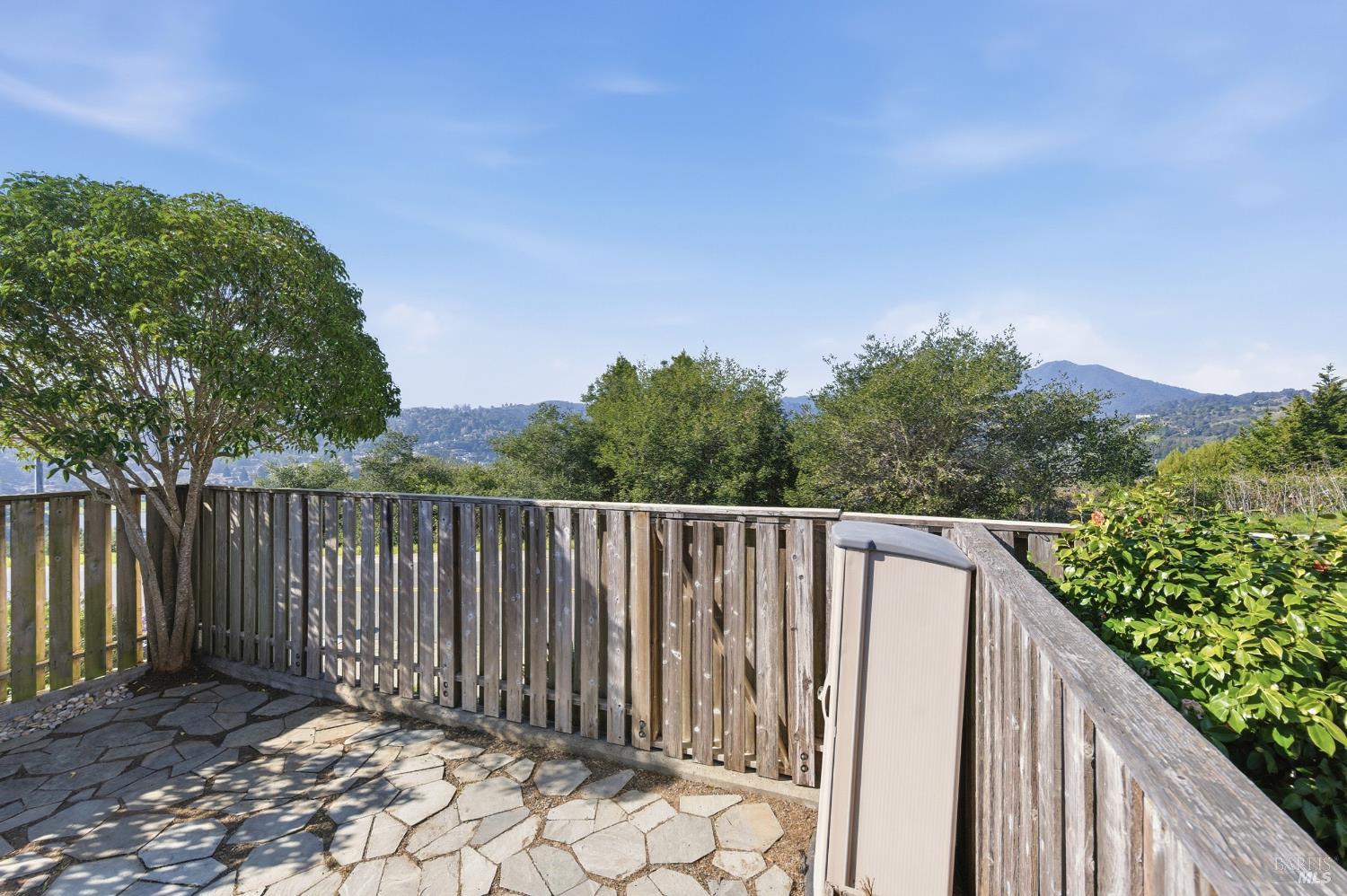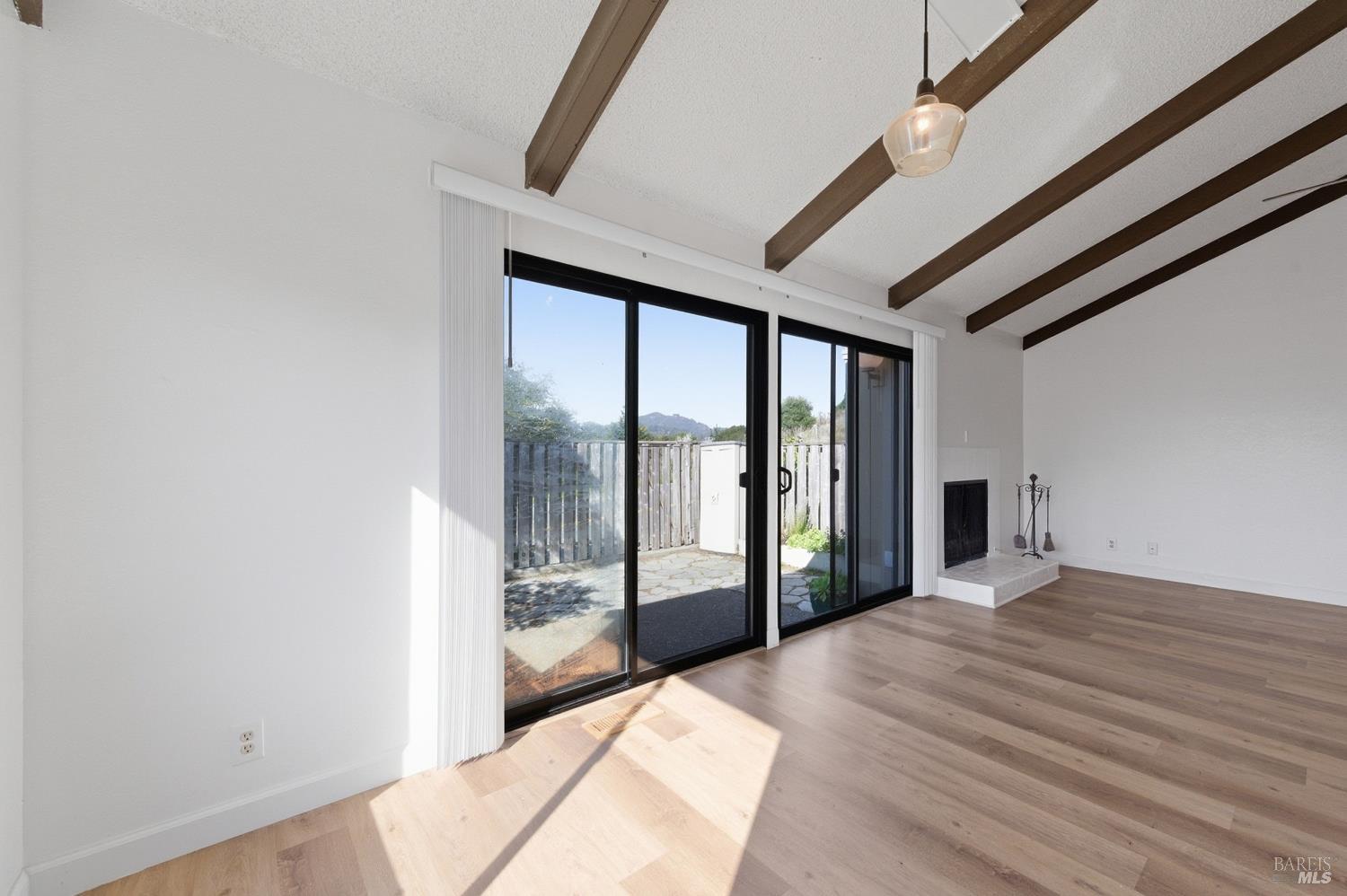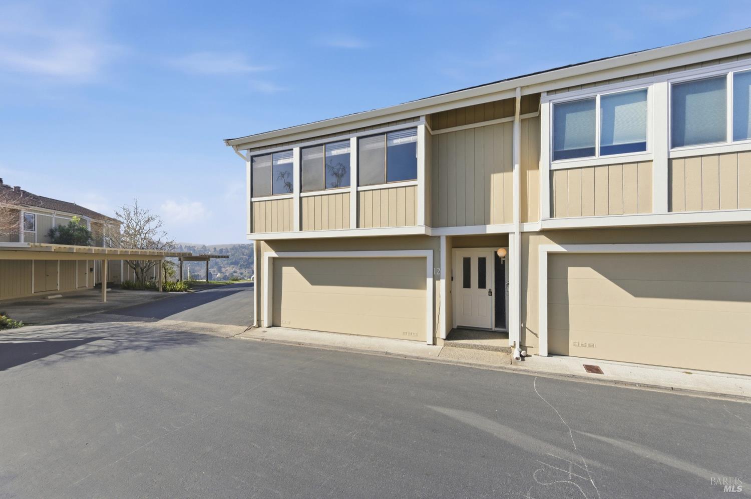 Perched on the hill, this home offers a premier location where the views are spectacular, access to town, trails and amenities are so close! Welcome home to this spacious and sun-drenched 3 bedroom, 2 bathroom home in the community of Shelter Ridge in Mill Valley. Imagine living in a home that feels bright and open, with vaulted ceilings accented by exposed beams and large windows throughout the main living areas. Warm wide-plank LVP flooring runs throughout the living and dining spaces. The galley kitchen features high-end stainless steel appliances, including a dishwasher and large pantry, a breakfast bar flows into the dining area that opens to the private patio, making it ideal for entertaining or relaxing and enjoying scenic views toward Mt. Tamalpais and Bayfront Park. The 2 upstairs Bedrooms are generously sized with plush carpeting and ample closet space, including a spacious lower-level room primary suite, guest space, or home office with two spacious closets just outside the bedroom. The two-car garage offers direct interior access and includes a workbench, laundry area, and ample storage. Residents enjoy access to resort-style amenities including a swimming pool, tennis courts, and a private community room, all set within beautifully landscaped grounds. The location is conveniently close to Highway 101, Whole Foods Market, The Cantina, Hauke Park, Bayfront Park, and downtown Mill Valley. A great opportunity to enjoy comfortable, low-maintenance living in one of Mill Valley's most well-kept communities.