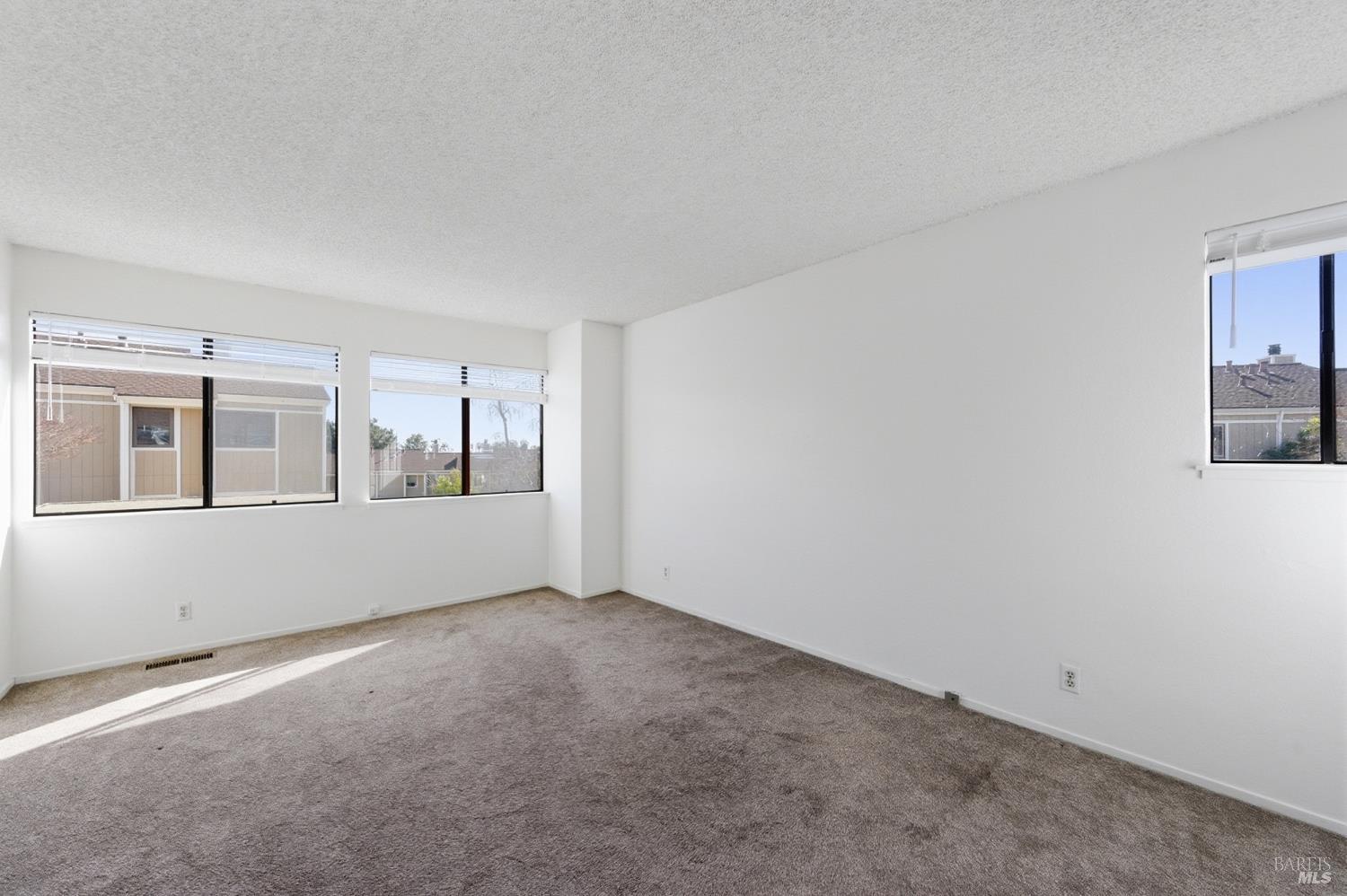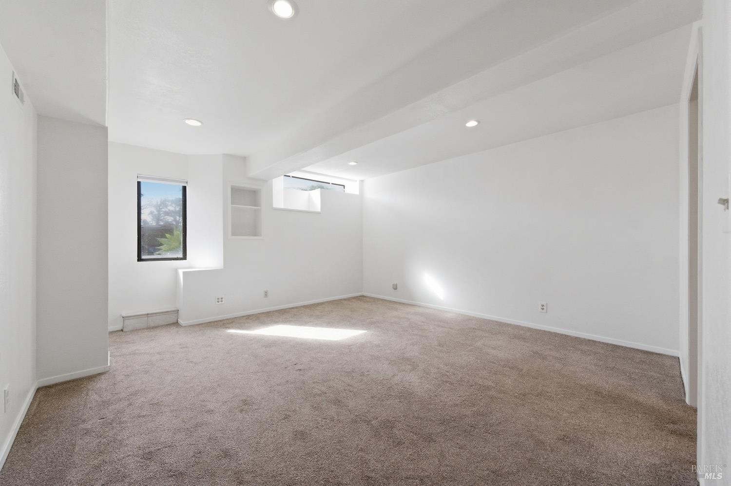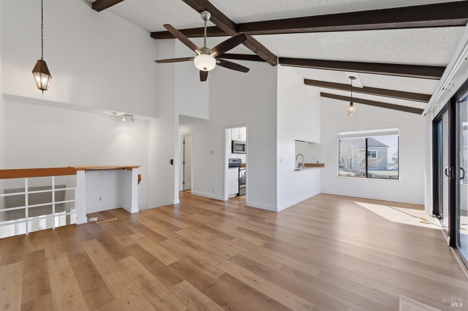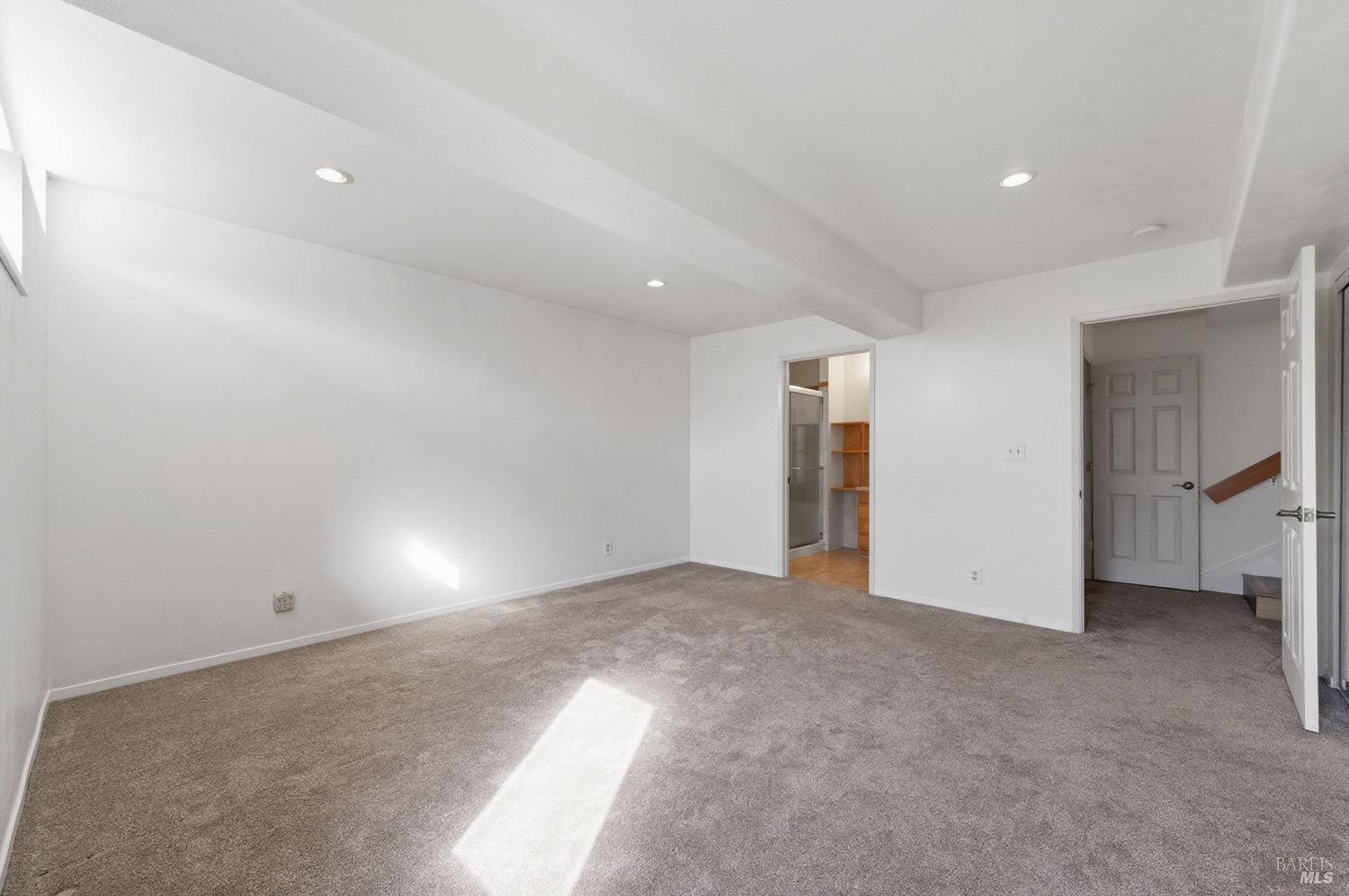 Perched on the hill, this home offers a premier location where the views are spectacular, access to town, trails and amenities are so close! Welcome home to this spacious and sun-drenched 3 bedroom, 2 bathroom home in the community of Shelter Ridge in Mill Valley. Imagine living in a home that feels bright and open, with vaulted ceilings accented by exposed beams and large windows throughout the main living areas. Warm wide-plank LVP flooring runs throughout the living and dining spaces. The galley kitchen features high-end stainless steel appliances, including a dishwasher and large pantry, a breakfast bar flows into the dining area that opens to the private patio, making it ideal for entertaining or relaxing and enjoying scenic views toward Mt. Tamalpais and Bayfront Park. The 2 upstairs Bedrooms are generously sized with plush carpeting and ample closet space, including a spacious lower-level room primary suite, guest space, or home office with two spacious closets just outside the bedroom. The two-car garage offers direct interior access and includes a workbench, laundry area, and ample storage. Residents enjoy access to resort-style amenities including a swimming pool, tennis courts, and a private community room, all set within beautifully landscaped grounds. The location is conveniently close to Highway 101, Whole Foods Market, The Cantina, Hauke Park, Bayfront Park, and downtown Mill Valley. A great opportunity to enjoy comfortable, low-maintenance living in one of Mill Valley's most well-kept communities.