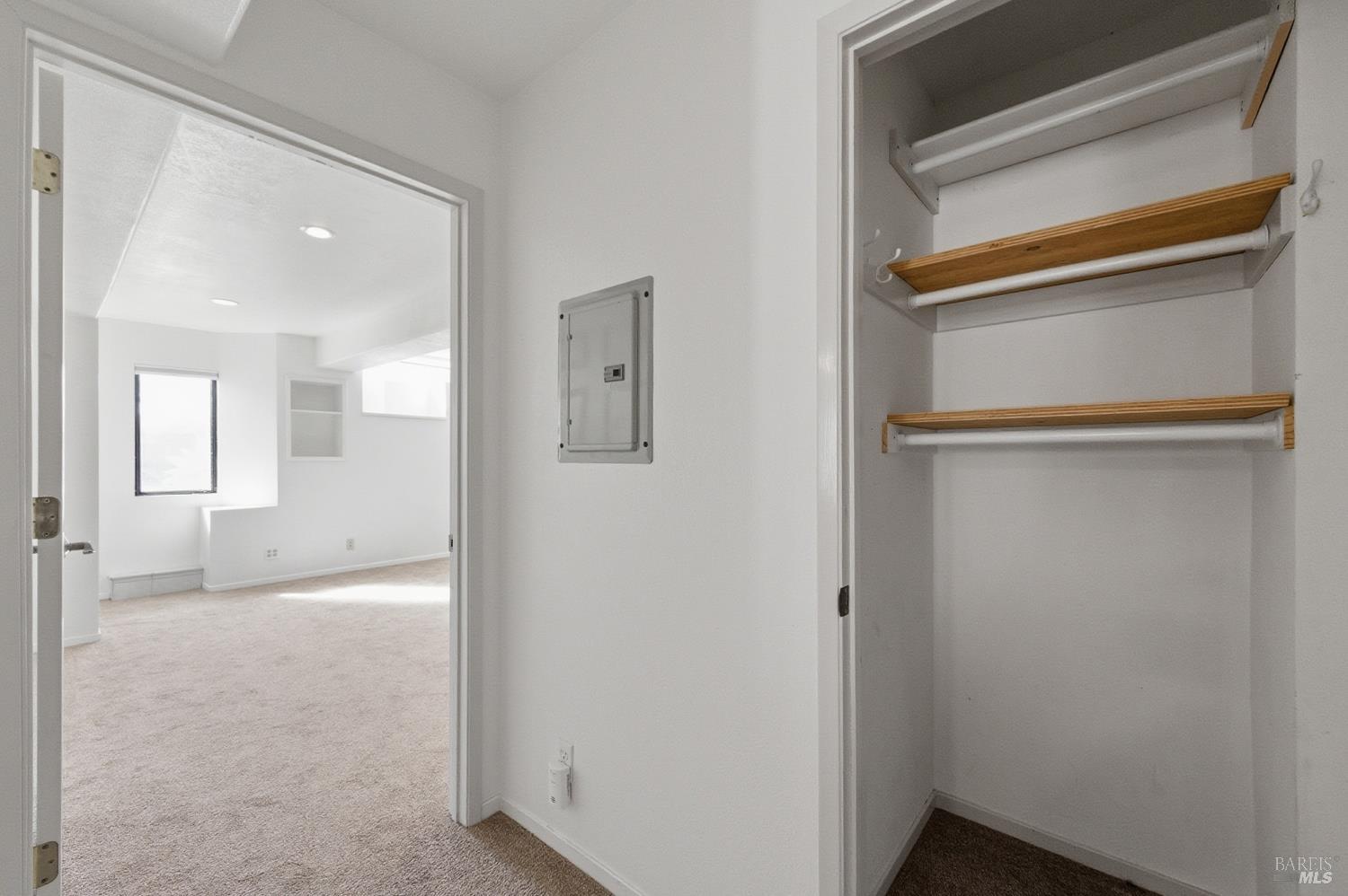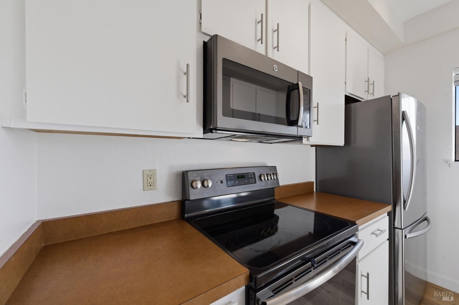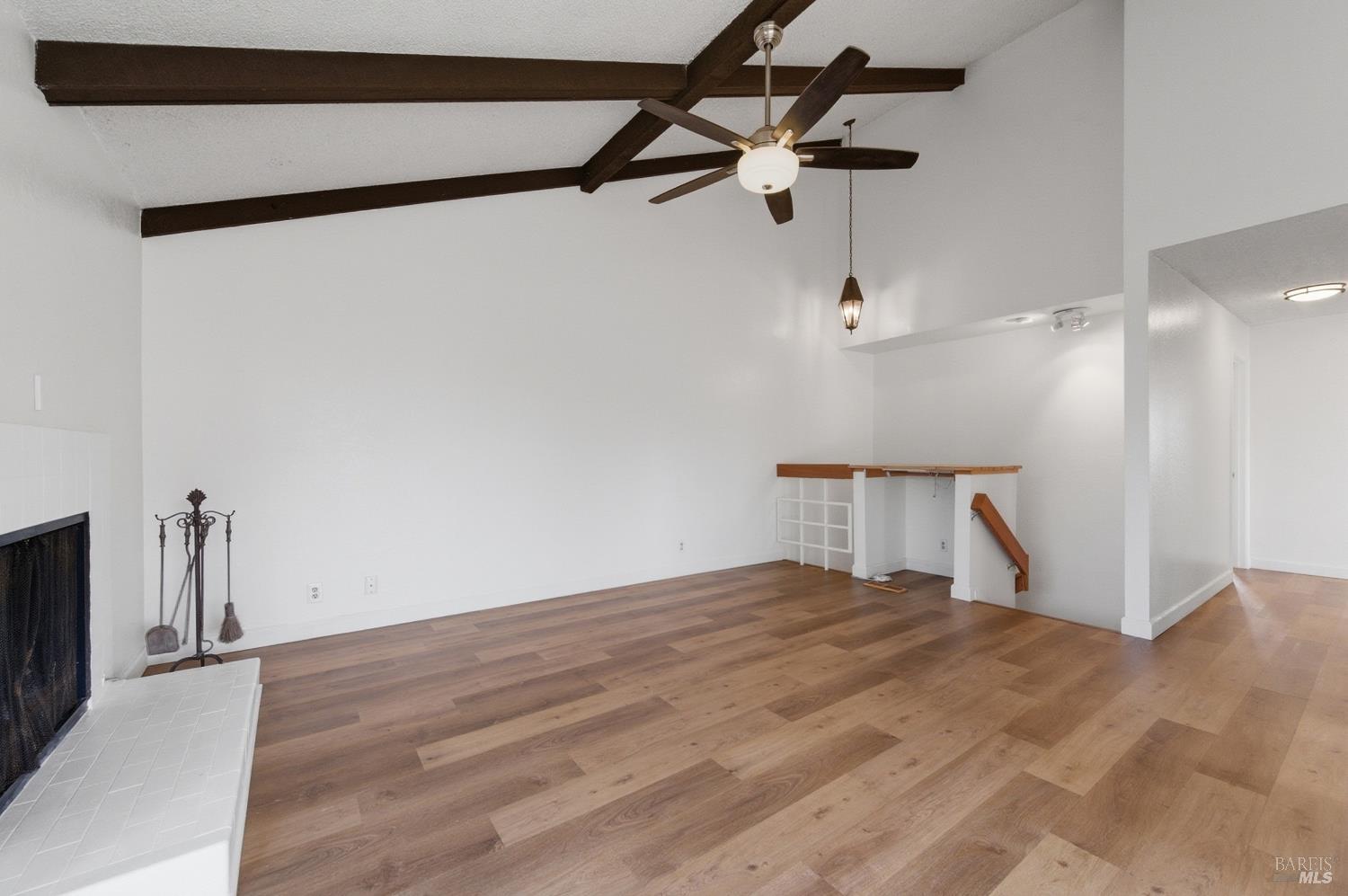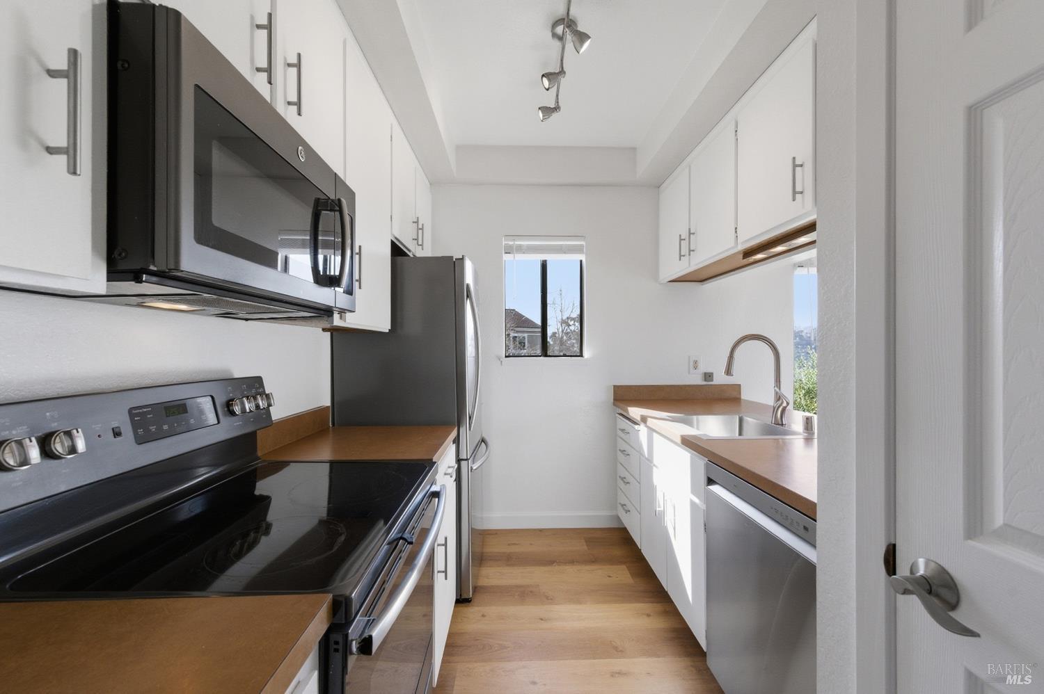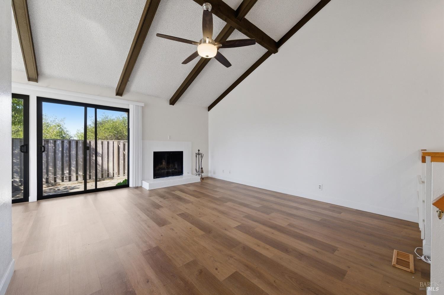 Perched on the hill, this home offers a premier location where the views are spectacular, access to town, trails and amenities are so close! Welcome home to this spacious and sun-drenched 3 bedroom, 2 bathroom home in the community of Shelter Ridge in Mill Valley. Imagine living in a home that feels bright and open, with vaulted ceilings accented by exposed beams and large windows throughout the main living areas. Warm wide-plank LVP flooring runs throughout the living and dining spaces. The galley kitchen features high-end stainless steel appliances, including a dishwasher and large pantry, a breakfast bar flows into the dining area that opens to the private patio, making it ideal for entertaining or relaxing and enjoying scenic views toward Mt. Tamalpais and Bayfront Park. The 2 upstairs Bedrooms are generously sized with plush carpeting and ample closet space, including a spacious lower-level room primary suite, guest space, or home office with two spacious closets just outside the bedroom. The two-car garage offers direct interior access and includes a workbench, laundry area, and ample storage. Residents enjoy access to resort-style amenities including a swimming pool, tennis courts, and a private community room, all set within beautifully landscaped grounds. The location is conveniently close to Highway 101, Whole Foods Market, The Cantina, Hauke Park, Bayfront Park, and downtown Mill Valley. A great opportunity to enjoy comfortable, low-maintenance living in one of Mill Valley's most well-kept communities.