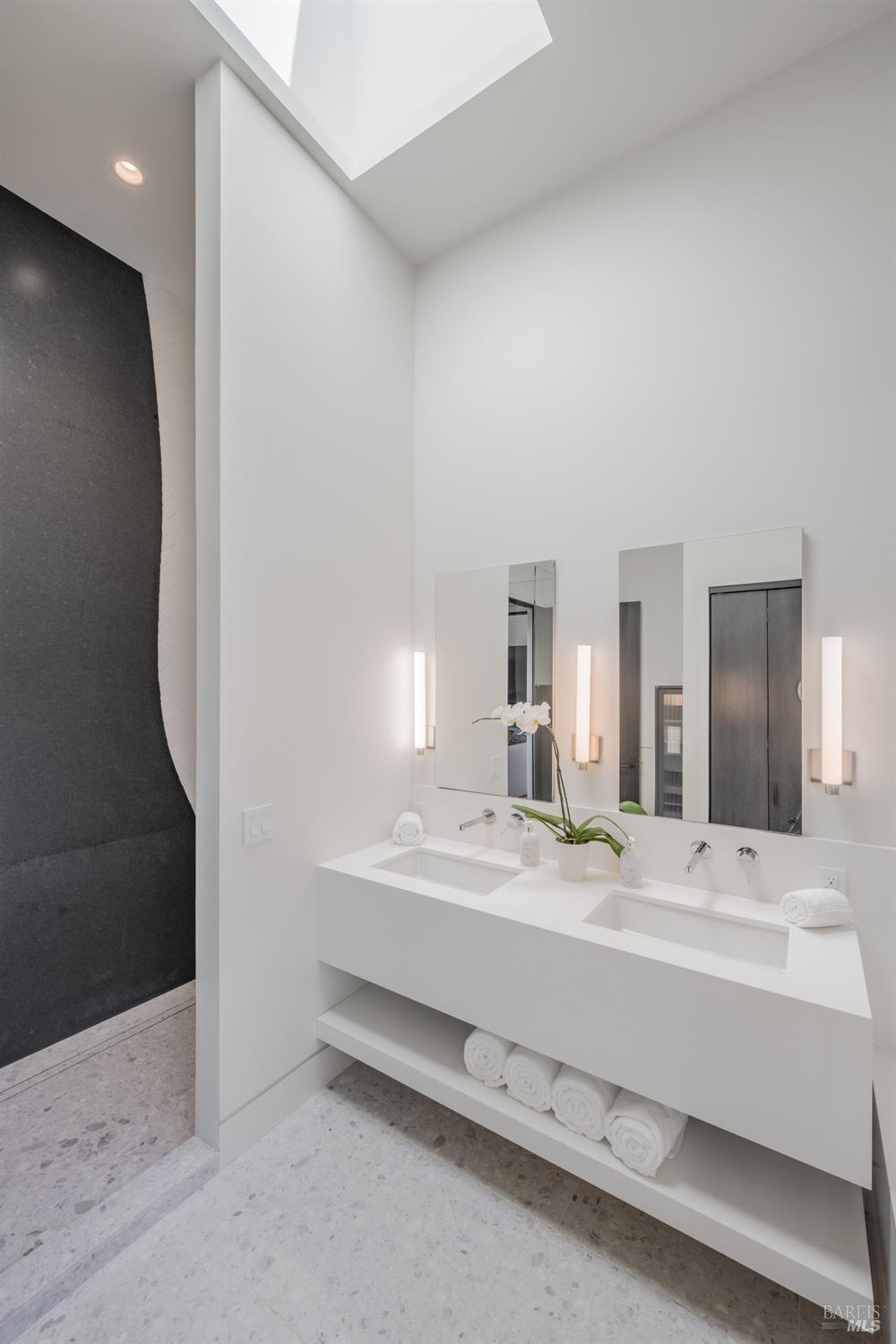 • Primary Bathroom Features Double Sinks,Soaking Tub,Stone,Tile