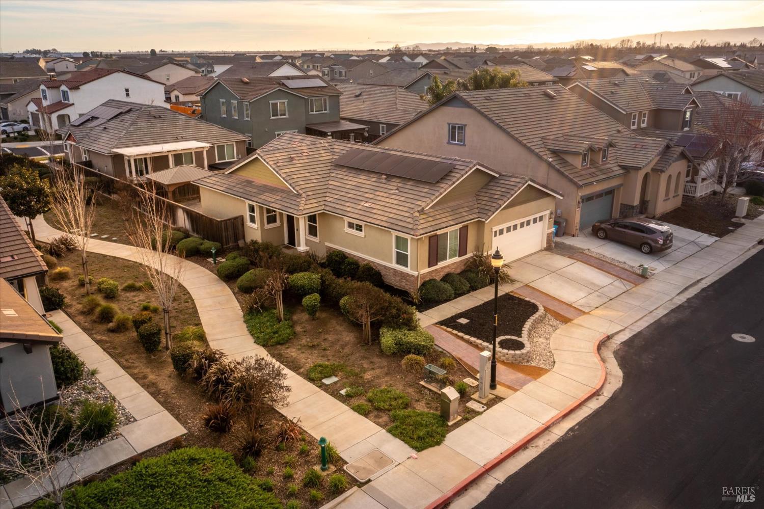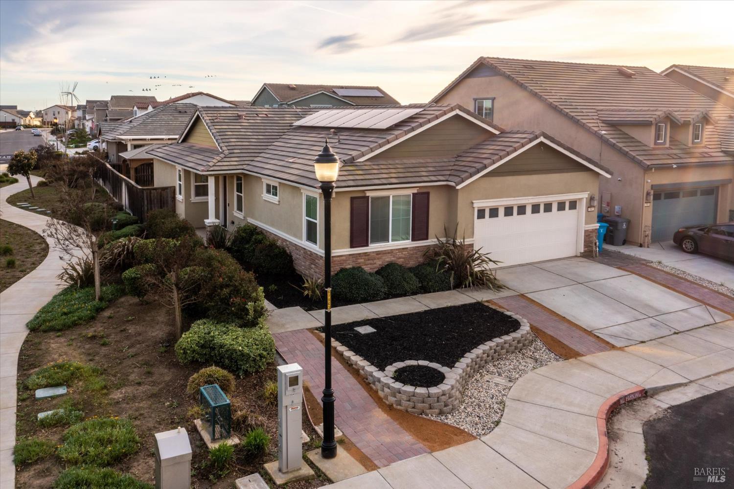 This thoughtfully designed single-level home offers modern comfort and an easygoing Dixon lifestyle just minutes from Downtown, local parks, and Dixon High School, with nearby access to the neighborhood walking and biking trail. The open layout creates a welcoming space for gathering and everyday living, anchored by a well-appointed kitchen with granite countertops, center island, gas cooktop, pantry, and dining area that connects naturally to the living room. Durable luxury plank flooring runs through the main living areas, blending style with practical durability, while a front flex room offers a comfortable space for an office, den, or hobbies. Storage has been carefully considered with added cabinetry in the laundry room and built-in garage shelving with workbench, and whole-home ethernet wiring provides dependable connectivity for today's needs. Step outside to a landscaped backyard featuring a stamped concrete patio, lawn area, and a Yardistry gazebo suited for outdoor dining or relaxing evenings. The newly installed drought-tolerant landscaping is designed for low water use and easy maintenance. An expanded solar system supports energy efficiency (buyer to assume solar lease). Enjoy a convenient commute with easy access to Highway 80 and Travis Air Force Base. Schedule your private showing and see all this home has to offer.