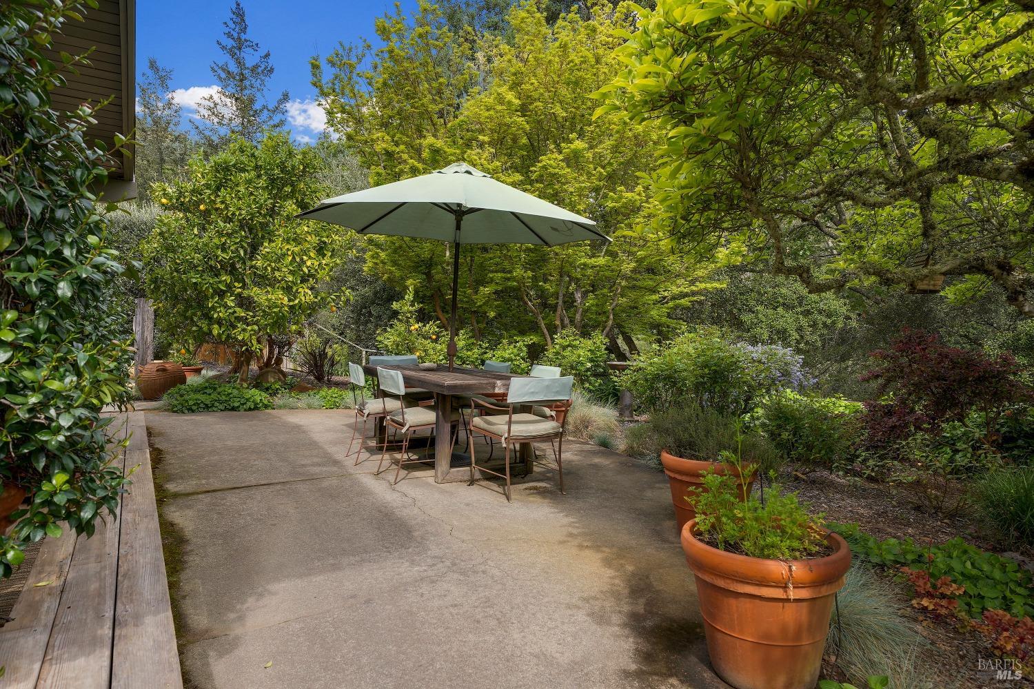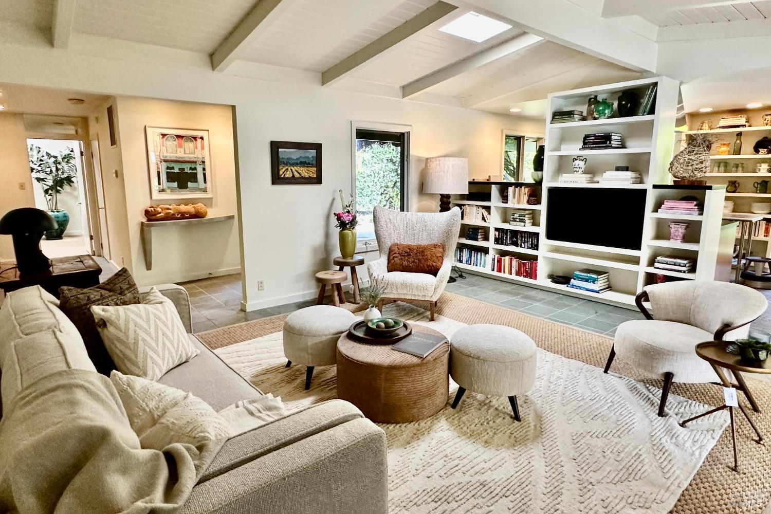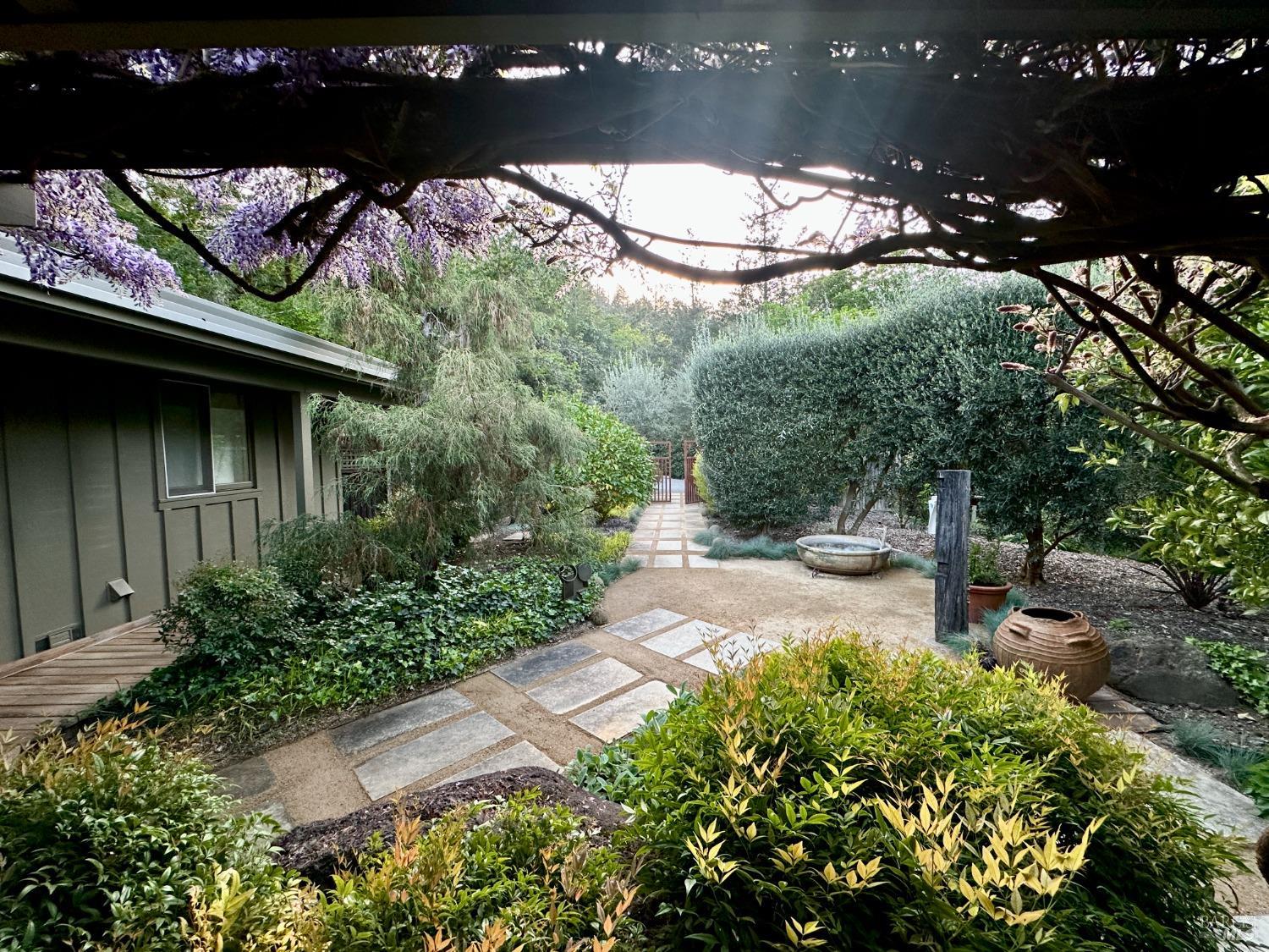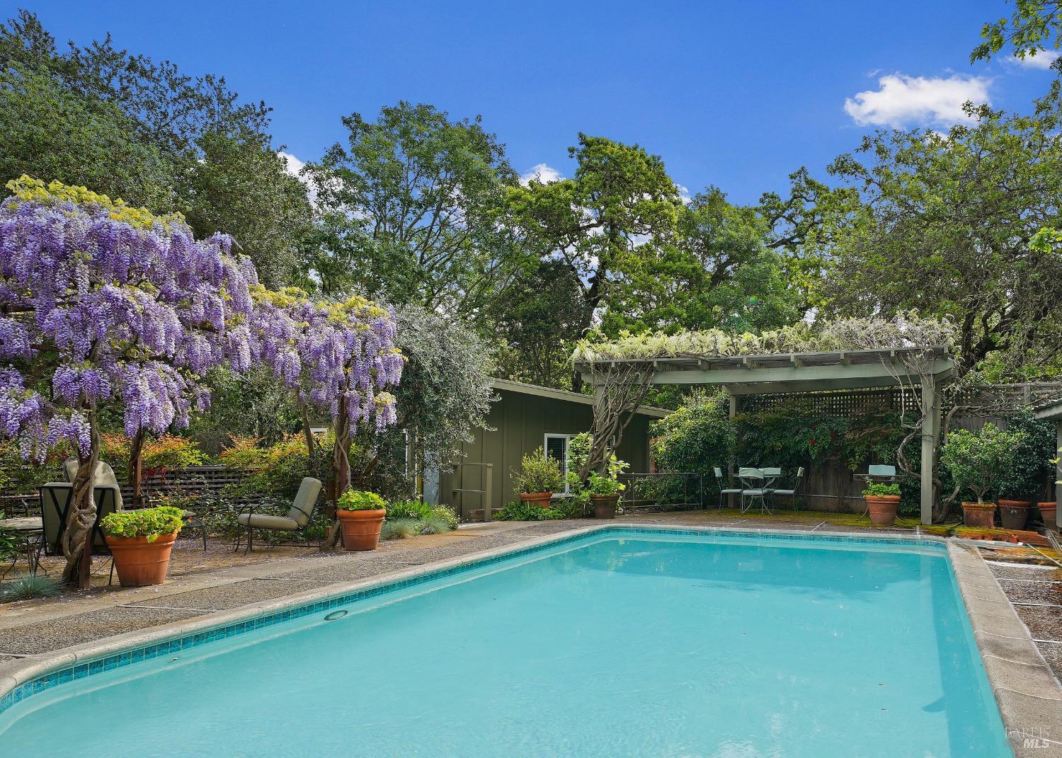 The perfect Wine Country starter home with views of Mt. St. Helena! Minutes from downtown Calistoga, this private, gated mid-century ranch-style property blends timeless design with the relaxed beauty of Mediterranean-inspired gardens. Set on a private 2-acre parcel just outside city limits, the home offers a rare balance of privacy, character, and versatility. Ideal as a Wine Country weekend retreat or serene full-time residence. The 1,650 sq. ft. main house features two bedrooms, two baths, slate and sisal flooring, a black Formica kitchen with custom cherrywood cabinetry, and a wood-burning fireplace that anchors the open living and dining area. Large windows frame lush garden views and invite indoor-outdoor living around the pool, pergola, and alfresco dining areas. A detached 450 sq. ft. guest cottage with full bath and mini-split HVAC provides ideal space for visitors or a studio. At the lower edge of the property, a 1,200 sq. ft. heated workshop/art studio/car garage offers endless creative potential. Minutes from Chateau Montelena, Solage, the Four Seasons, and the soon to open Rosewwood, this calming Wine Country haven embodies the essence of relaxed Napa Valley living.