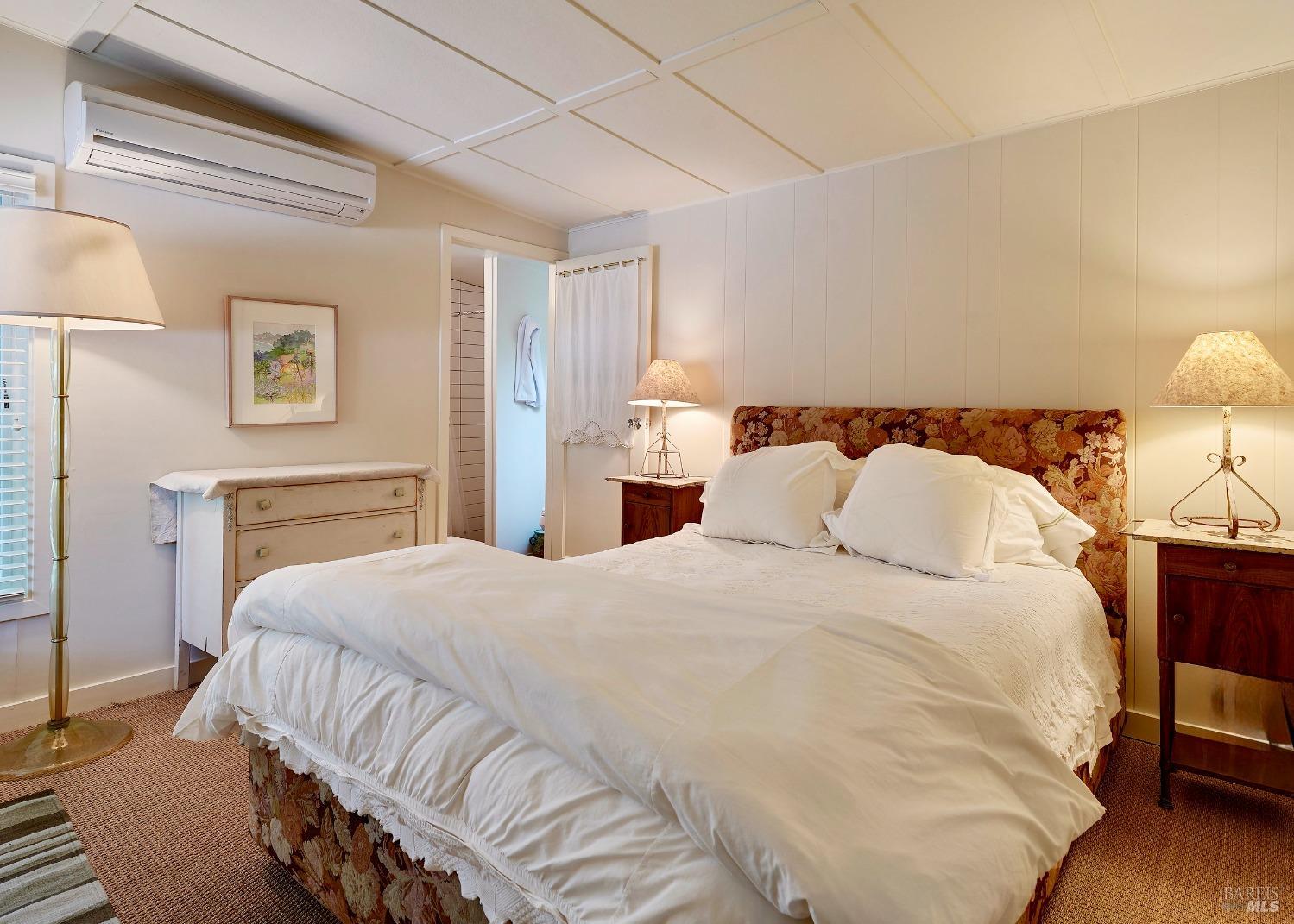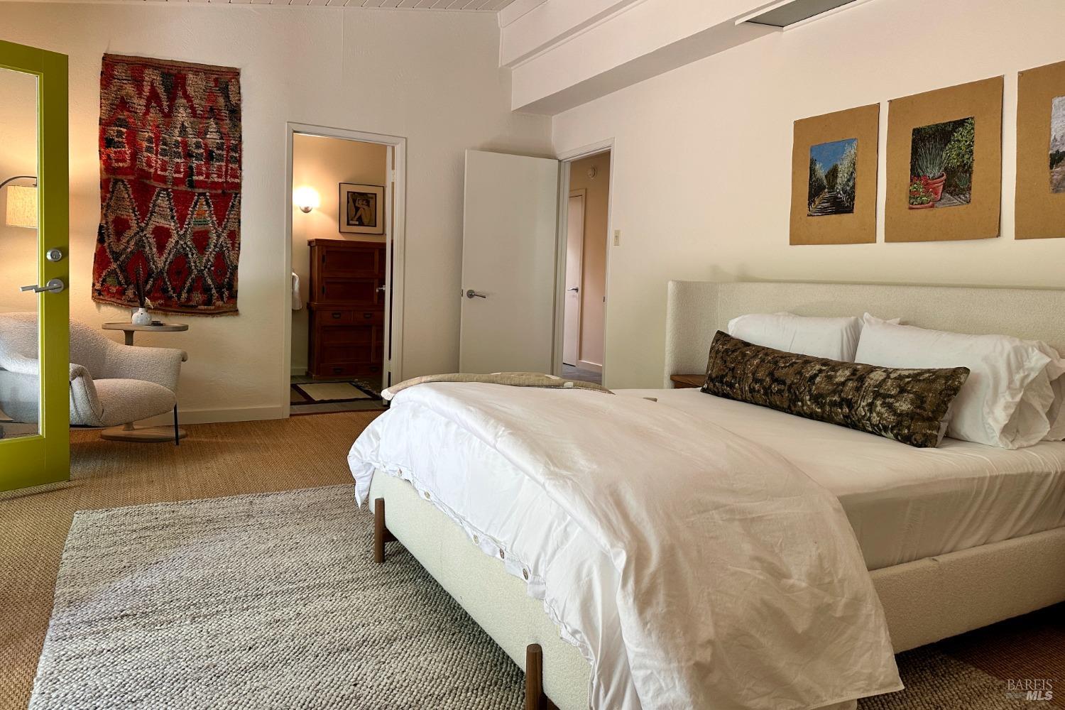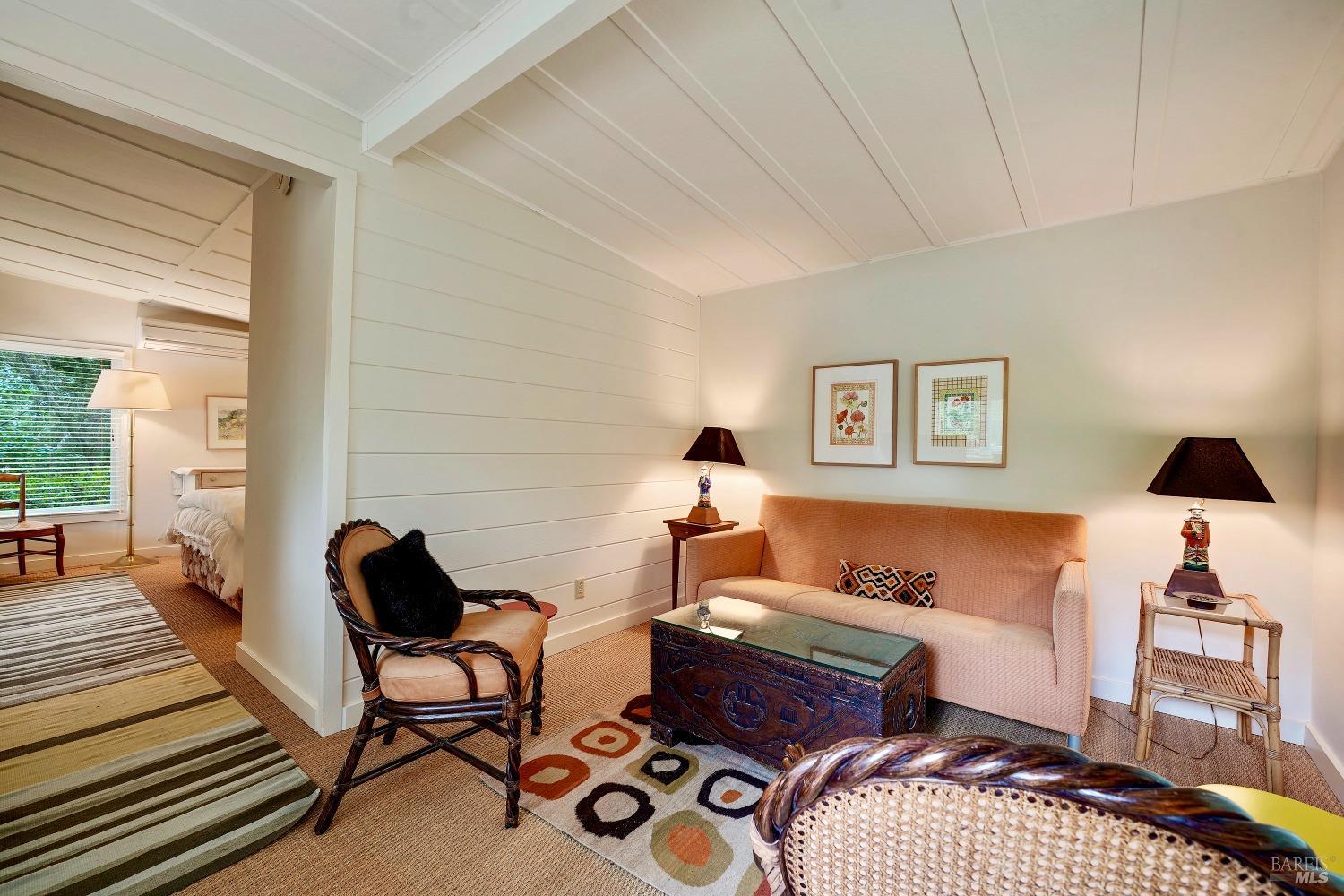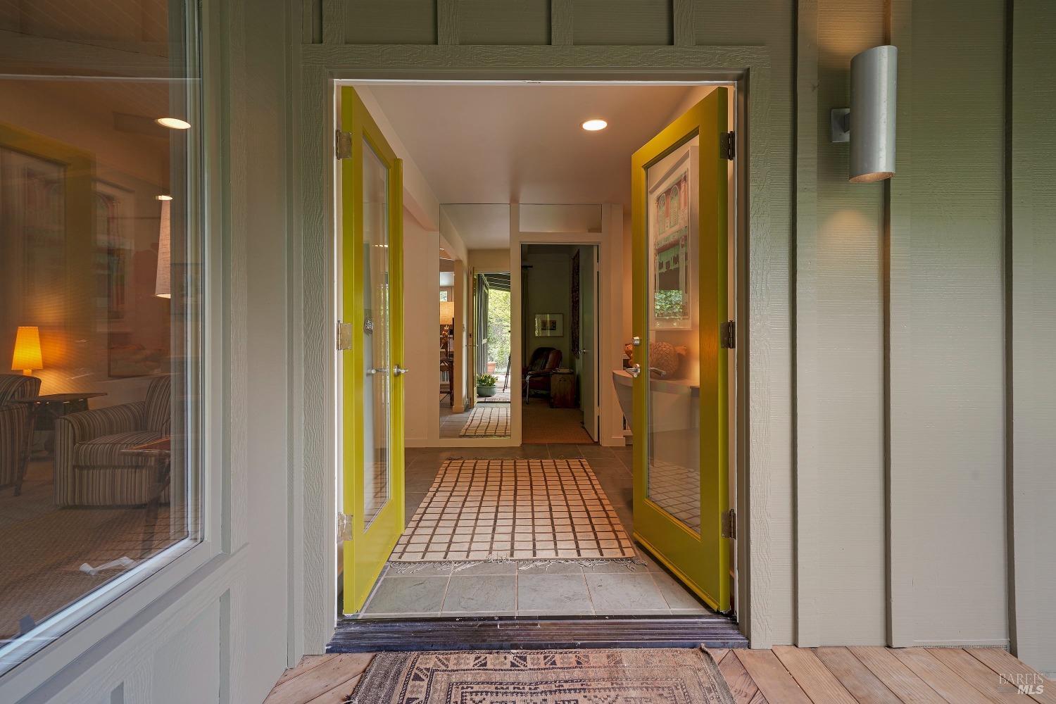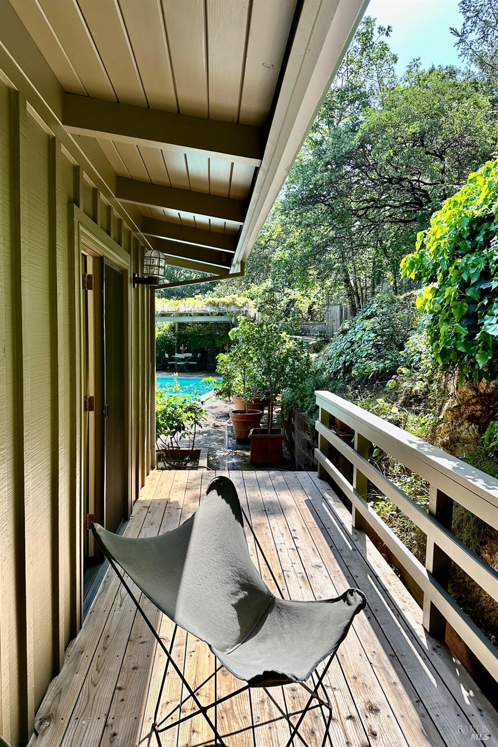 The perfect Wine Country starter home with views of Mt. St. Helena! Minutes from downtown Calistoga, this private, gated mid-century ranch-style property blends timeless design with the relaxed beauty of Mediterranean-inspired gardens. Set on a private 2-acre parcel just outside city limits, the home offers a rare balance of privacy, character, and versatility. Ideal as a Wine Country weekend retreat or serene full-time residence. The 1,650 sq. ft. main house features two bedrooms, two baths, slate and sisal flooring, a black Formica kitchen with custom cherrywood cabinetry, and a wood-burning fireplace that anchors the open living and dining area. Large windows frame lush garden views and invite indoor-outdoor living around the pool, pergola, and alfresco dining areas. A detached 450 sq. ft. guest cottage with full bath and mini-split HVAC provides ideal space for visitors or a studio. At the lower edge of the property, a 1,200 sq. ft. heated workshop/art studio/car garage offers endless creative potential. Minutes from Chateau Montelena, Solage, the Four Seasons, and the soon to open Rosewwood, this calming Wine Country haven embodies the essence of relaxed Napa Valley living.